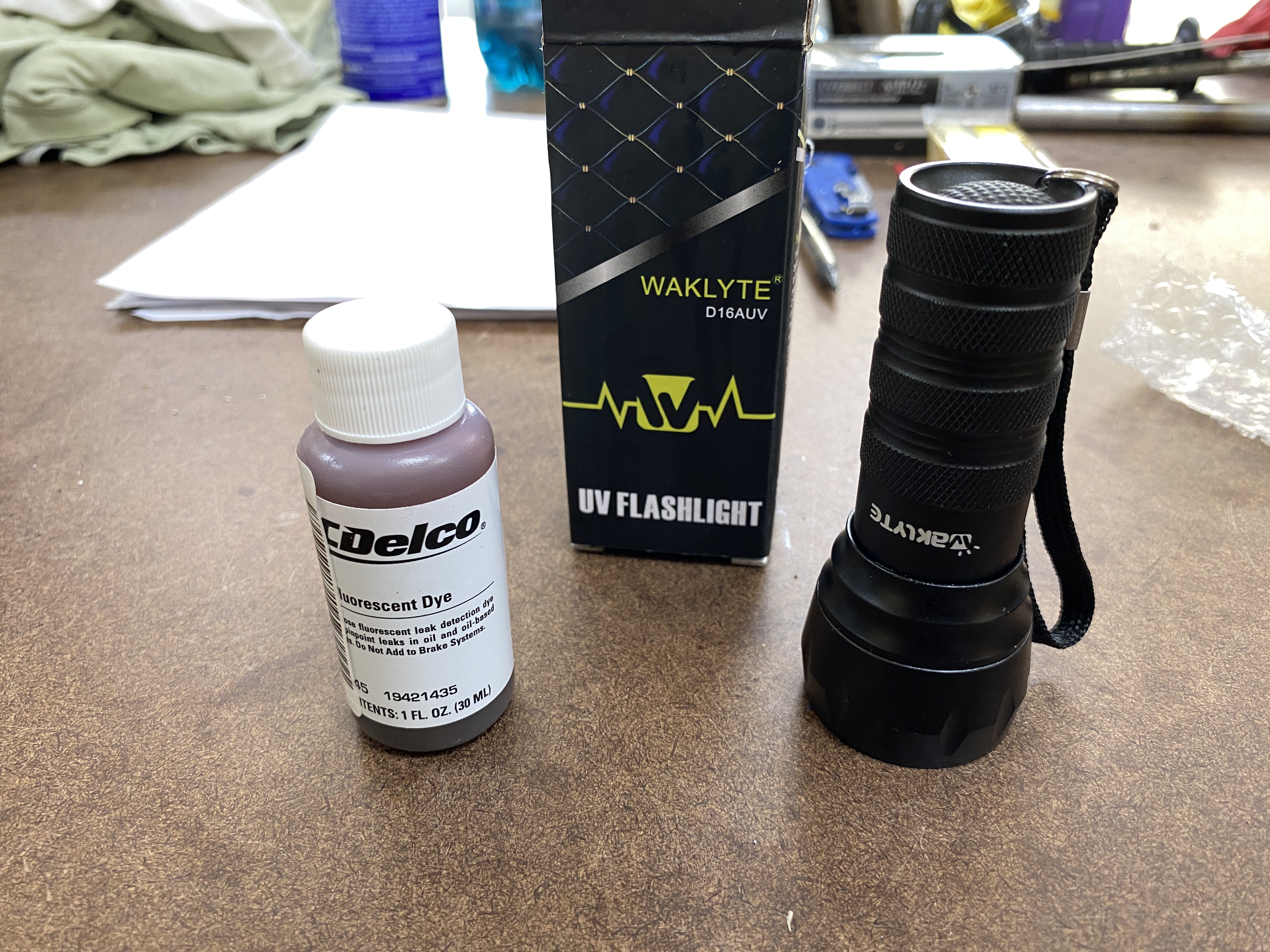And then the big problem. Where is the oil leak? Here's a photo before I did any cleaning. I will do that and then try the UV dye.