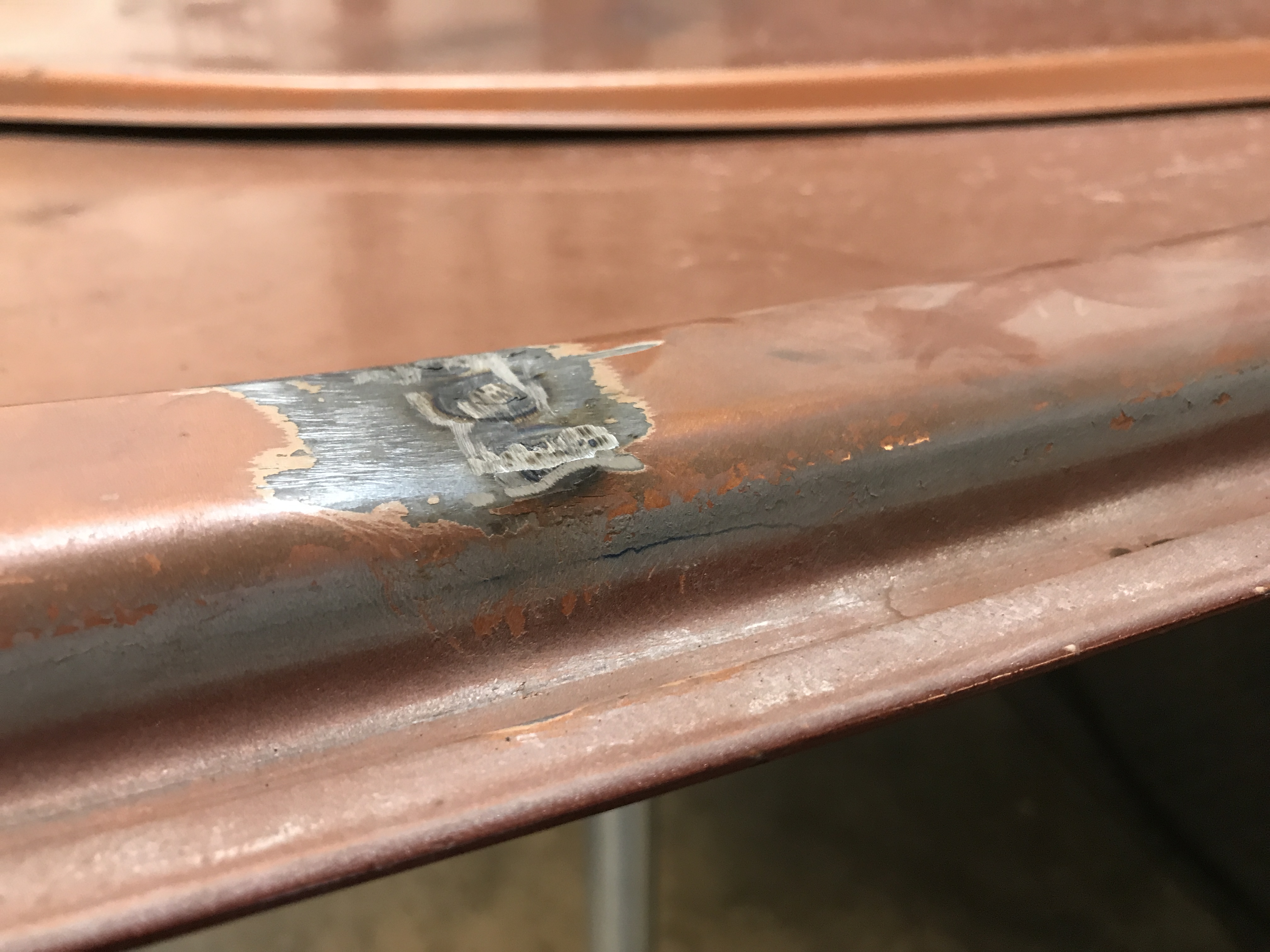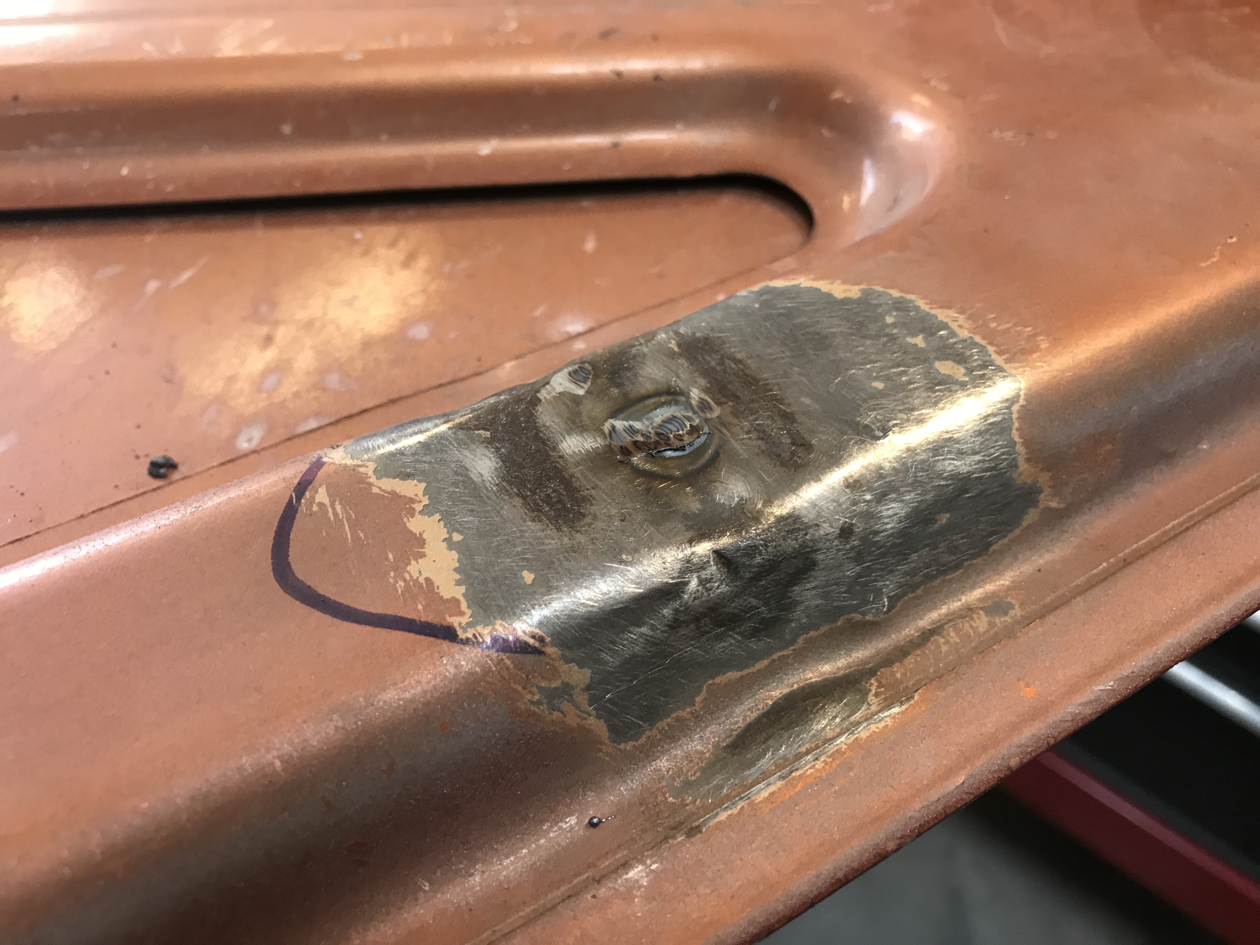 Got the trunk lid done today. I welded up the hole I tore yesterday, and the old hole from a PO puller repair.