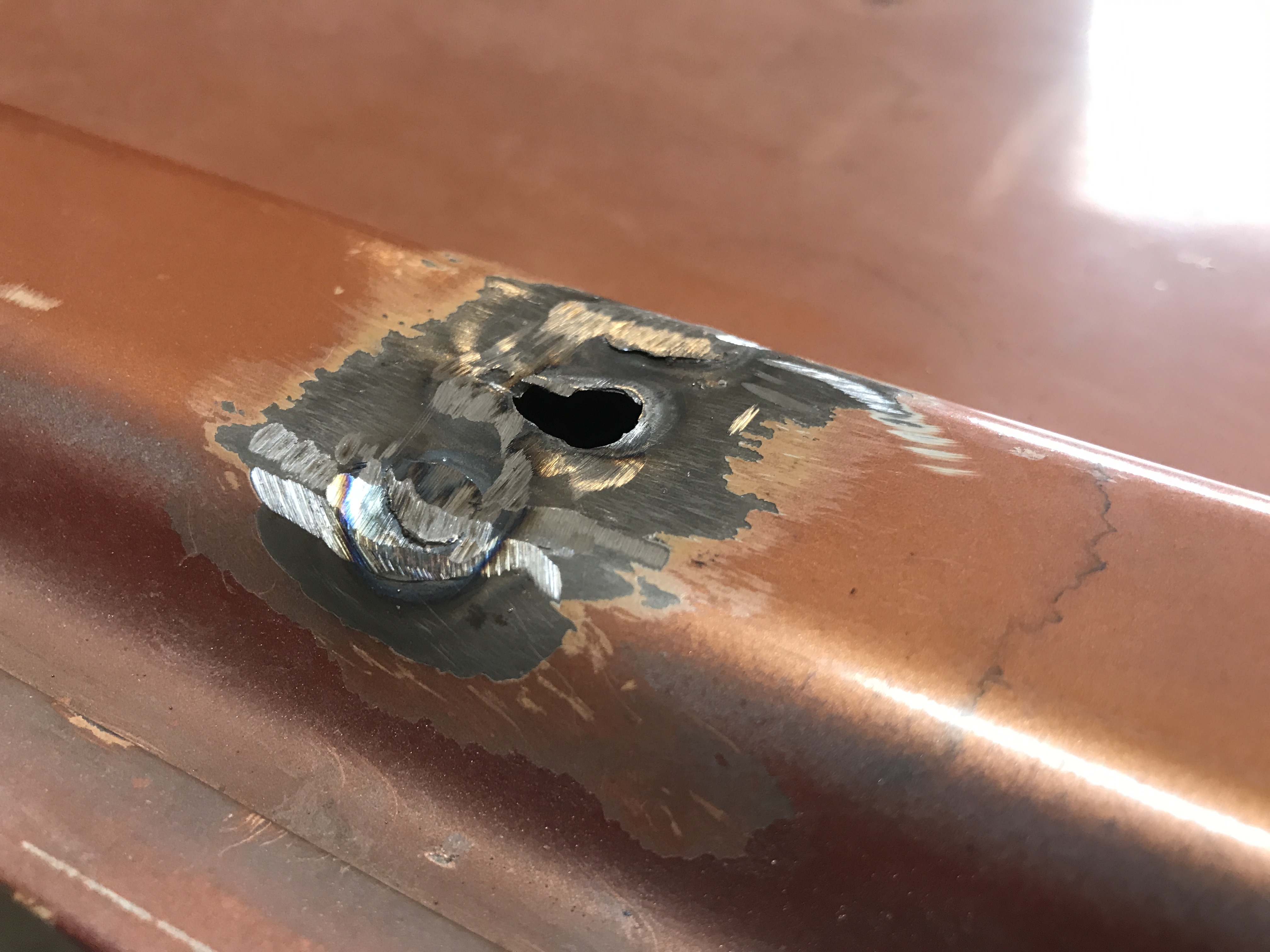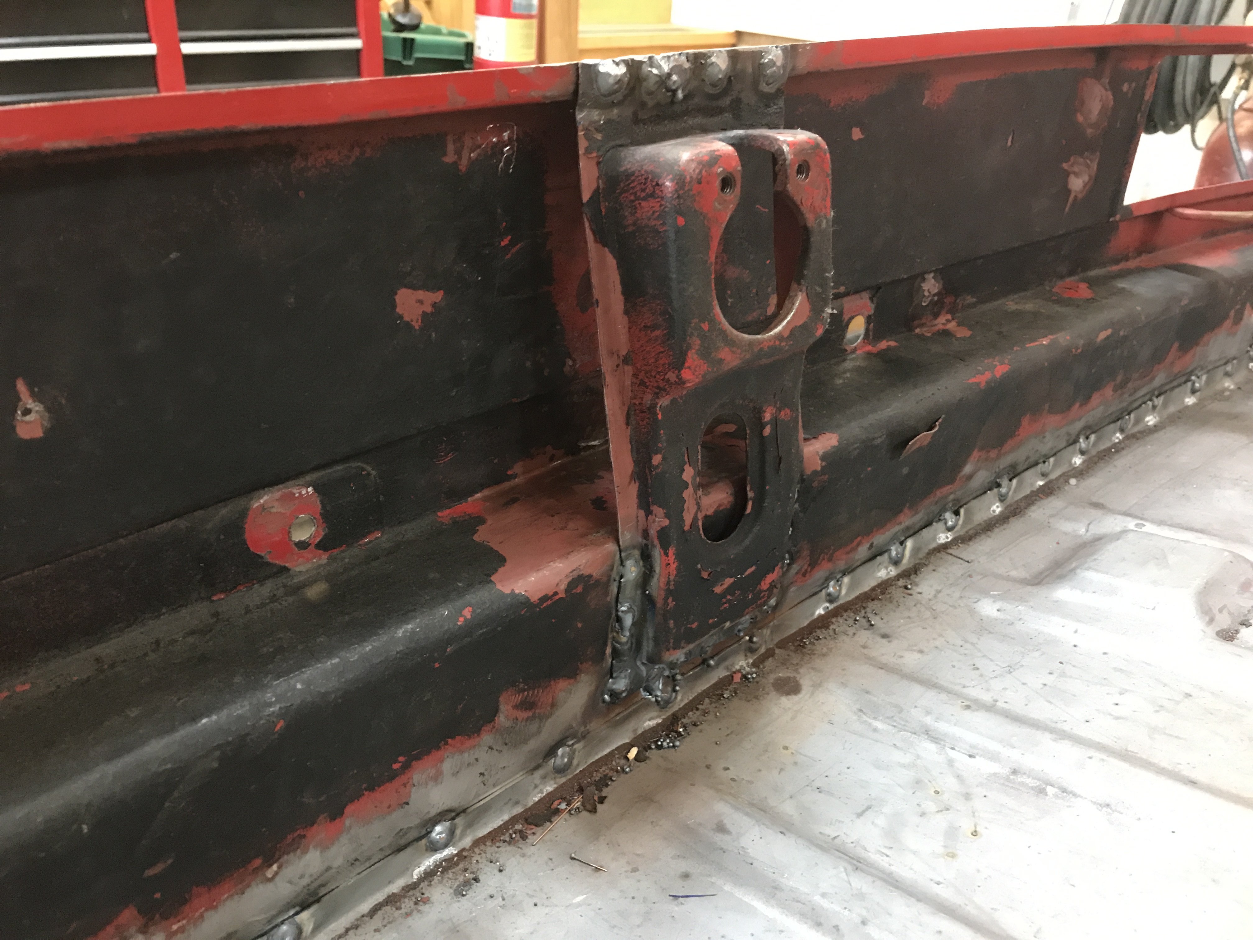 While I had the welder going, I reattached the trunk latch mount inside the rear panel.