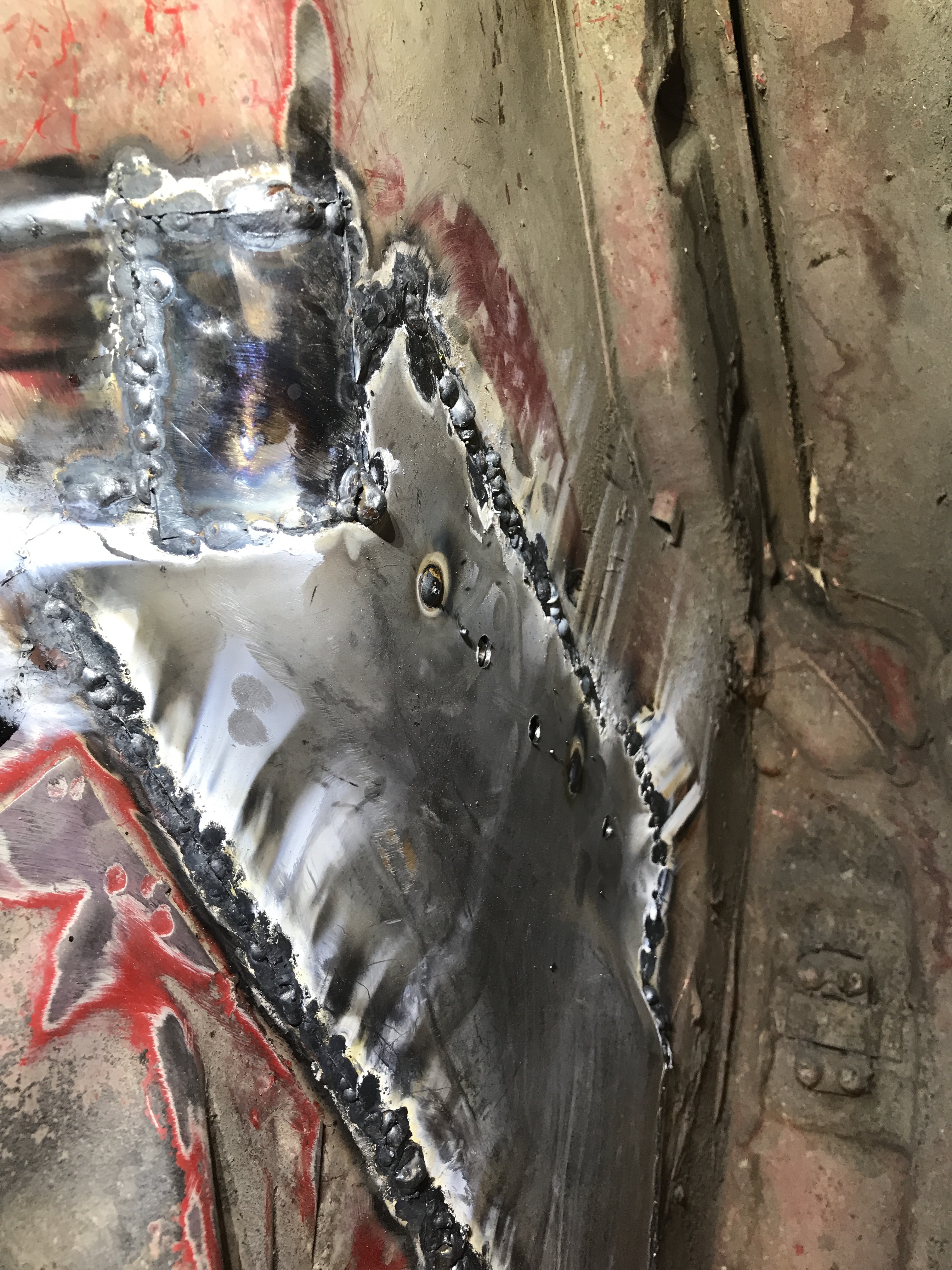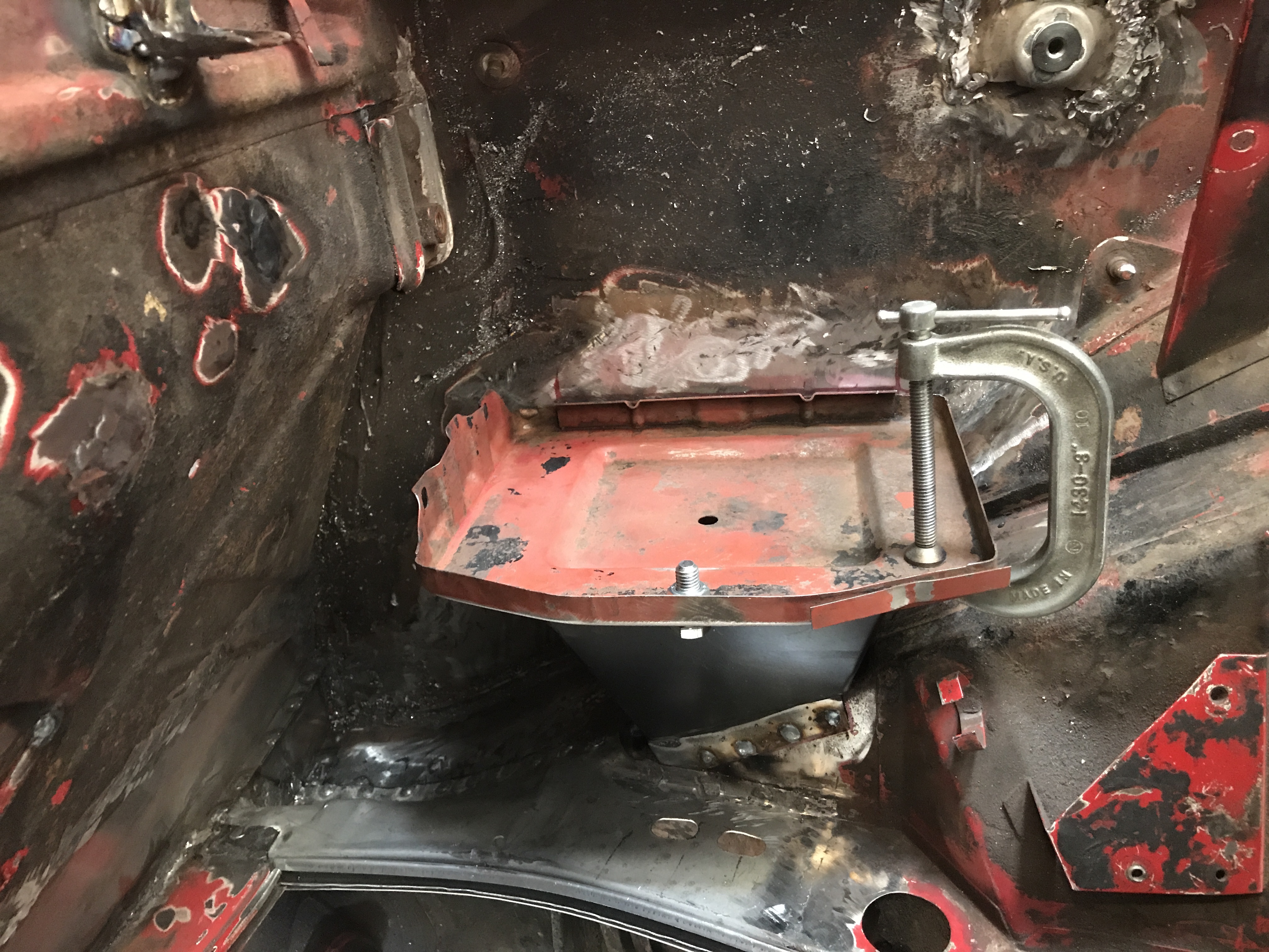 I started with more plug welds from inside the fender through the inner wall into the edge of the tray.