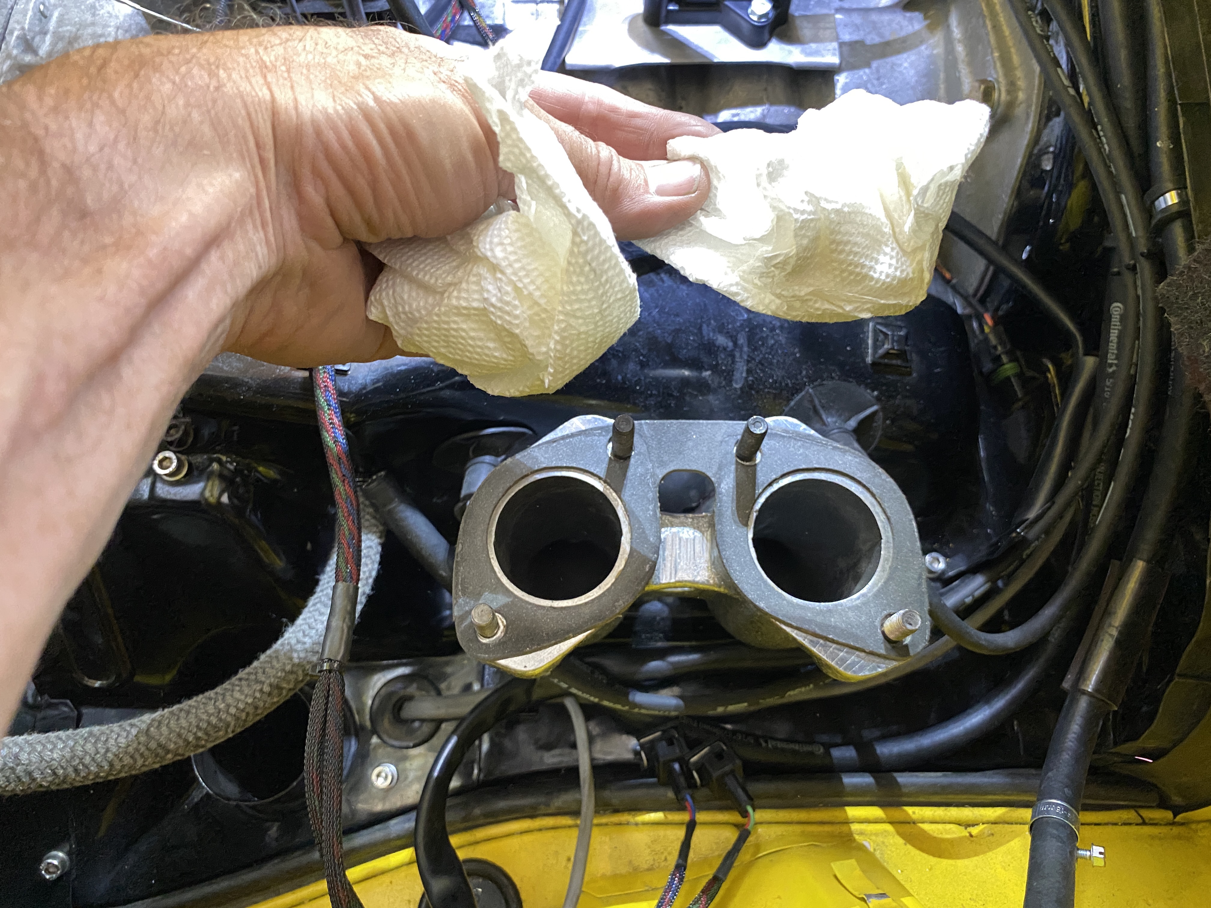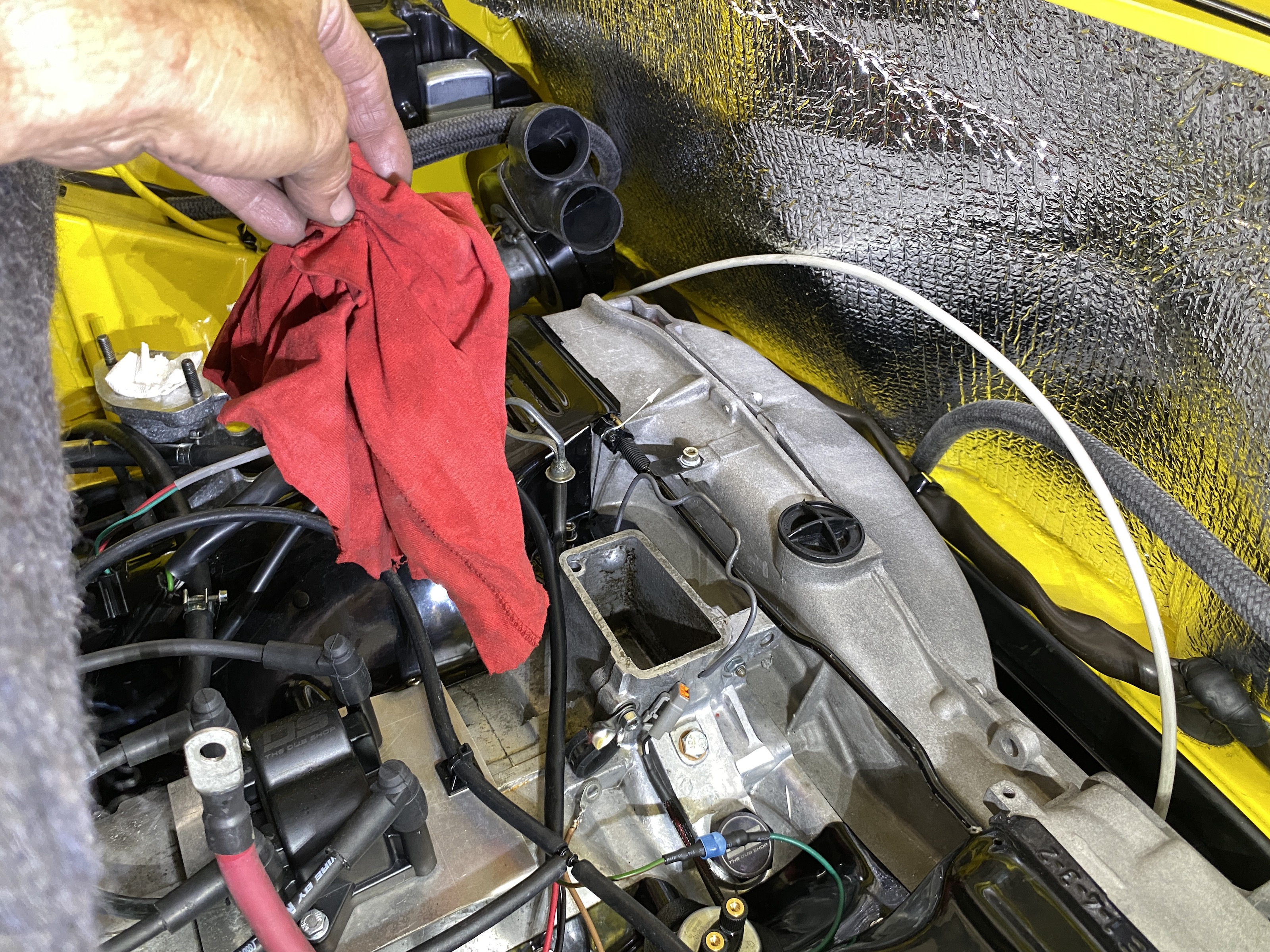 Here is photo proof that I took the rag out of the oil fill cavity. No dumb spill this time.