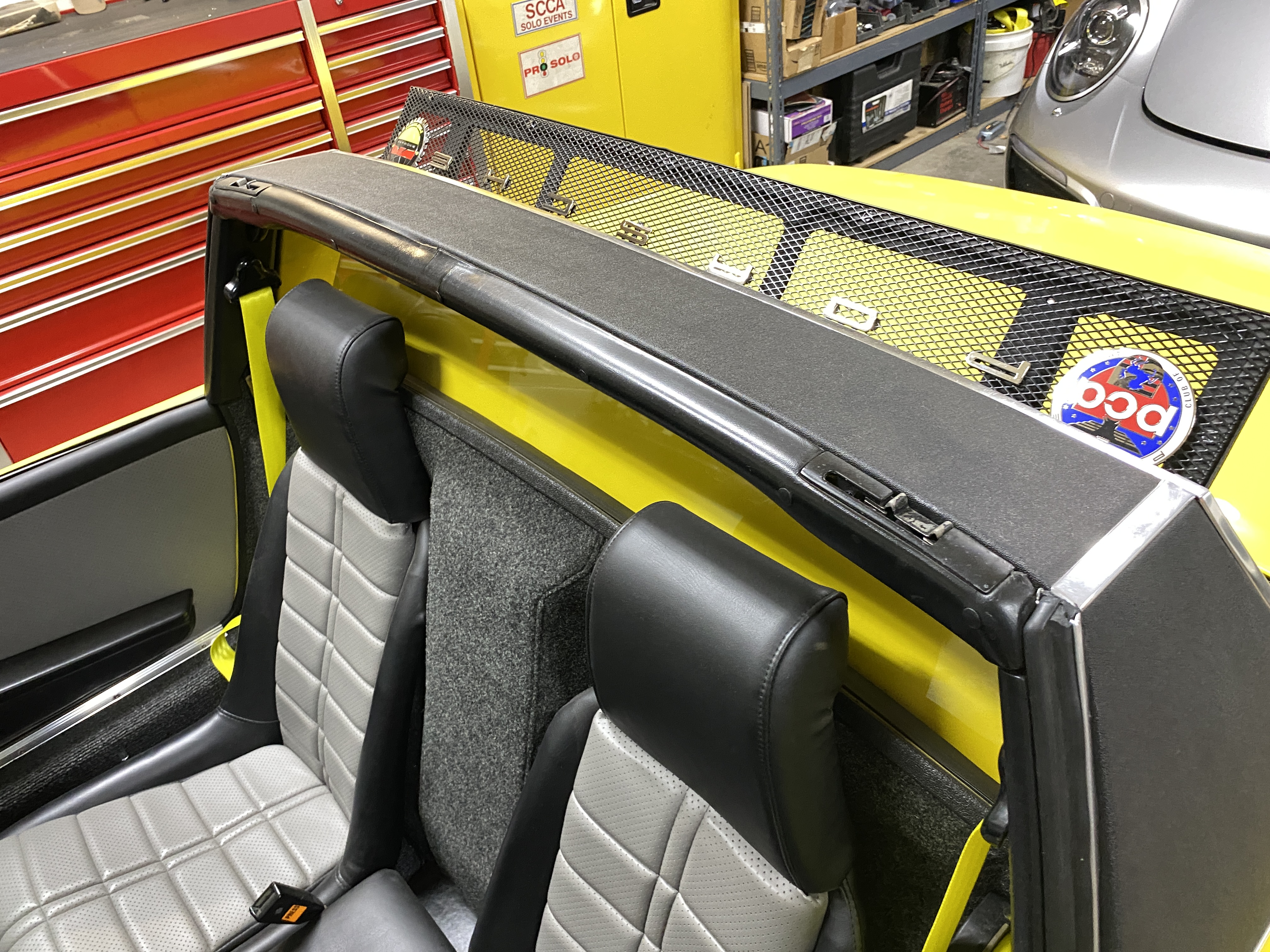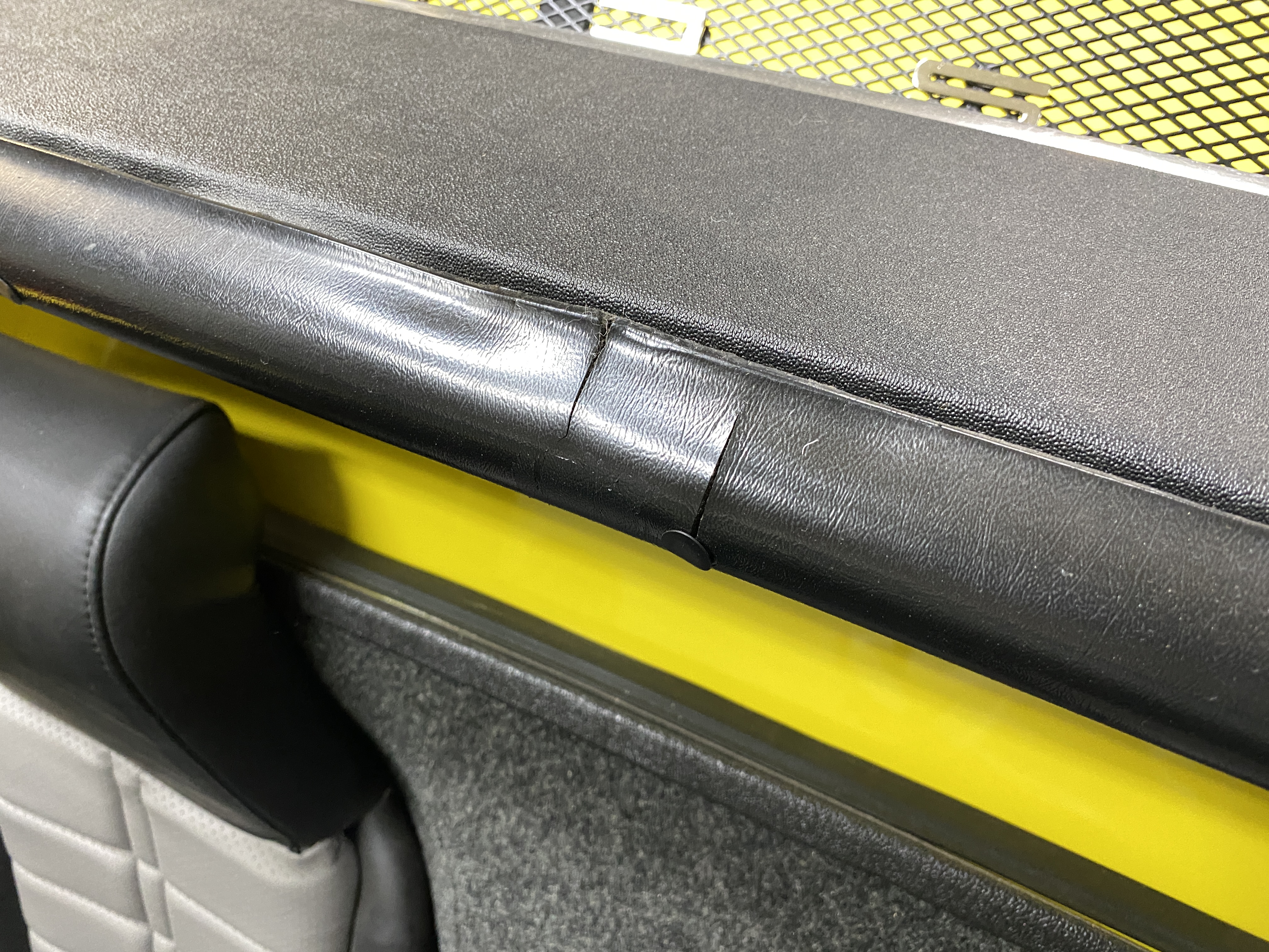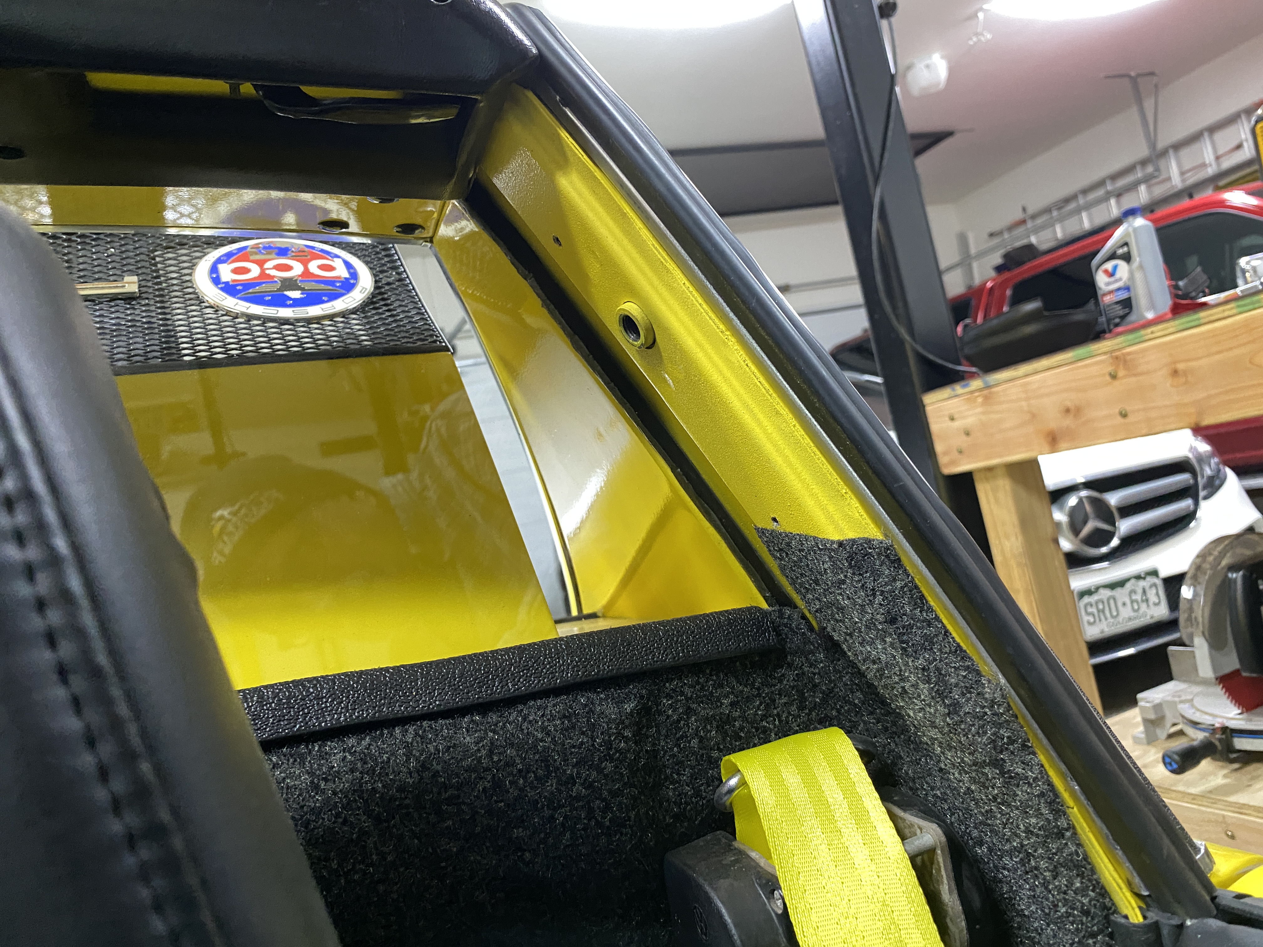 Here's the roll bar pad, which I think is original to the car. Not terribly bad, and with uncertainty about replacements a couple of years ago, I decided to reinstall it.