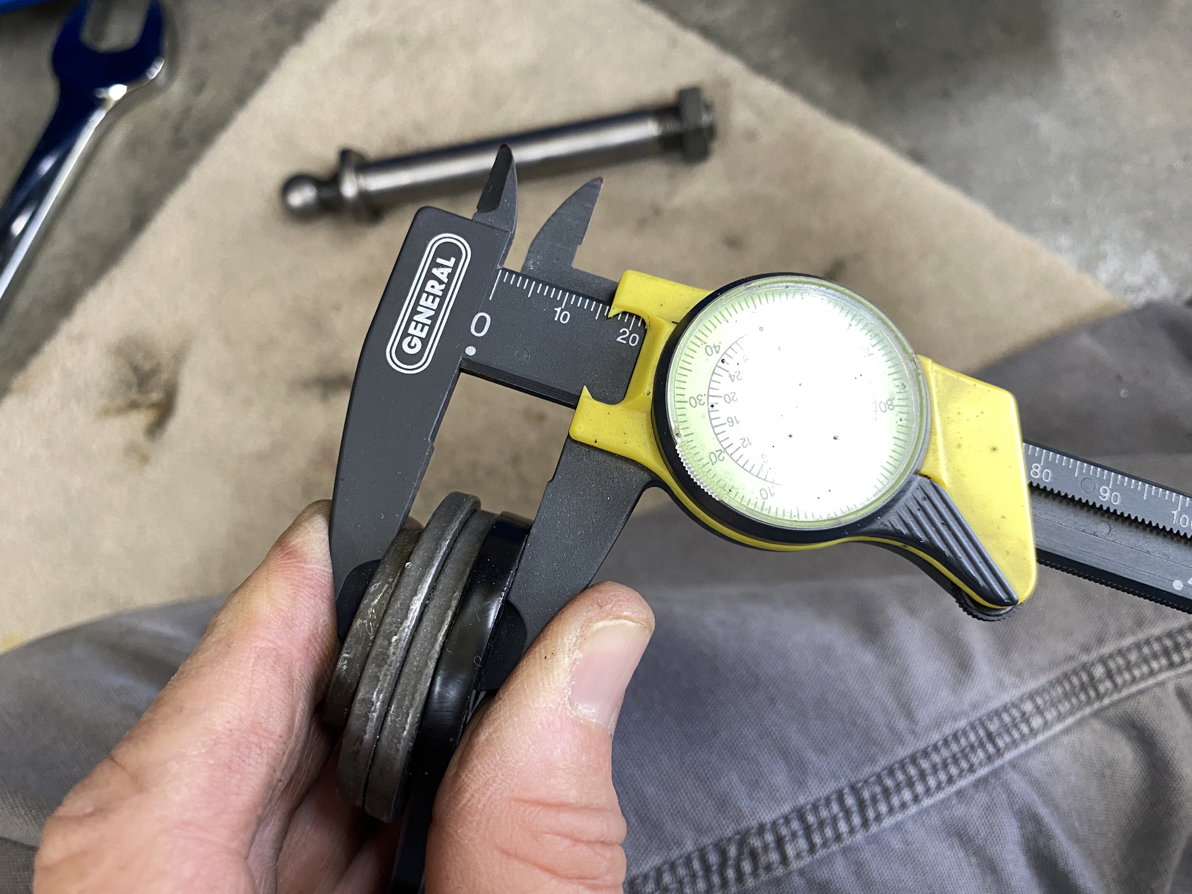 The full stack of shock bottom washers, flat washer, lock washer, and new tie down is about 16 mm--way too much!
