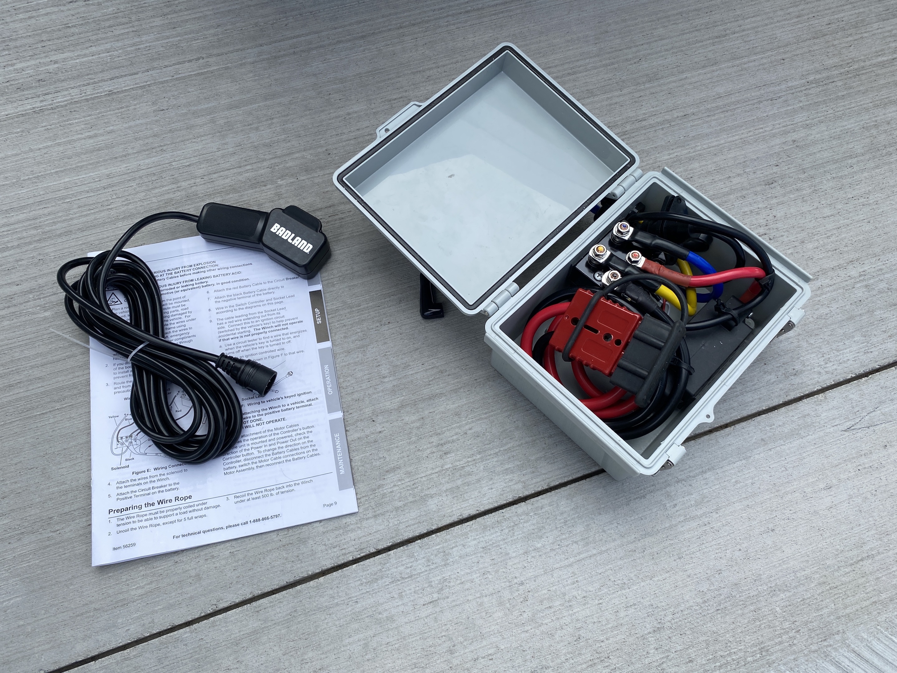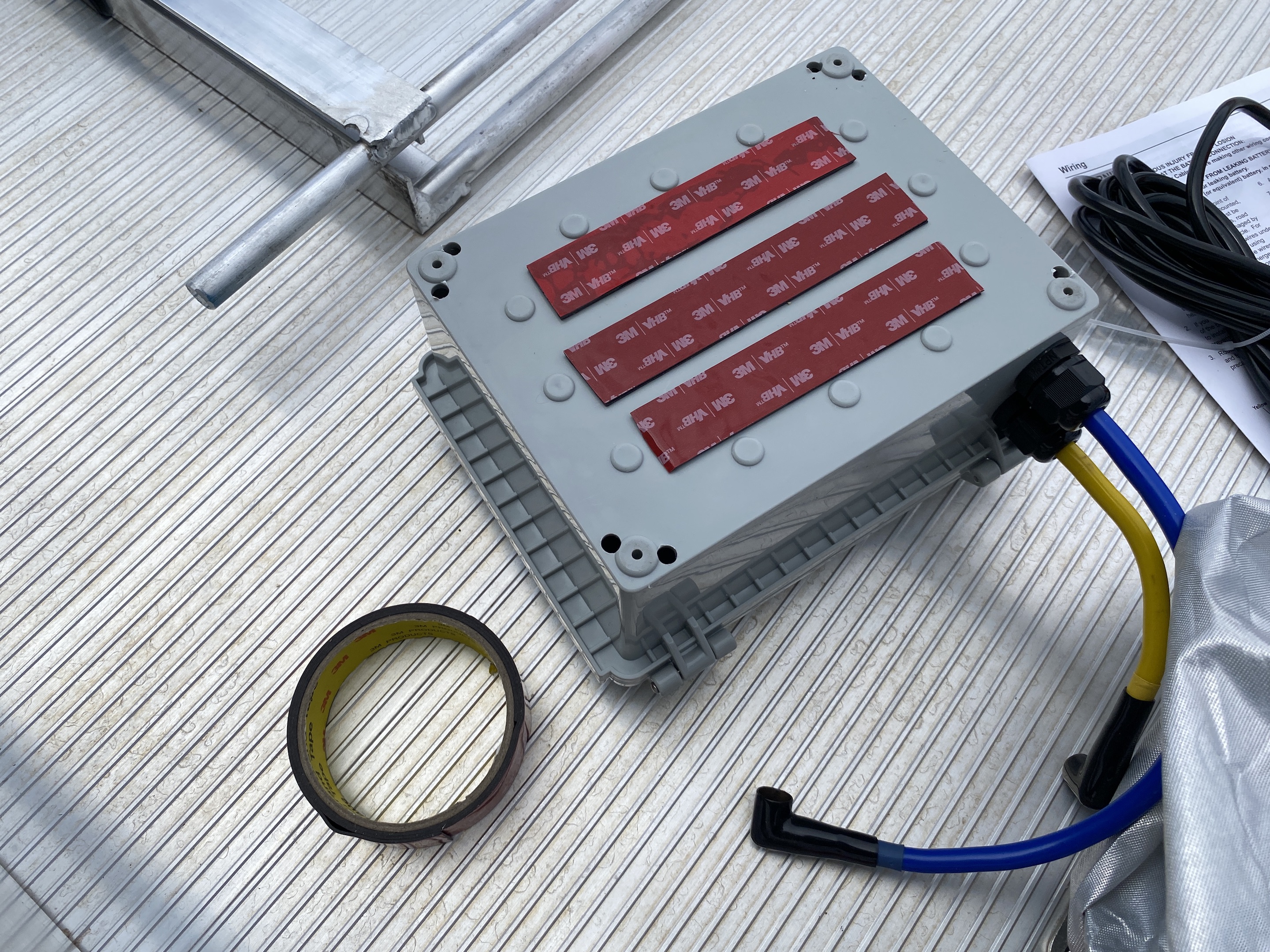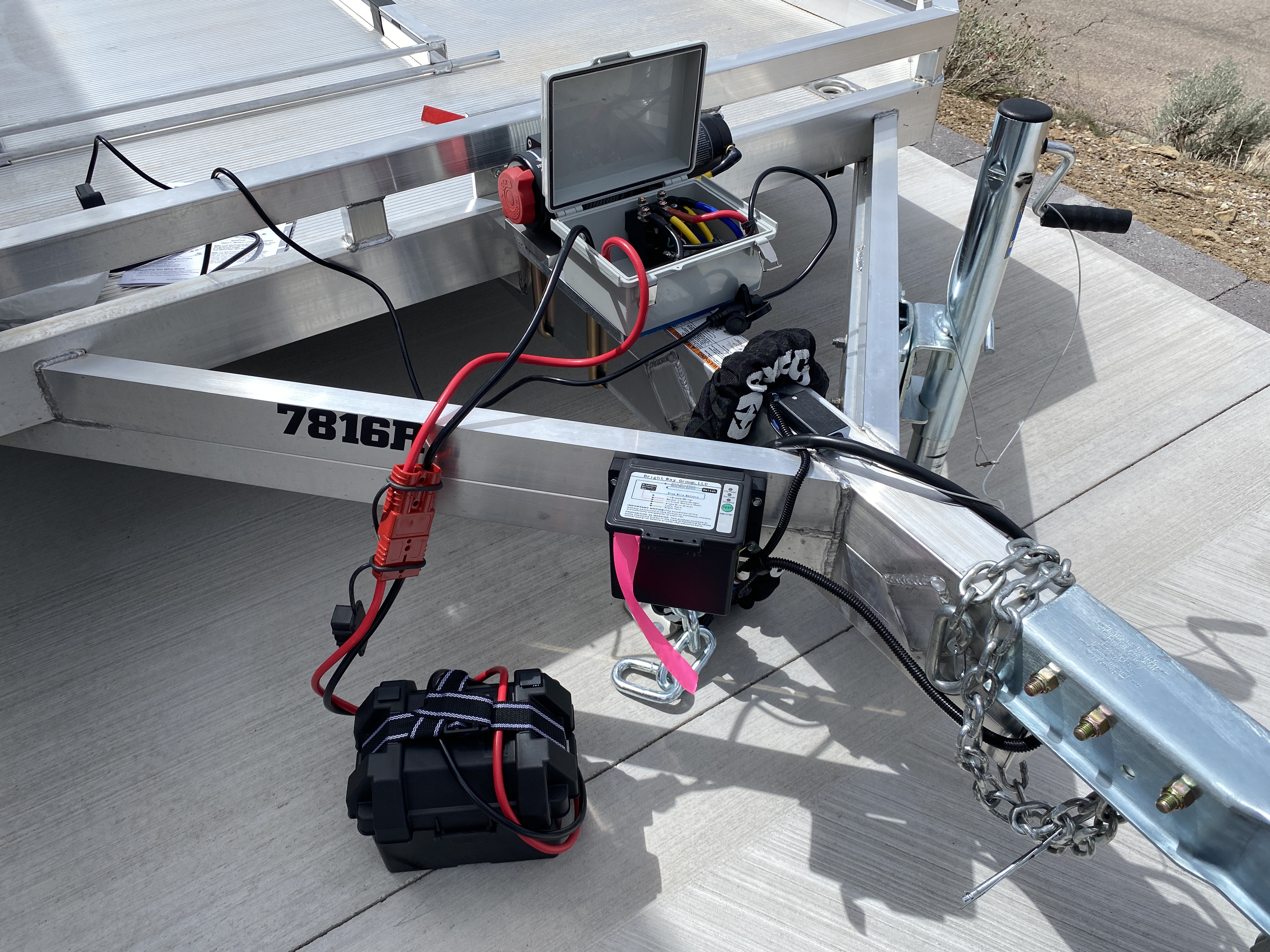 My remaining task is the power system. I already have the relay and connections in a waterproof box. Now to mount this on the trailer.