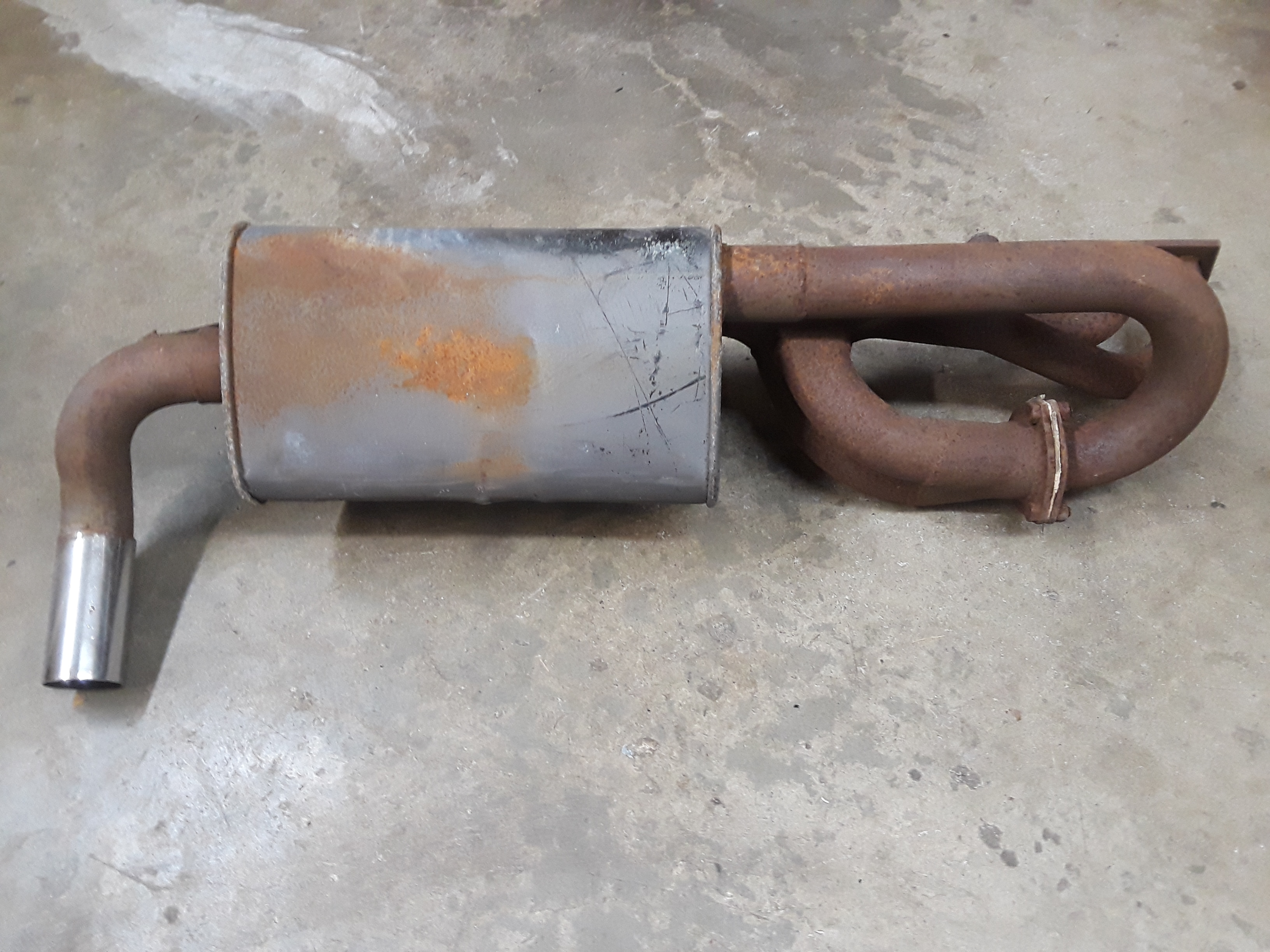 Bischoff 911 Duel in, single out 911.025.01/873 (stainless) muffler, from the 2.7L Carrera ? Kinda beat up, but intact. Fit to your /6 ?