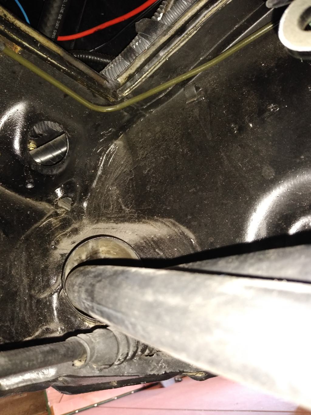 I got alittle more done tonight routing the suction and discharge hose through the driver long. The larger suction hose is going to enter the cabin on the horizontal shelf behind the gas tank; directly above the evap. The discharge hose is going behind the tank, down and under it out the front bulk head to the condenser.