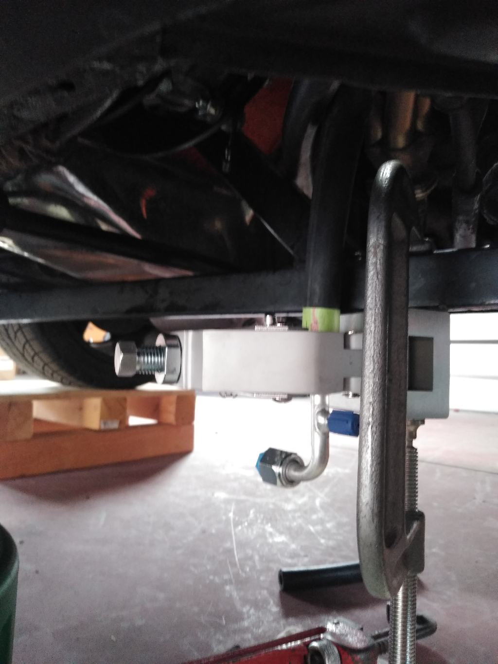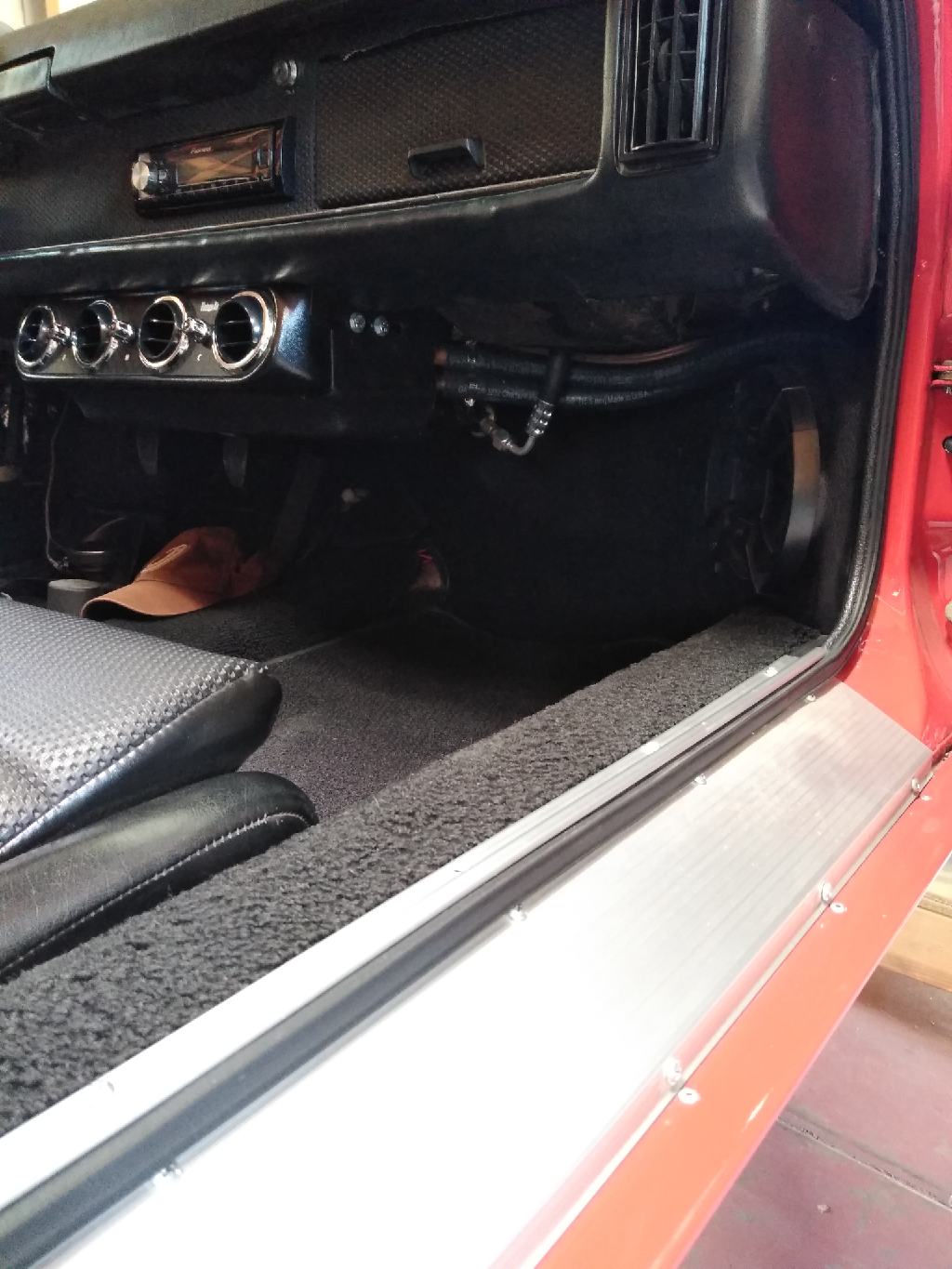 Here's a pic of the hose going to the evap. It's high enough where your feet clear it when seated, but low enough that I am concerned someone my break it some point. I'll probably try to make a cover to give it some protection.