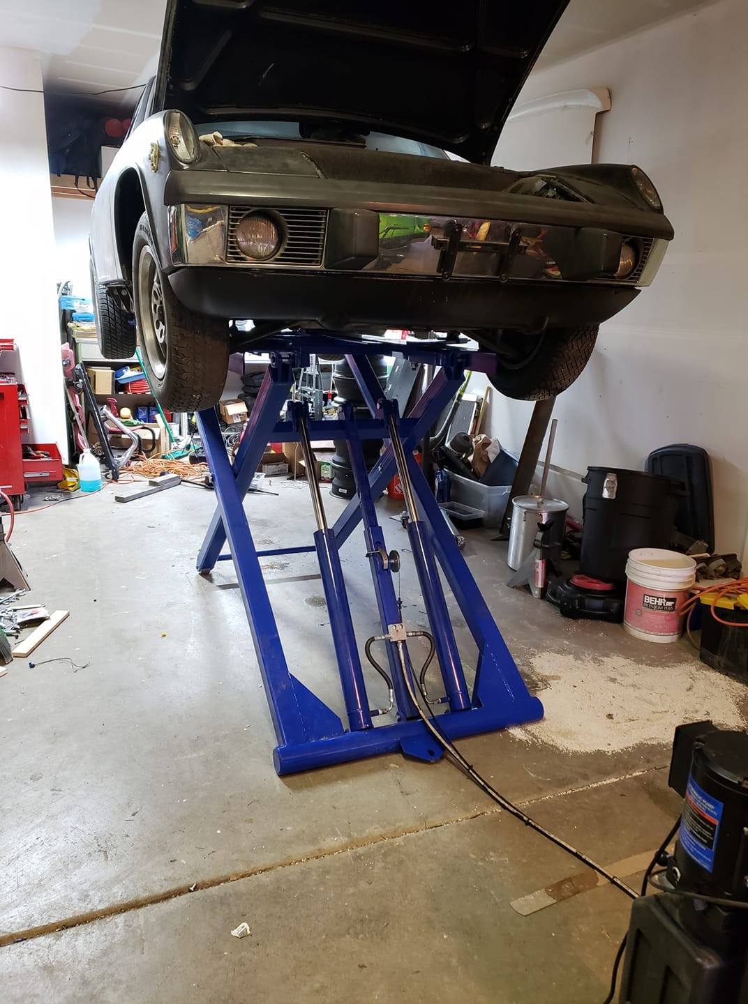 JRust - I thank God everyday for making a residential mid-rise scissor lift (mine is a BendPak). It makes being in the garage working on the cars a true joy. Laying on the ground is for the young guys, that's for sure. My knees and back just could not take it anymore. Absolutely. I had a bend pak previously. Didn't lift quite a high as this one. WAs a bit smaller end to end so guess that makes sense. I got this one off FB for 1k. It's a harbor freight one but I like it overall I think. I need to see once I get the 220 hooked up. It struggled off 110 |