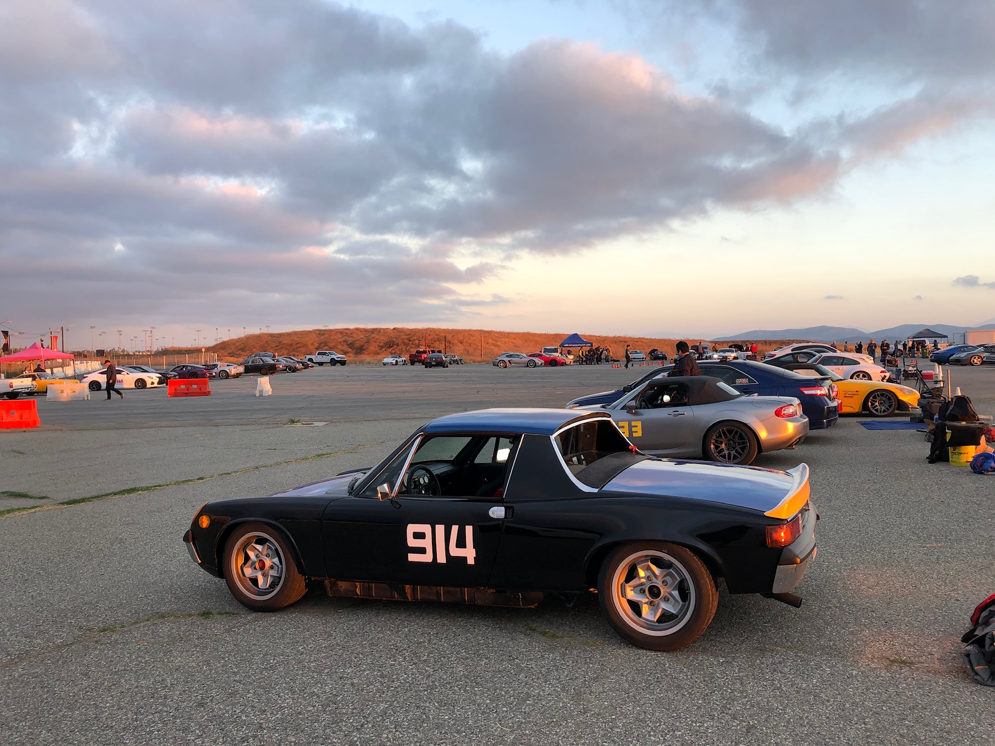 Laid down solid 2 runs with chief driving instructor, upgraded my wristband to a real drivers band. (IMG:style_emoticons/default/piratenanner.gif) Another morning pic, but this time I was in good company: Nice driver mostly stock 2 liter, driver was a young autox junkie coming off a 2 year hiatus, all day in practice runs I was a hair quicker... then when it counted, I botched it! (IMG:style_emoticons/default/headbang.gif) My timed runs involved a little bowling, and lost time cause I forgot the course and wasn’t looking far enough ahead, so critical turns ended up being surprises where I left a ton of time on the table.... All my timed runs were over 3 seconds longer than my typical practice runs.... (IMG:style_emoticons/default/hissyfit.gif) I watched his timed runs as I was packing up, he definitely laid down some good laps, much faster than my practice times... Ok, so gotta work on my performance anxiety too... (IMG:style_emoticons/default/barf.gif) All in, hard to complain when finally doing what I’ve wanted to do for over 20 years now... There were 5 teeners including mine on sun, nice people all very glad to see another 914 over the newer hardware. |