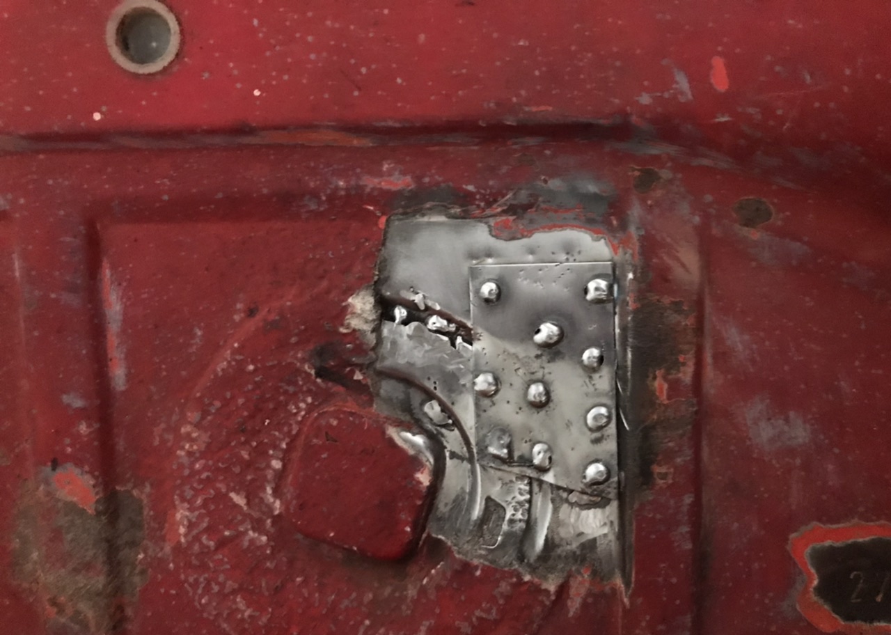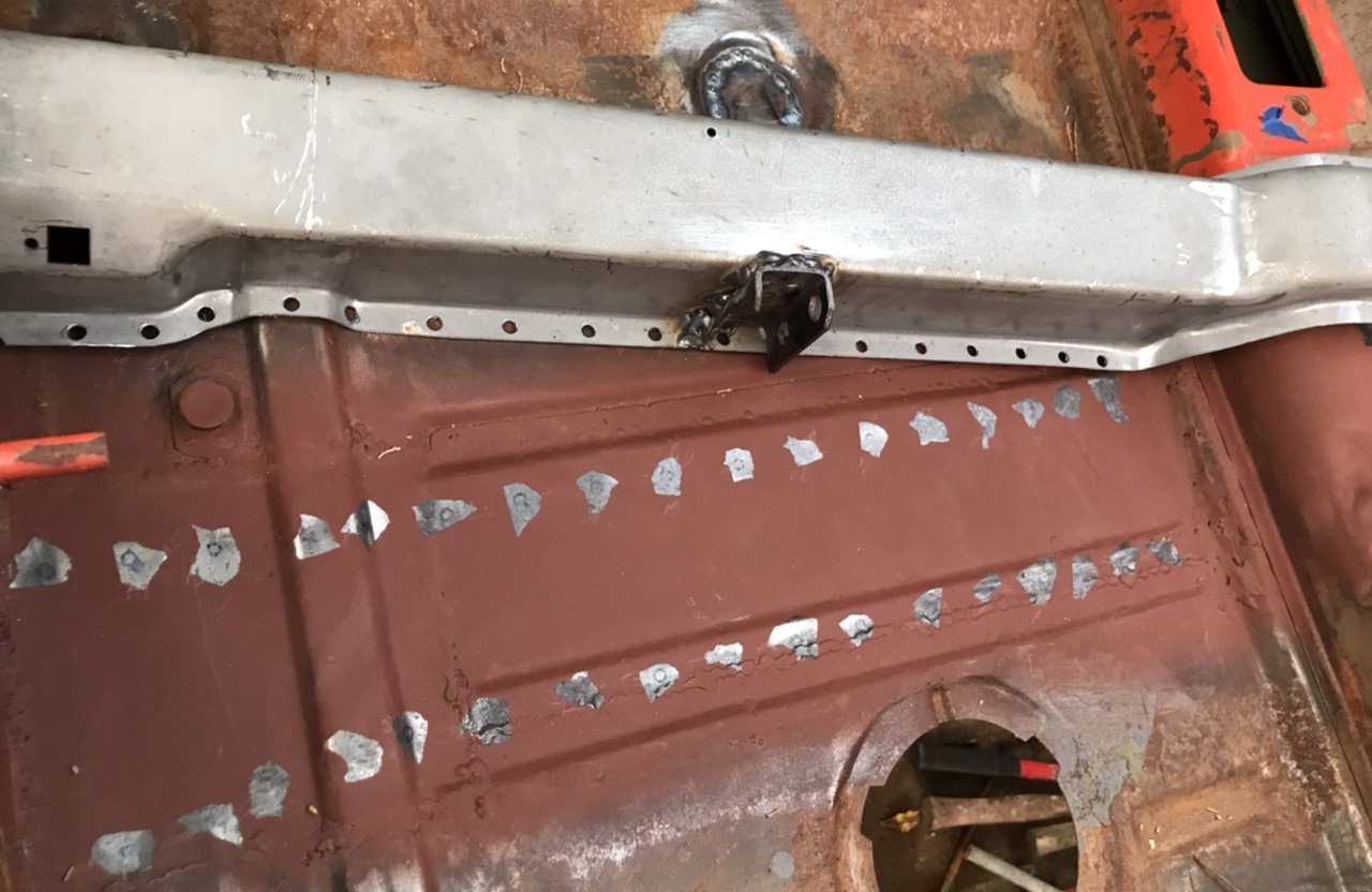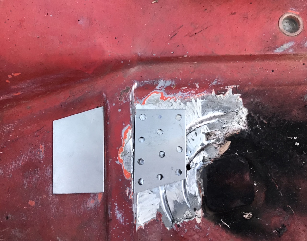 The top of the original bracket was easily accessed from my port but I needed to drill a couple holes and plug weld the bottom from the outside: