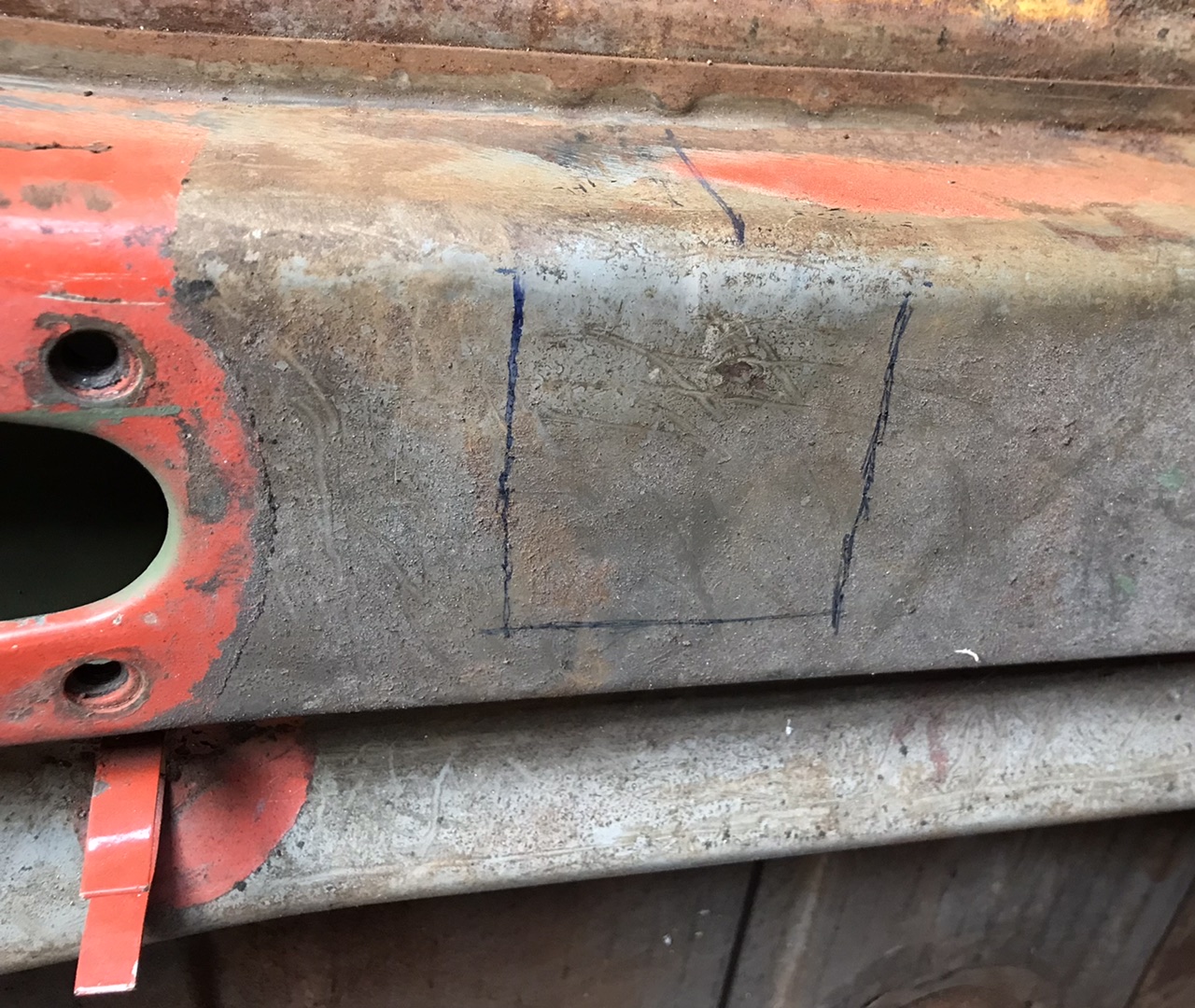 Clutch cable tube forward of the shifter area is next. Remember I’ve already dealt with the other two possible failure areas regarding this tube, so mine was broken in all three spots. Started off by measuring up 3.5” and marking where the internal bracket is and also the area I’ll be using for access: