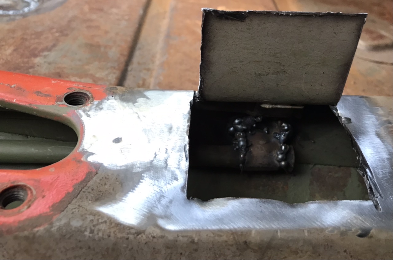 Getting a good ground was a challenge (access port too small mostly) but I was able to get it firmly welded. A big ‘ol screw driver passes thru the tube with no obstruction: