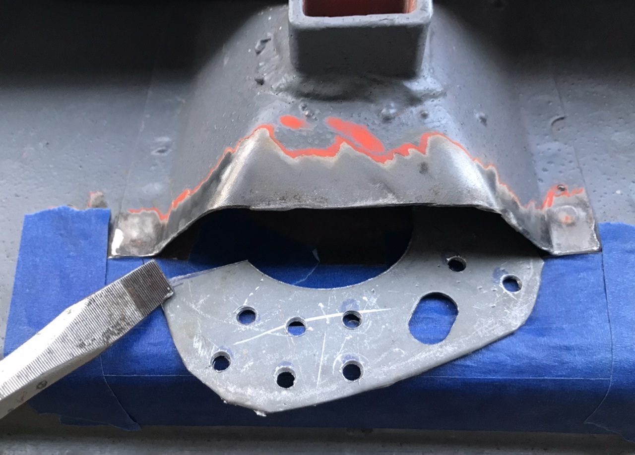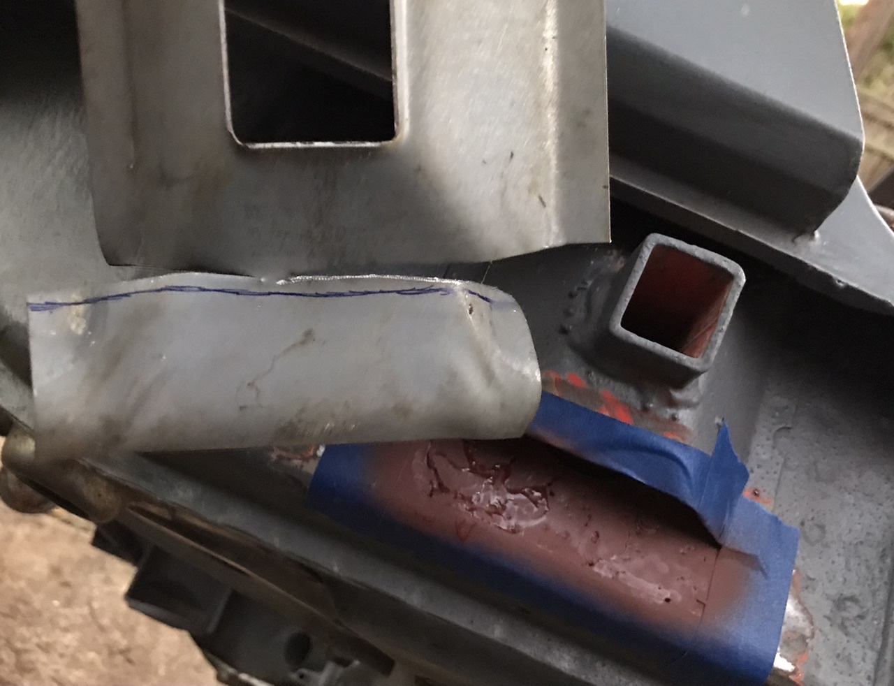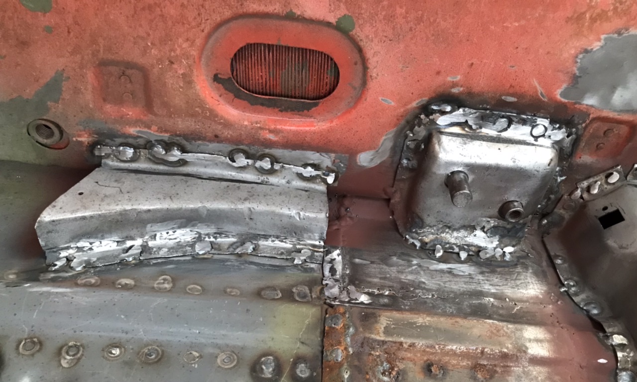 The metal was pitted so I found a convenient piece of left over sheet metal to overlay and hopefully prolong the life of this area:
