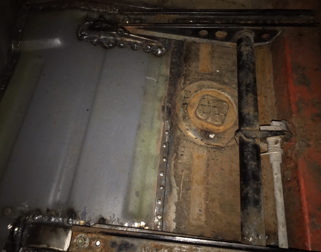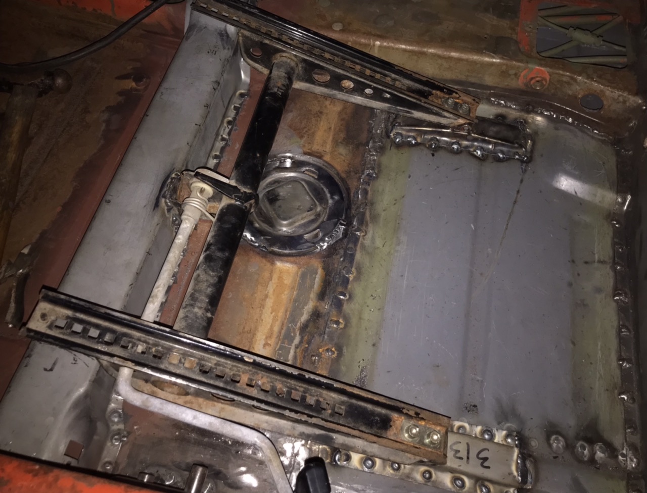 Time for installing seat brackets and hinges to the floor. Here again I’m reusing the old hinges, all except one which was too rusted. There was more prep to getting these ready for welding than I assumed. So it took a couple days and both times I finished near dark.. therefor the welds were a bit chunky but the brackets ain’t going nowhere!