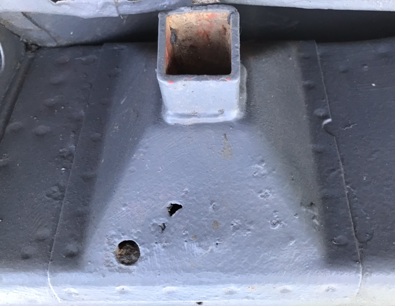 My stock jack points both needed a little work, neither were really all that bad but the outer shells both had some rusted out areas. Here’s where I cut away the bad area on the passenger side: