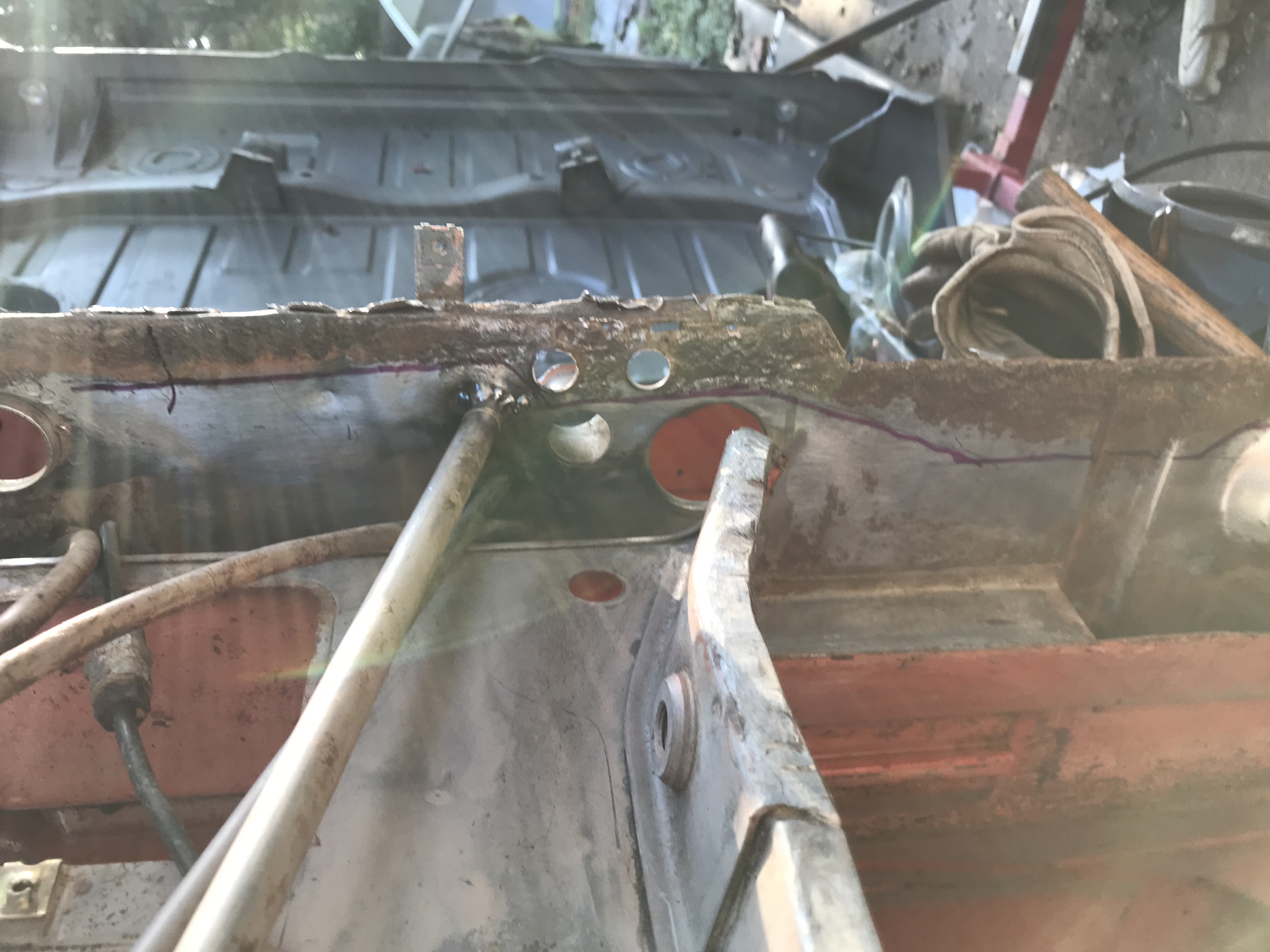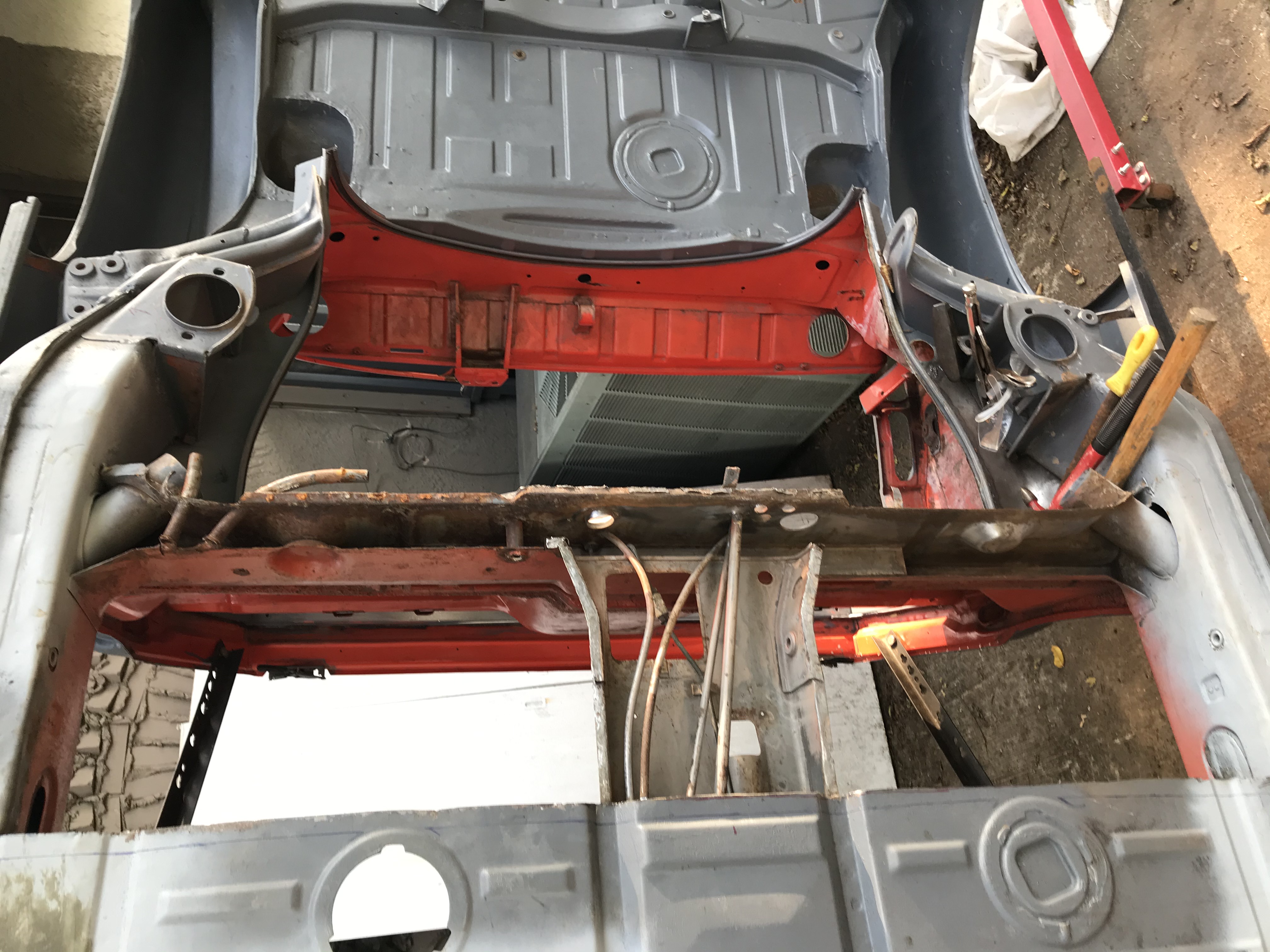 Here’s the a shot showing the rear floor completely removed and tunnel flanges cleaned |