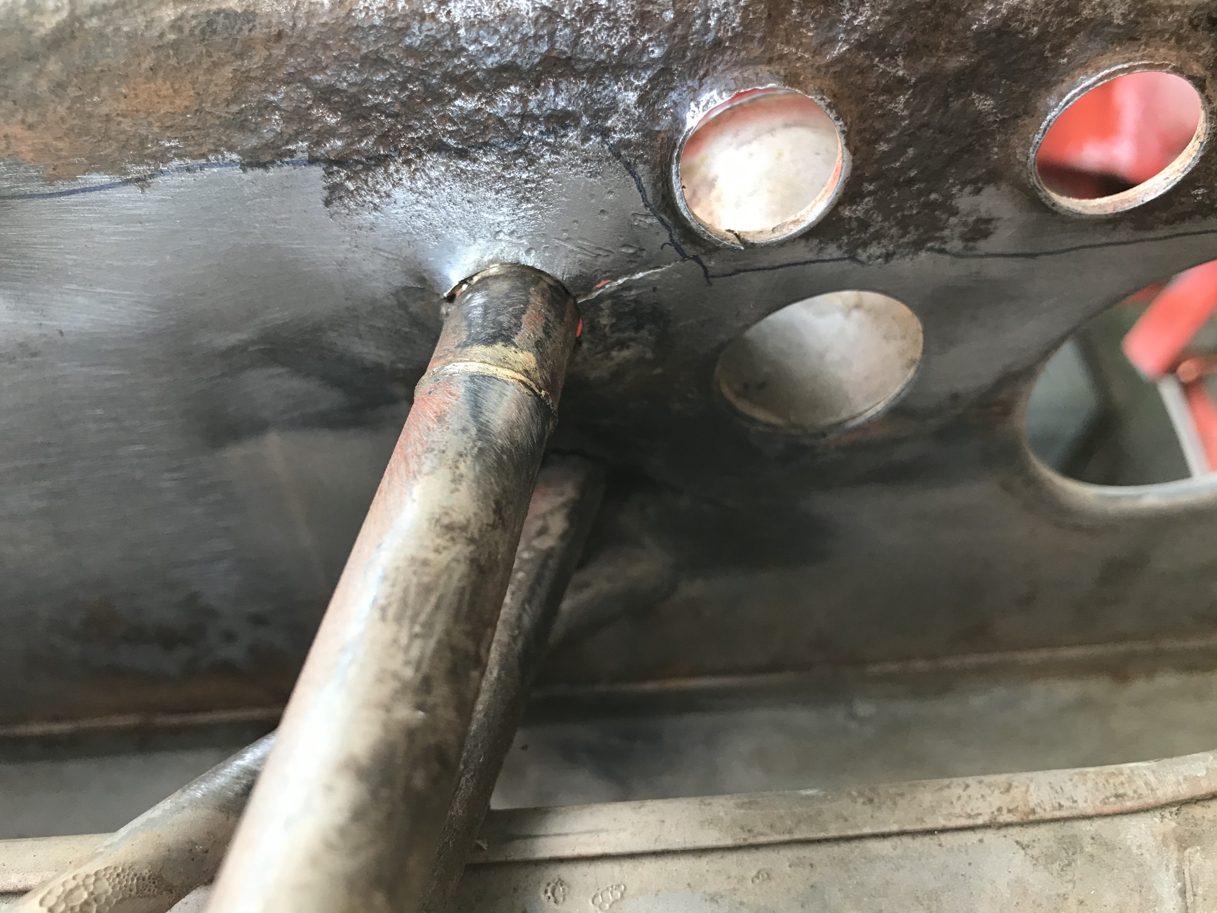 Ok so today I removed the rear under side of the tunnel and cleaned up the lips on the tunnel where the floor will be welded to eventually, as well as cleaned up the inside of the tunnel forward - in prep for internal chassis paint there. Note, the tunnel had been left intact before I had a rotisserie and this was going to make installing the floor easier somehow (IMG:style_emoticons/default/wacko.gif) . This way is much more thorough but also helpful because my clutch tube needed securing at the firewall as well as some repairs needed to the area around the throttle cable tube (see last pics):