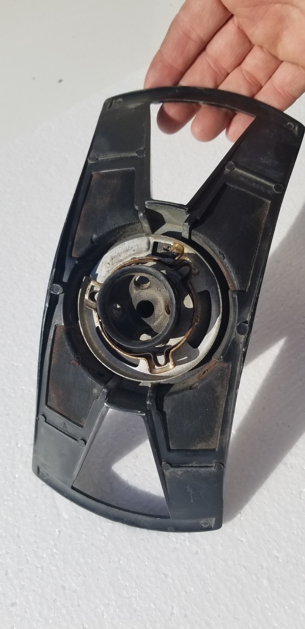 This is one of the nicest horn pads I have had. Slight paint loss in the ridges on the butterfly. Rubber horn cuff on the back side is pliable.