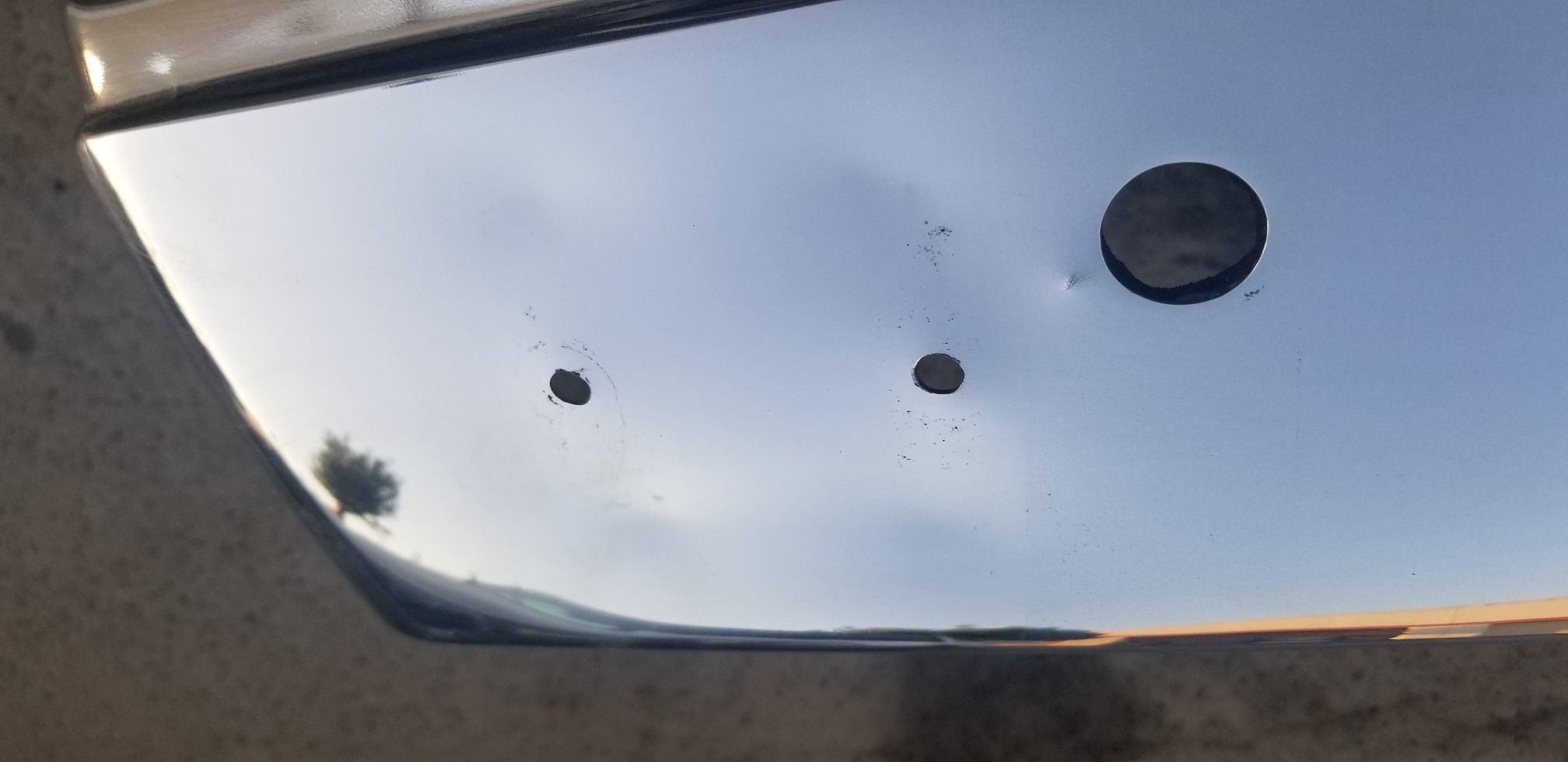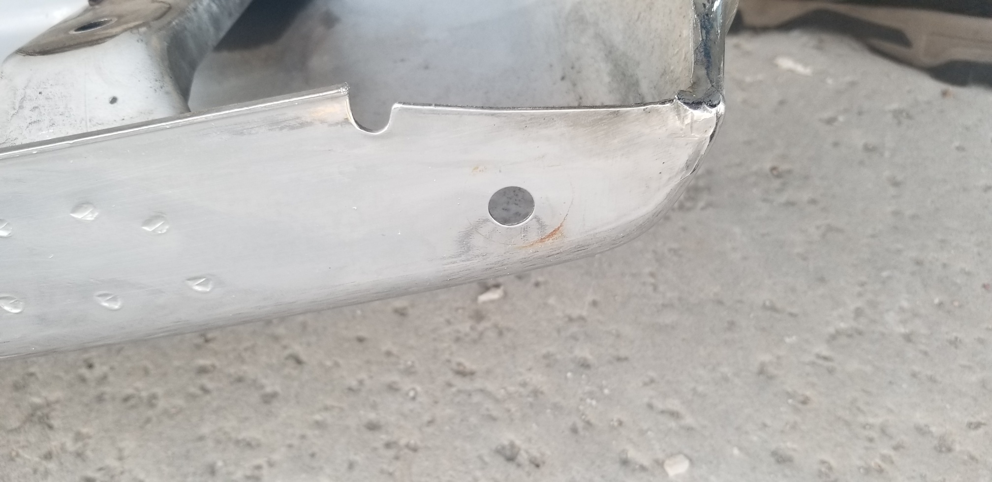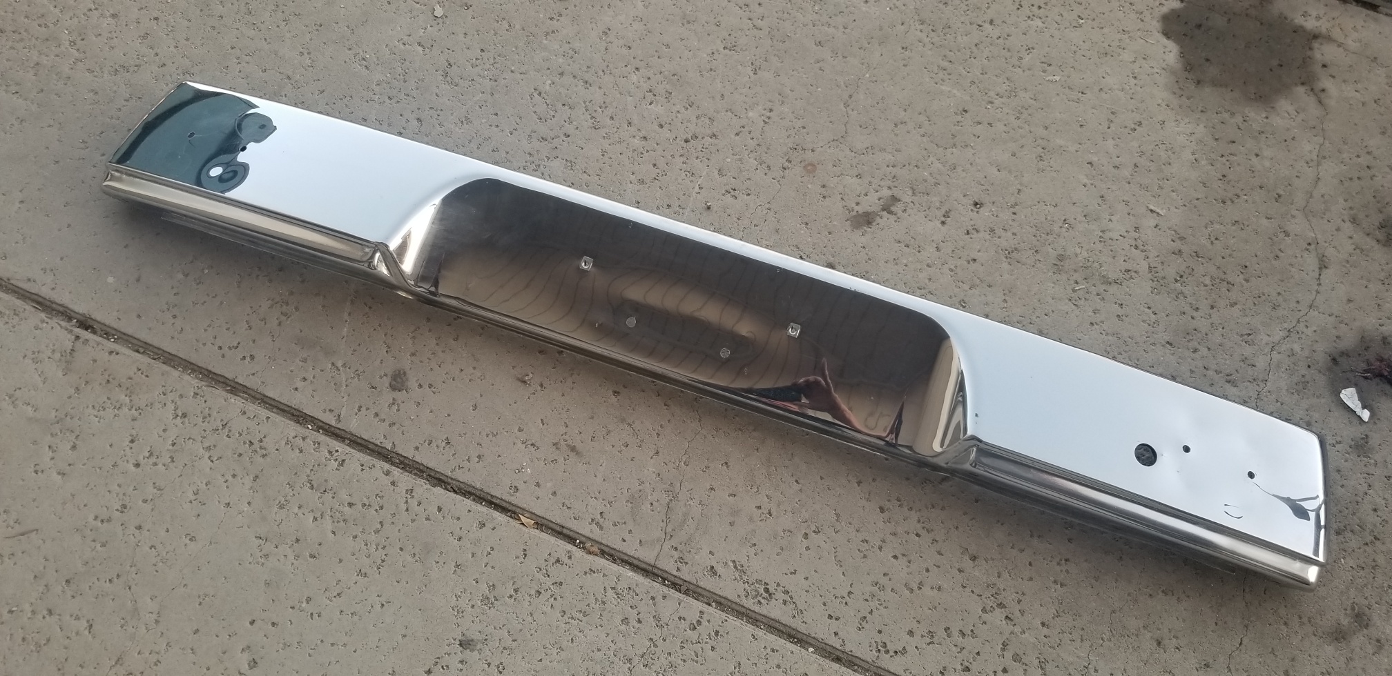 Bumper price reduced to This is a very nice chrome rear bumper. Minor bends under the bumpetettes. Two "speed holes" drilled behind the license plate by DAPO. Not flaking chrome. Minor bend on top left corner. Asking $125. Attached thumbnail(s) |