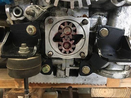 I should try to edit the title and add "Full Flow and also Fuel Pump Relocation" ... need to figure out how to do this though... (IMG:style_emoticons/default/idea.gif) Moving on to the driver side engine mount. The large socket head cap screw sticking out of the Gene Berg oil pump cover is holding the pressure relief spring. This head comes in conflict with the engine mount. So this side too need to be modified... (IMG:style_emoticons/default/dry.gif) ![]() After modification and paint: ![]() Mount installed and oil pump reassembly process. Assembly lube on the gears and ready to close it up: ![]() Gooped paper thin gasket: ![]() Final pump assembly with the two modified engine mounts, nice milestone (IMG:style_emoticons/default/beer3.gif) ![]() ![]()  |