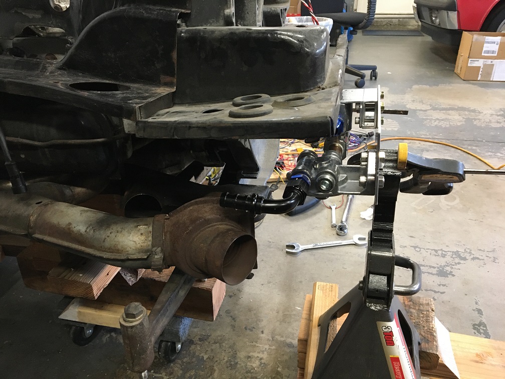 (IMG:style_emoticons/default/drunk.gif) Eric, maybe I missed it above, but are you leaving the stock cooler in place? On my race car (uses a CB Performance dry sump pump), Chris Foley built a block that replaces the cooler and routes the oil straight back in, allow me to remove the cooler, factory flaps/controls, and put a piece of sheet metal where the cooler was to flow more air to that side. Leaving it in is fine but I like the concept of removing the factory cooling flaps and one more item that could fail (the cooler, though it's rare for it to fail). Greg, for this time around, I am keeping the stock cooler in. My hope for the next evolution is to stroke it to 2256cc and then, I will remove it à la Chris Foley to increase cooling to #3. I might also revisit the plumbing at that point. The way I did it look OK but there is no access to the oil lines connections at the engine whereas with Chris', it should be possible to play in that area. The remote filter thermostat panel will be set on the passenger side lower firewall, the connections to the external oil cooler are aiming towards the driver side and would be ready for a front mounted oil cooler with lines running along the driver side. Again, for the next round. For now, I will route the lines to the back cooler but from the driver side of the gearbox. No plan set on that yet.  |