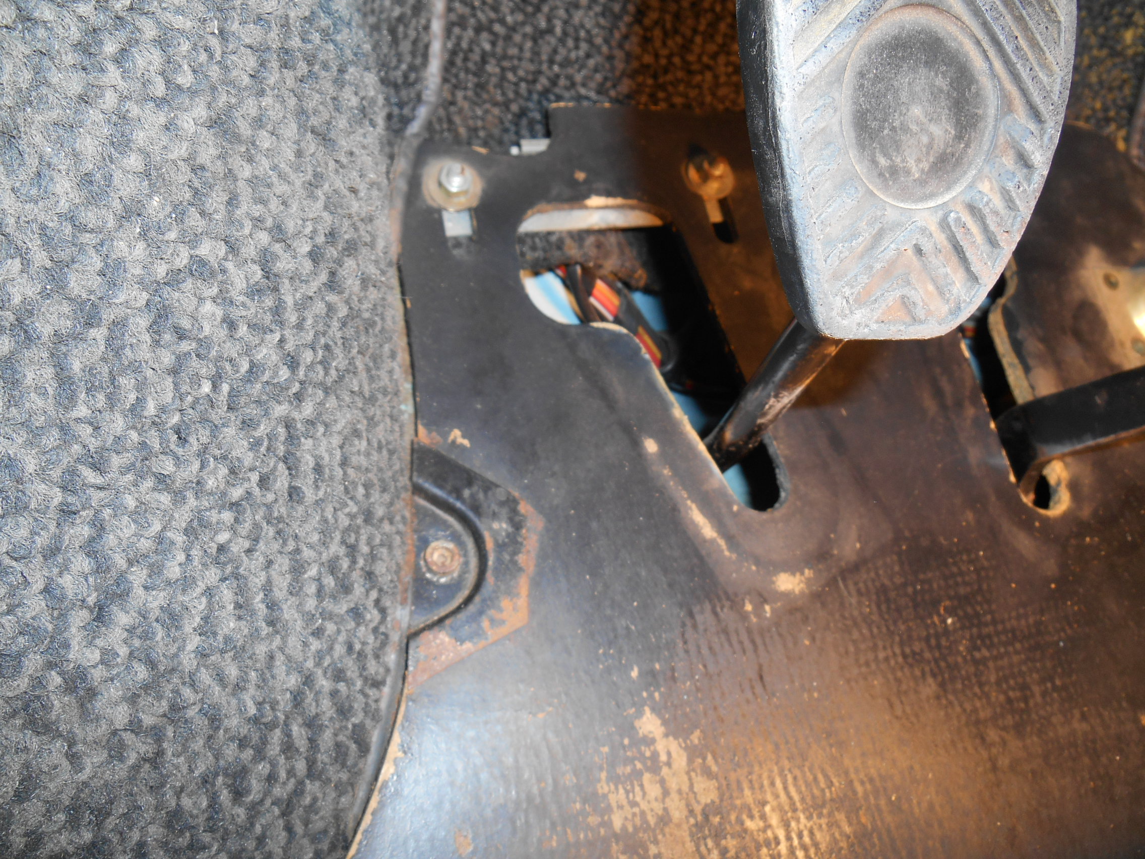 I did look at it today when I was down there checking the indicator lights for the fan/defrost assembly 3 are now working but the last right bottom indicator is not, tried new bulbs and pulling out the tiny wire leads on the bulbs but it appears that the one socket might be bad. Anyway back to the brake lights staying on when the key is on, I took these pictures and it looks like 4 nuts need to come off and then I think the board will come off around the gas pedal to get to the brake light switch. First pictures show 3 nuts left and center, second pic shows one nut right of the gas pedal. Does that look right probably just these 4 nuts ??