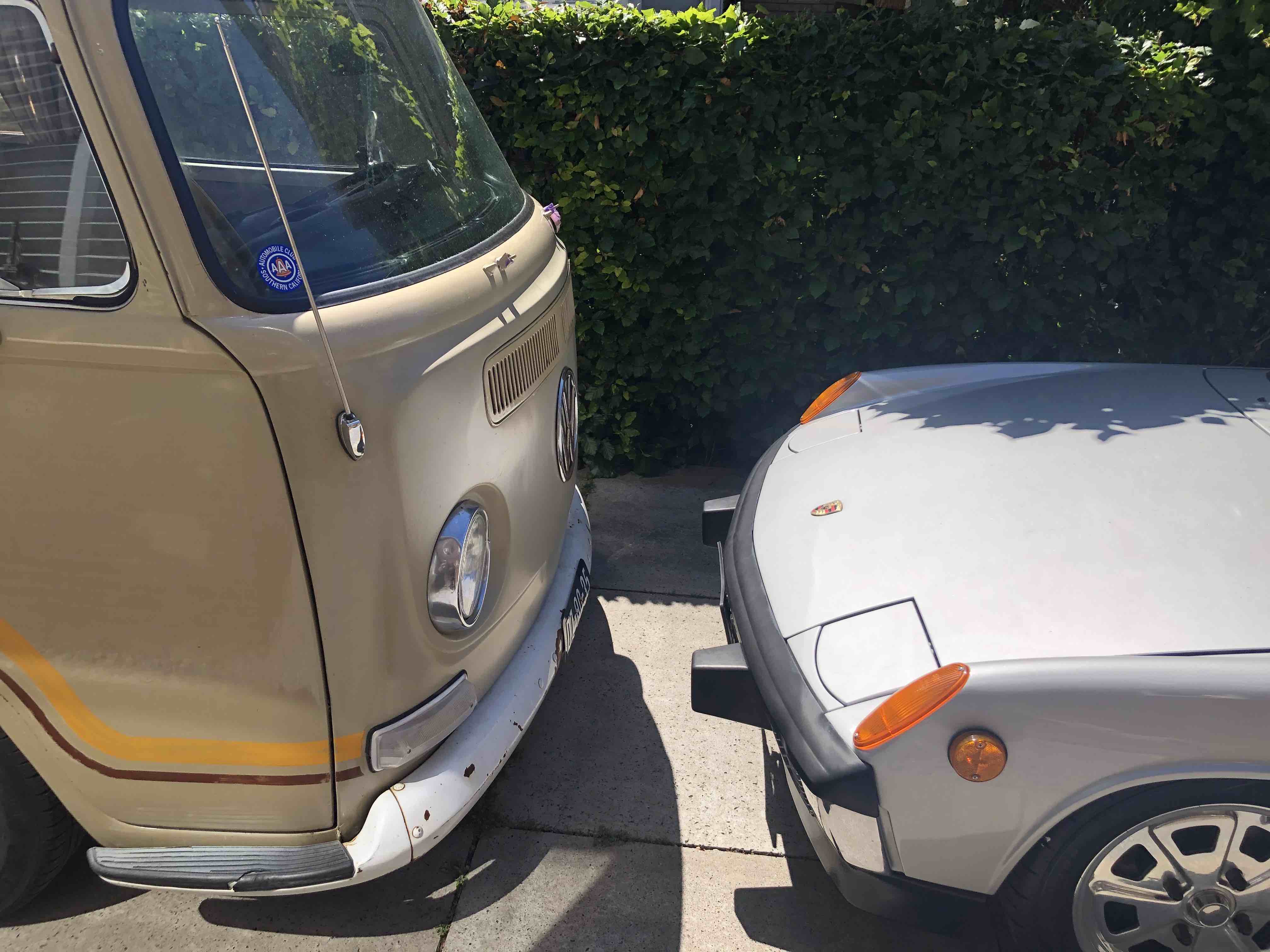 When I first say it it gave mee goosebumps and I'm so happy I switched from the yellow car to this one. It started with a little fight though. The rear right handbrake was stuck, so getting it on the truck was a bit of a hassle. When it sat in my driveway I just tapped the handbrake lever with a hammer and it just popped loose. So now I need to get it ready for MOT. But man I love this car already. It's even lower than I remembered it to be. Anyway, here's some pics! There it finally is! ![]() My dad gets first dibs in the teener. Loaded up and ready to come home! Finally on my driveway! Getting to know my dad's Boxster And my Westy Getting close with the westy So happy it's finally here! Shout out again @ValcoOscar , thanks bud (IMG:style_emoticons/default/beerchug.gif) |