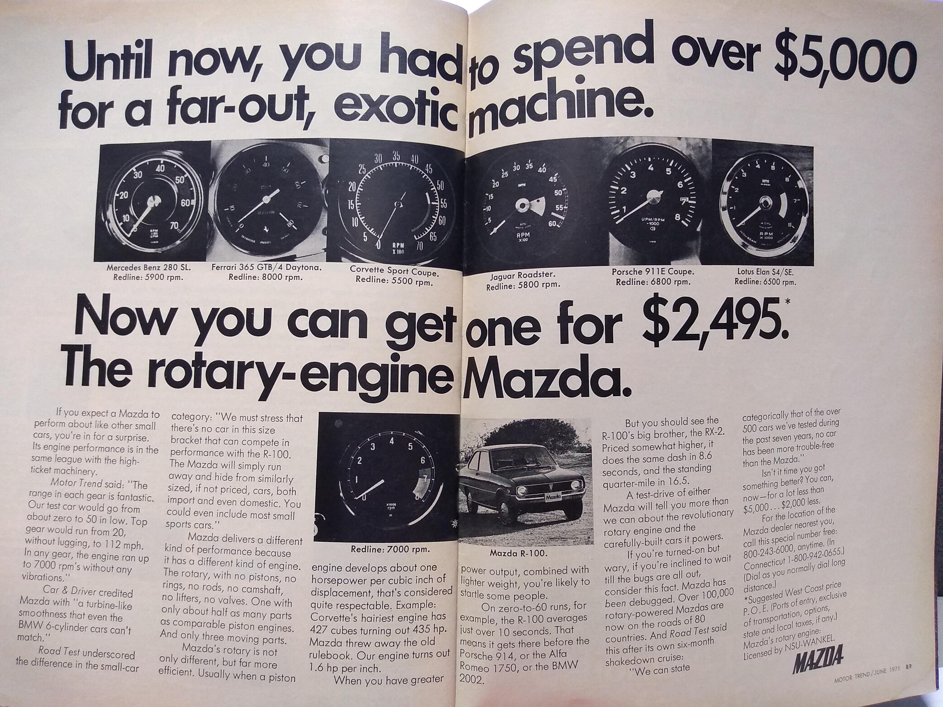 Came cross this Mazda R-100 ad from 1971. Says it was faster to 60 than a 914! How dare they! And...how many R-100s are still being driven? (IMG:style_emoticons/default/biggrin.gif)
