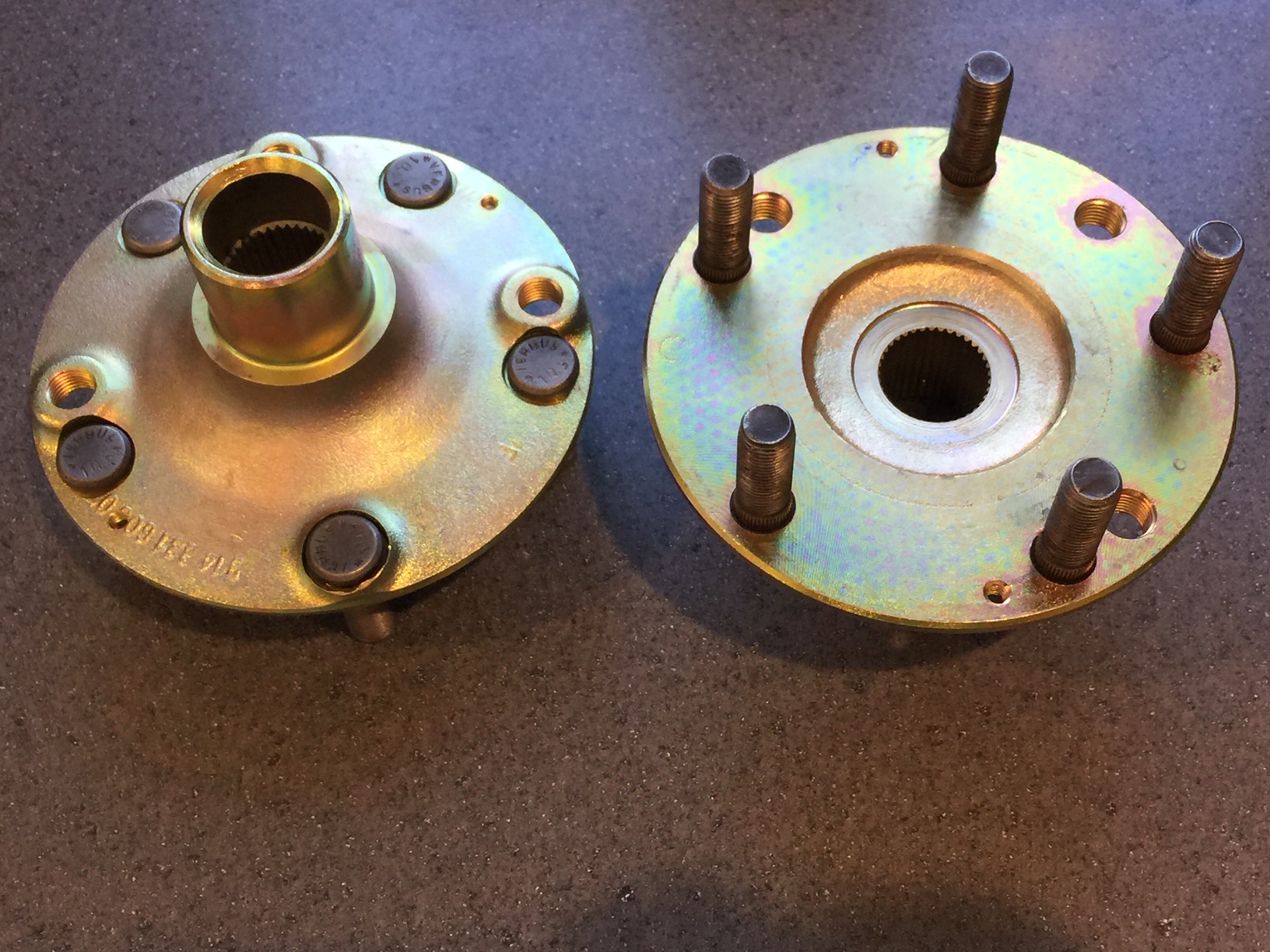 5 lug rear conversion hubs. These are stock 914-4 hubs that have been machined to accept 5 press-in Verbus studs. No locktite needed. Plated and ready to install. $195 + 15 ship. Email - mark@markepstein.net to purchase.