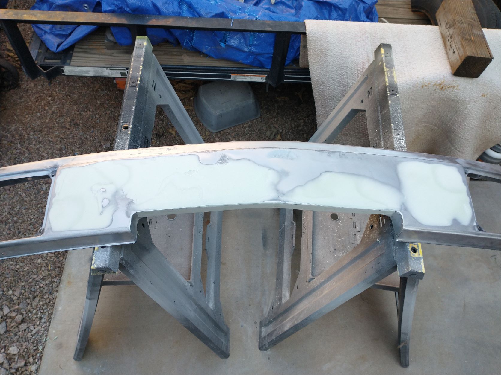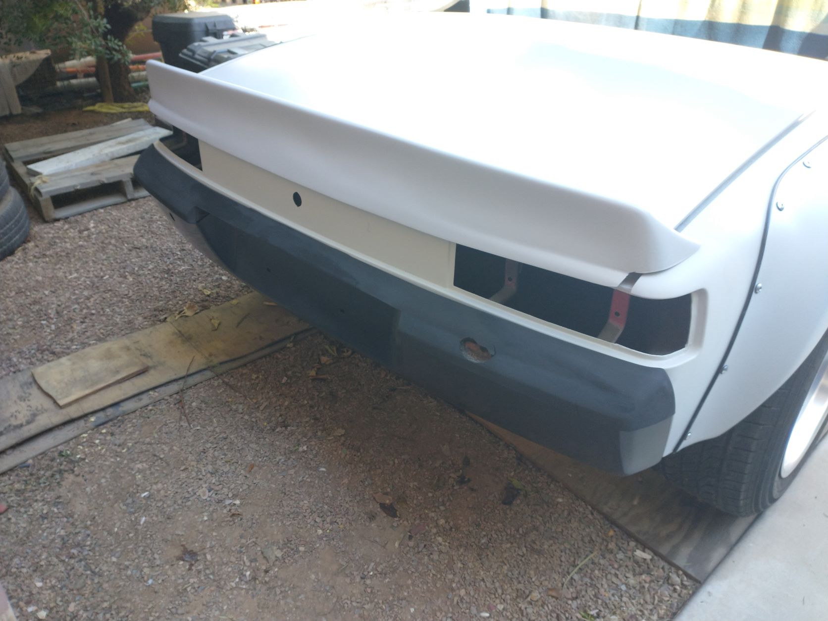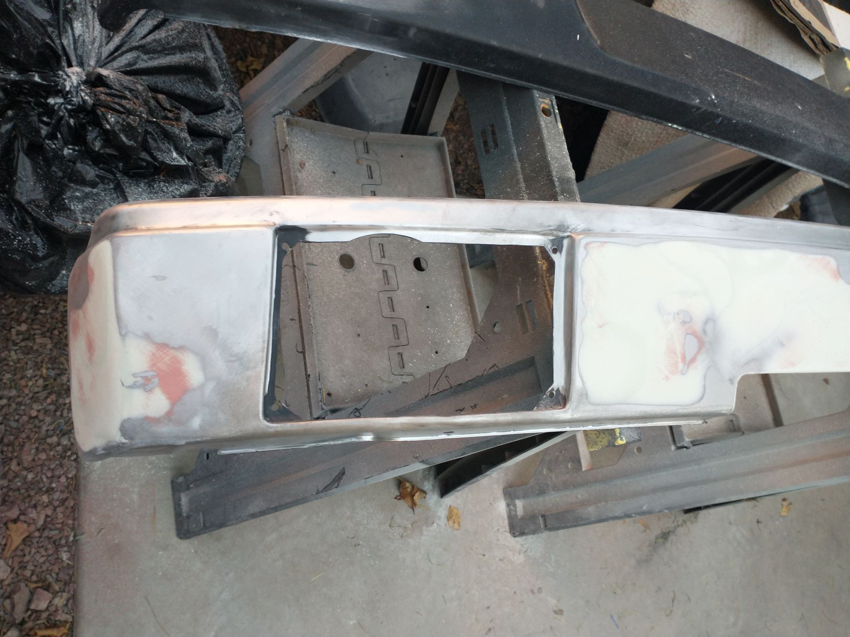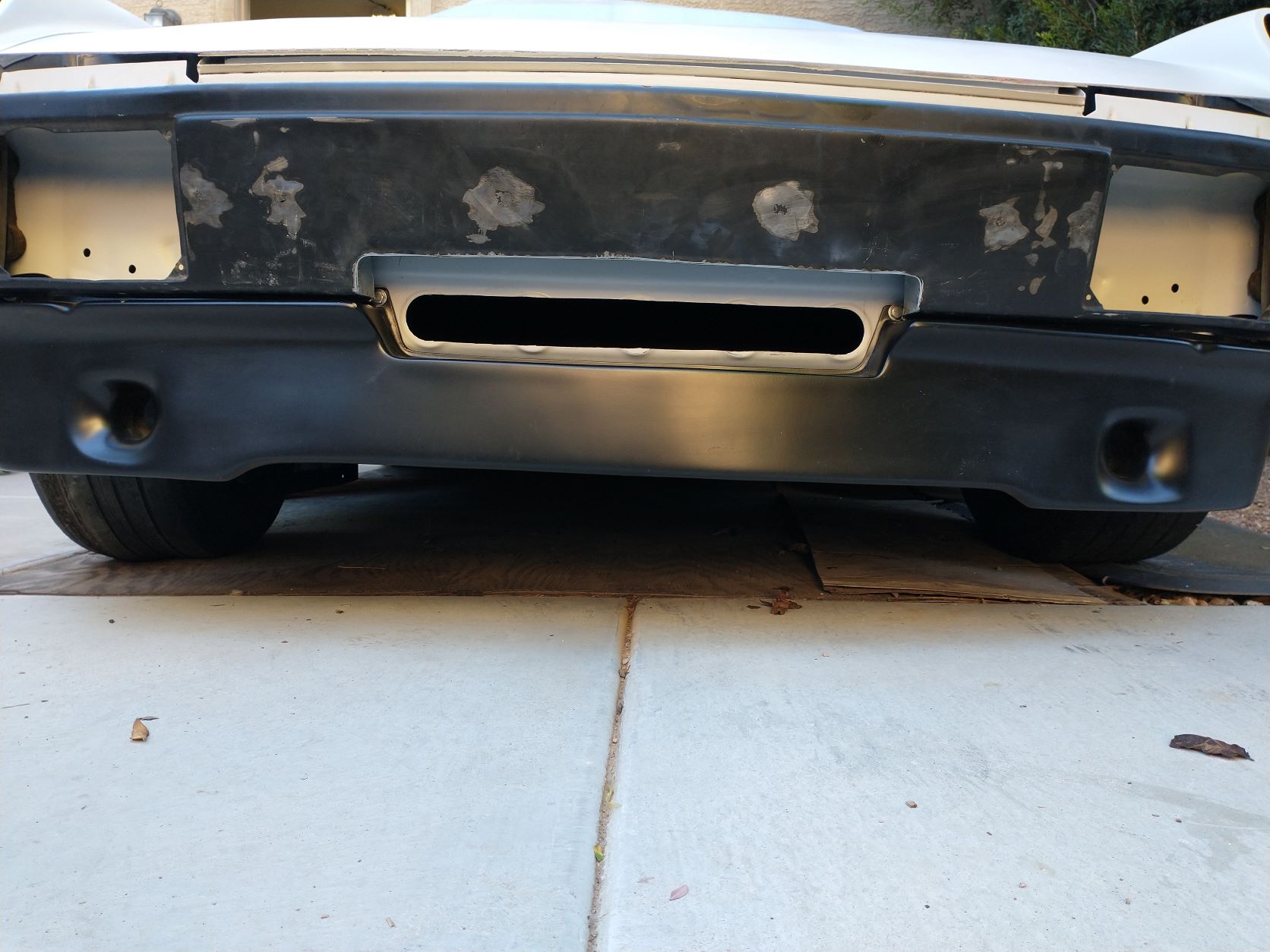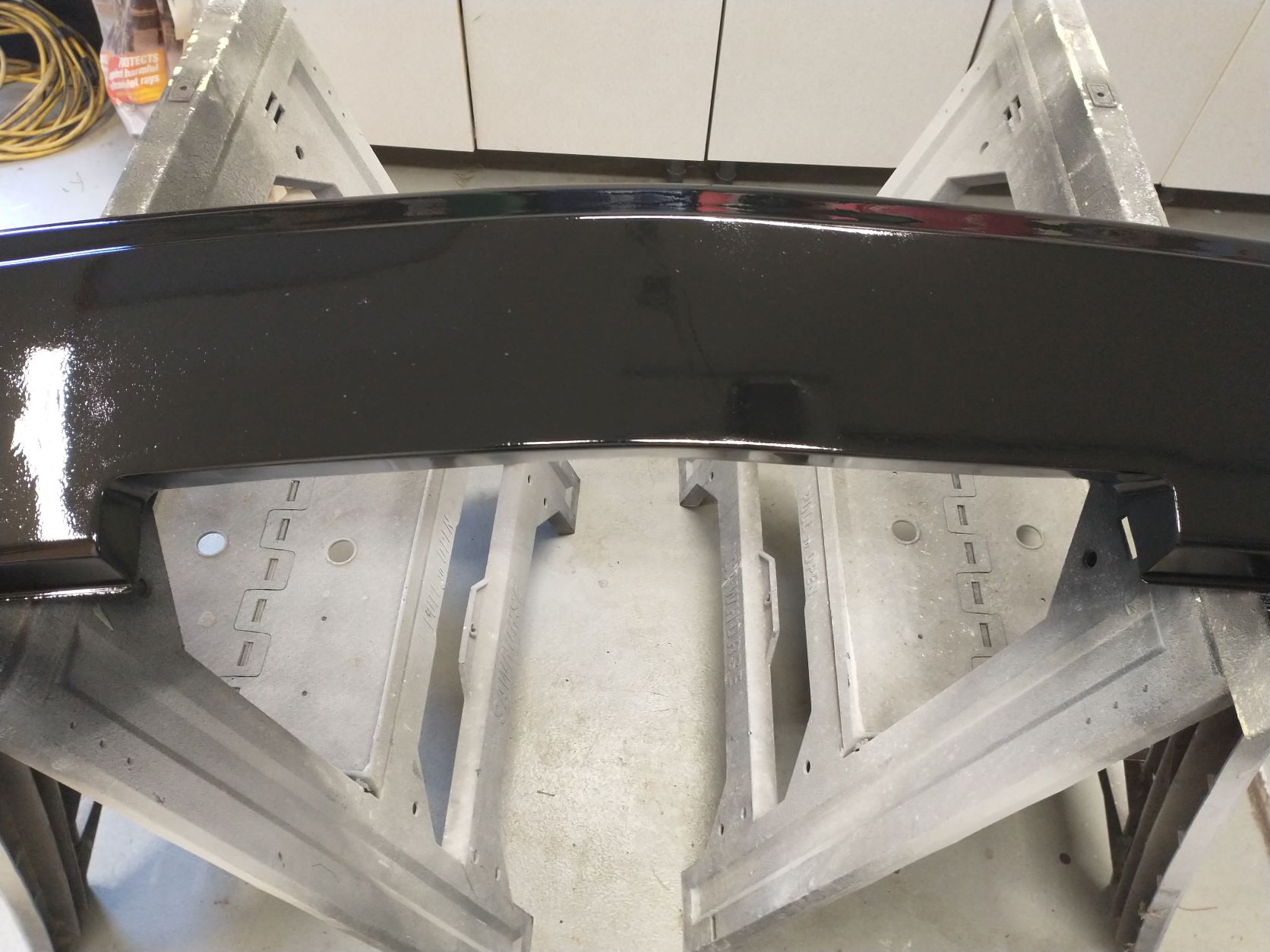I got the rear bumper cleaned up, painted, and mounted. It was a lot rougher than the front.