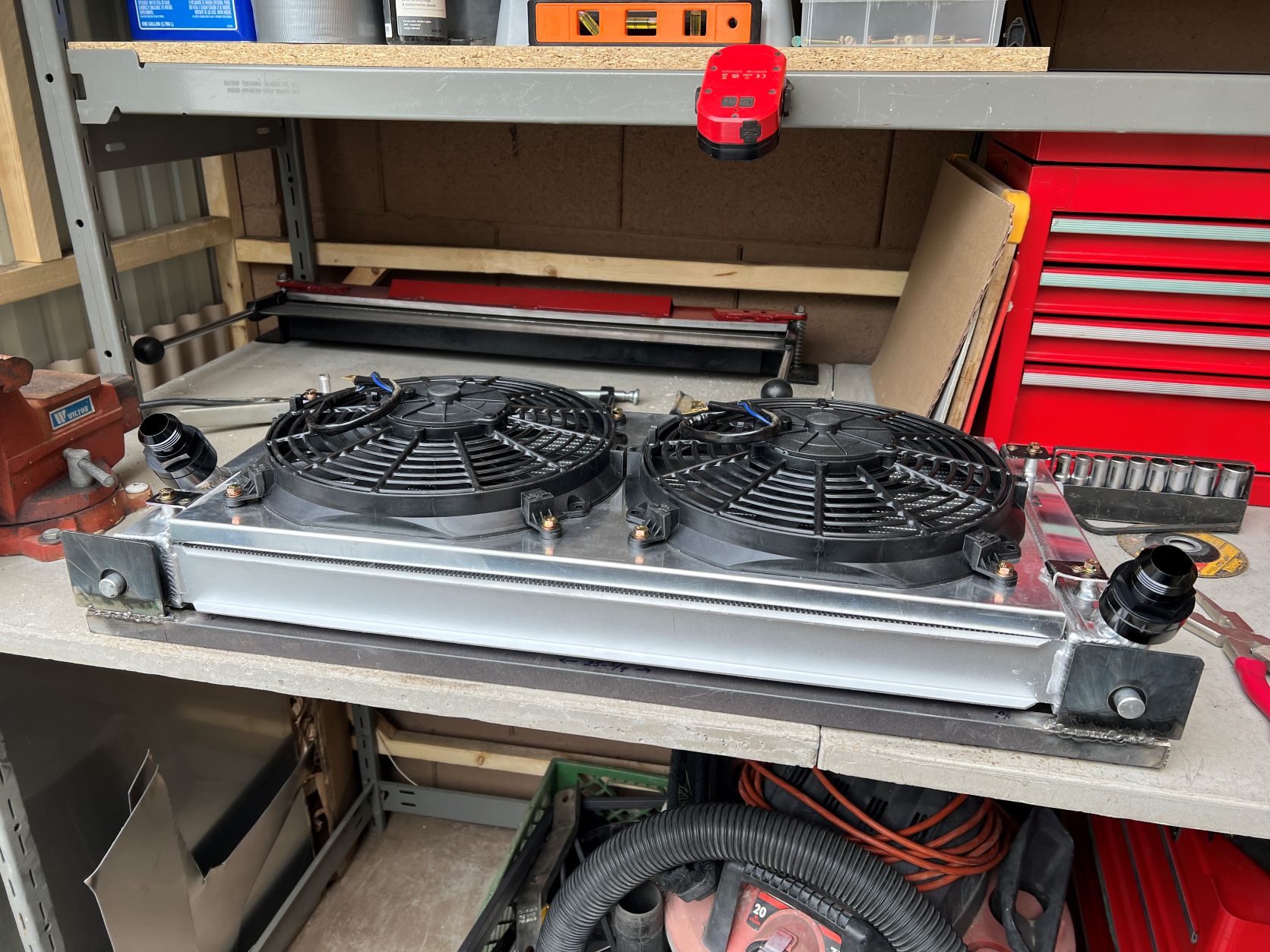 Thanks guys! Appreciate the encouragement (IMG:style_emoticons/default/pray.gif) I figure its another shot at enhancing aesthetic/style points...think I've heard that around here somewhere (IMG:style_emoticons/default/idea.gif) I'm always excited to see updates on this thread. Nice work @mgarrison ! I purchased that same radiator for my build and was also planning on using the water-neck adaptor with AN fittings and hose. What size AN hose are you using? A couple of thoughts on your interference situation... The water-neck adapter sure does look cool, but maybe it adds too much length here. Could you use a short section of rubber hose as the transition between the radiator and your AN hose? What about finding someone to TIG weld a short section of aluminum elbow to the radiator outlet? Just unprofessional observations from my situation, so YMMV... I'm sure you could have aluminum AN bungs welded into the radiator inlets. But, I wasn't sure where to get that done/who I'd trust to do it right on a brand new Mishimoto radiator. If I had it to do over, I'd see if Mishimoto would do it for me. Looking at how low that inlet sits in relation to the bottom of the radiator, and how low you need to mount the radiator to clear the hood support structure (nearly impossible to see/figure out until I cut my hood vent), I don't think a hose would work unless it was molded as an elbow, and even then it would be snug, or you might need to shorten the end attaching to the inlet. If the inlets were horizontal it would be much simpler...When I spoke to the Mishimoto guys about flow direction in their Celica radiator, they did mention you could run it upside down. Drain plug would be on top, and overflow connection on bottom, but it is possible. That would put the "lower" inlet near the hood and angled towards the hood though. I was not super happy with how my radiator mount came out. It worked and wasn't really seen, but sure could be better. I'm getting my chance to improve it I guess! (IMG:style_emoticons/default/sawzall-smiley.gif) I ran -16 braided hose through my longs. The -20 did not really fit, and seemed to collapse much easier than the -16. Not sure on the hose specs as it came with the engine/trans I bought from another member of 914World. If your using -20 I have 4 -20 bulkhead fittings you can have if you want/need them - just cover shipping and there yours... I just learned a hip new acronym! (YMMV) I'm one step closer to hanging with the cool kids! (IMG:style_emoticons/default/shades.gif) Thanks! I'm also using the -16 hose, but thank you for the offer of your fittings! That would be a helluva deal! Those things are not cheap! |