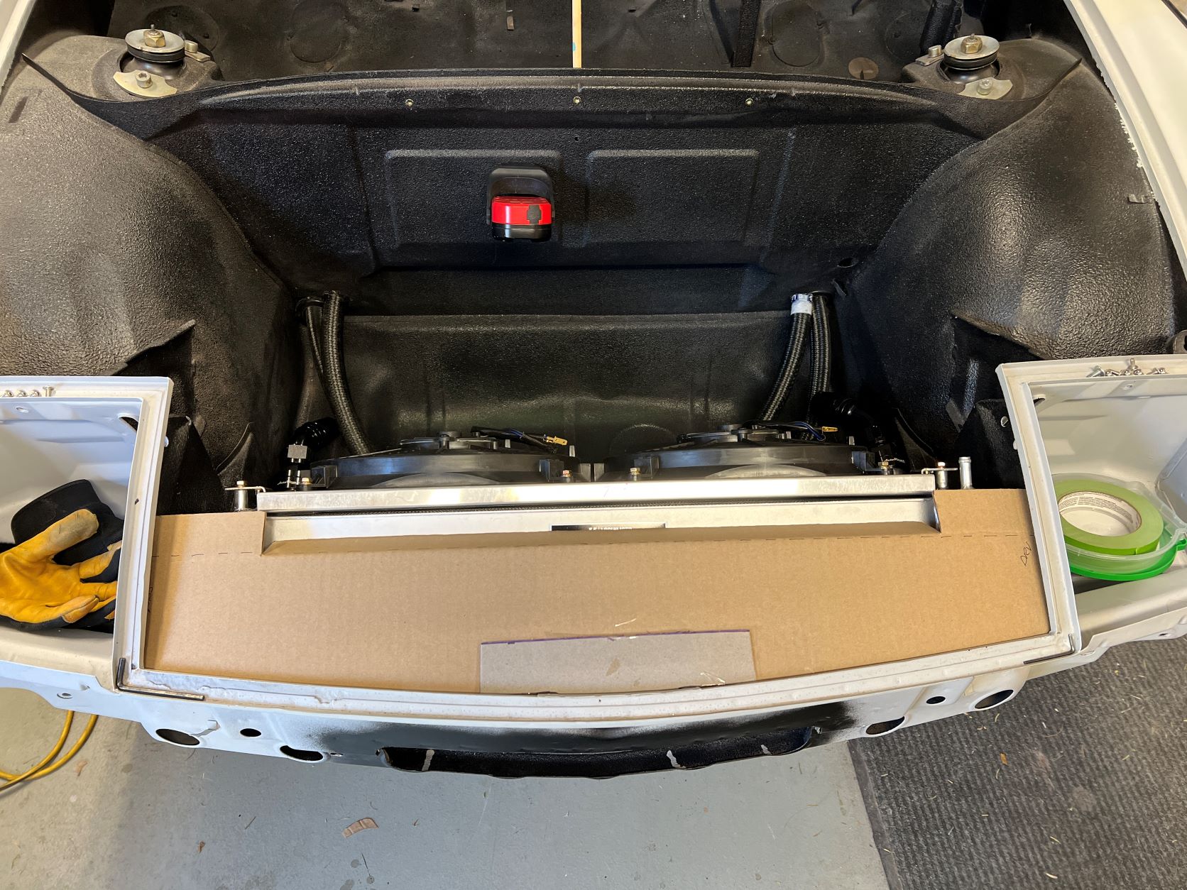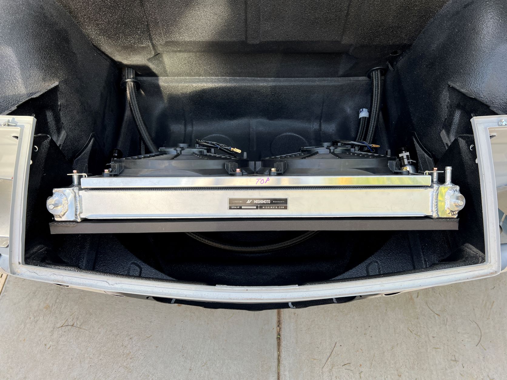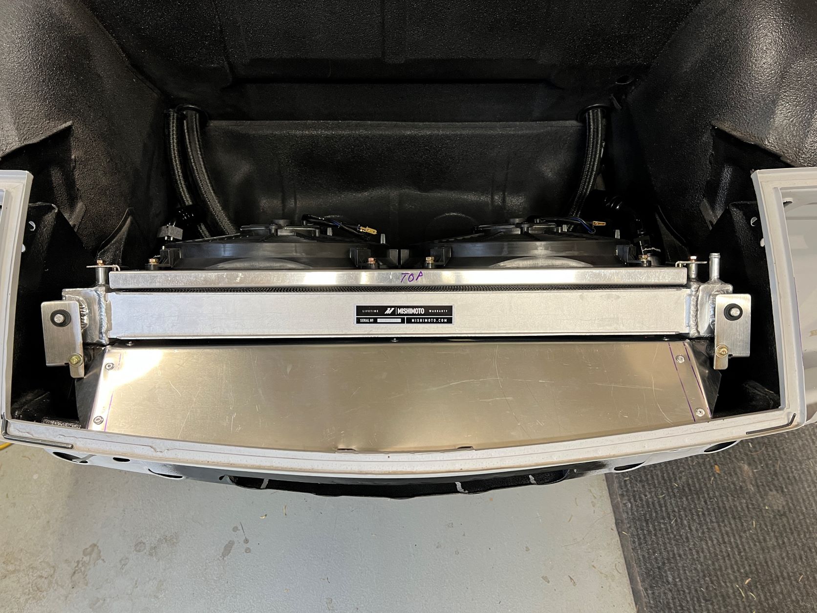 Thanks guys! Appreciate the encouragement (IMG:style_emoticons/default/pray.gif) I figure its another shot at enhancing aesthetic/style points...think I've heard that around here somewhere (IMG:style_emoticons/default/idea.gif) I'm always excited to see updates on this thread. Nice work @mgarrison ! I purchased that same radiator for my build and was also planning on using the water-neck adaptor with AN fittings and hose. What size AN hose are you using? A couple of thoughts on your interference situation... The water-neck adapter sure does look cool, but maybe it adds too much length here. Could you use a short section of rubber hose as the transition between the radiator and your AN hose? What about finding someone to TIG weld a short section of aluminum elbow to the radiator outlet? Just unprofessional observations from my situation, so YMMV... I'm sure you could have aluminum AN bungs welded into the radiator inlets. But, I wasn't sure where to get that done/who I'd trust to do it right on a brand new Mishimoto radiator. If I had it to do over, I'd see if Mishimoto would do it for me. Looking at how low that inlet sits in relation to the bottom of the radiator, and how low you need to mount the radiator to clear the hood support structure (nearly impossible to see/figure out until I cut my hood vent), I don't think a hose would work unless it was molded as an elbow, and even then it would be snug, or you might need to shorten the end attaching to the inlet. If the inlets were horizontal it would be much simpler...When I spoke to the Mishimoto guys about flow direction in their Celica radiator, they did mention you could run it upside down. Drain plug would be on top, and overflow connection on bottom, but it is possible. That would put the "lower" inlet near the hood and angled towards the hood though. I was not super happy with how my radiator mount came out. It worked and wasn't really seen, but sure could be better. I'm getting my chance to improve it I guess! (IMG:style_emoticons/default/sawzall-smiley.gif) I ran -16 braided hose through my longs. The -20 did not really fit, and seemed to collapse much easier than the -16. Not sure on the hose specs as it came with the engine/trans I bought from another member of 914World. If your using -20 I have 4 -20 bulkhead fittings you can have if you want/need them - just cover shipping and there yours... |