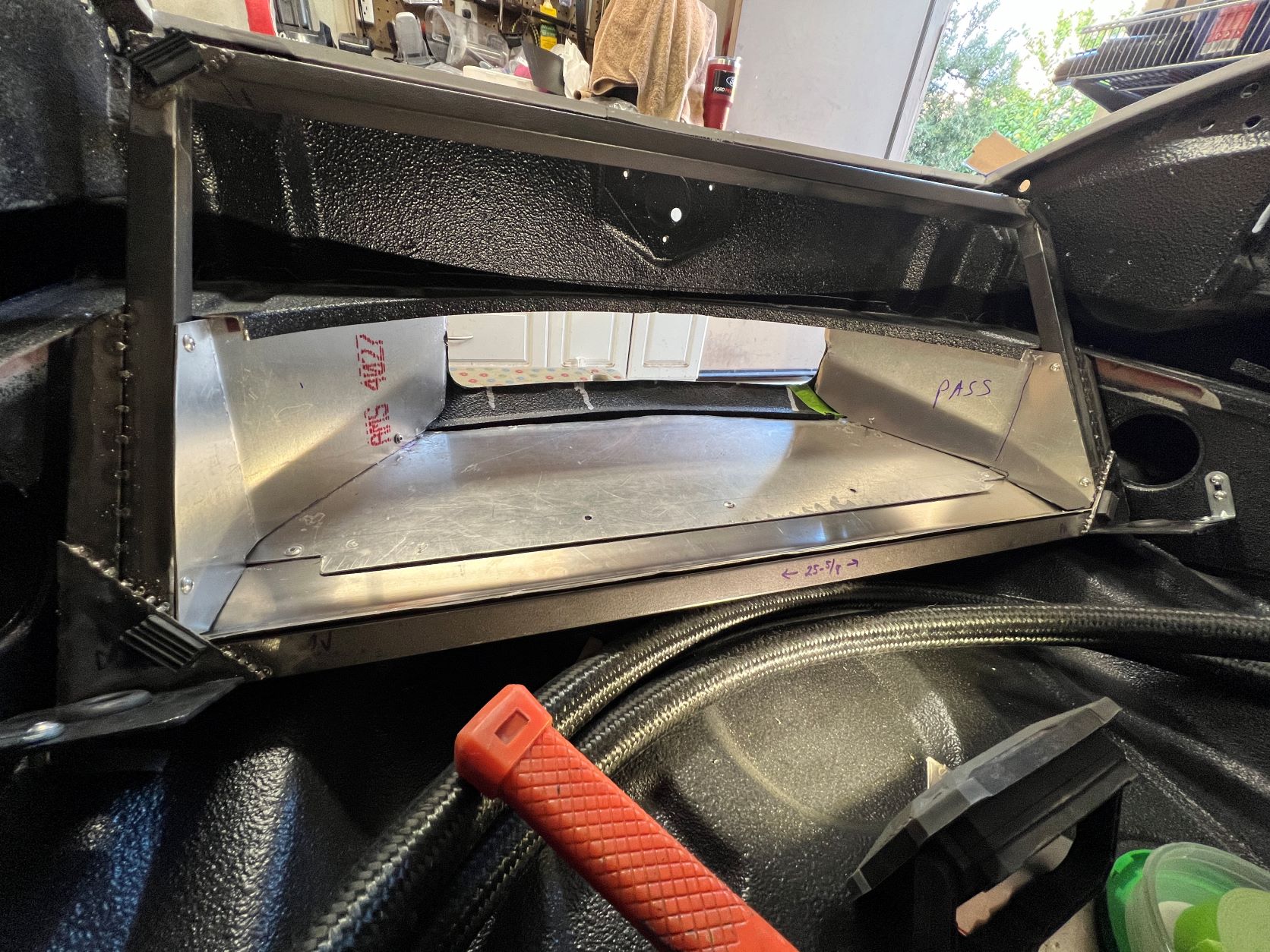 I got to spend a few hours this afternoon and made some progress. Lower ducting is in place. I just need to get more rivets - only had 3 left from the last revision. I have the upper sides cut out. Just working on fine tuning them and then I'll need the rivets to attach them. I'm trying to reuse as much as possible from the last revision - that's why the bottom is two pieces riveted together. (IMG:style_emoticons/default/smash.gif) |