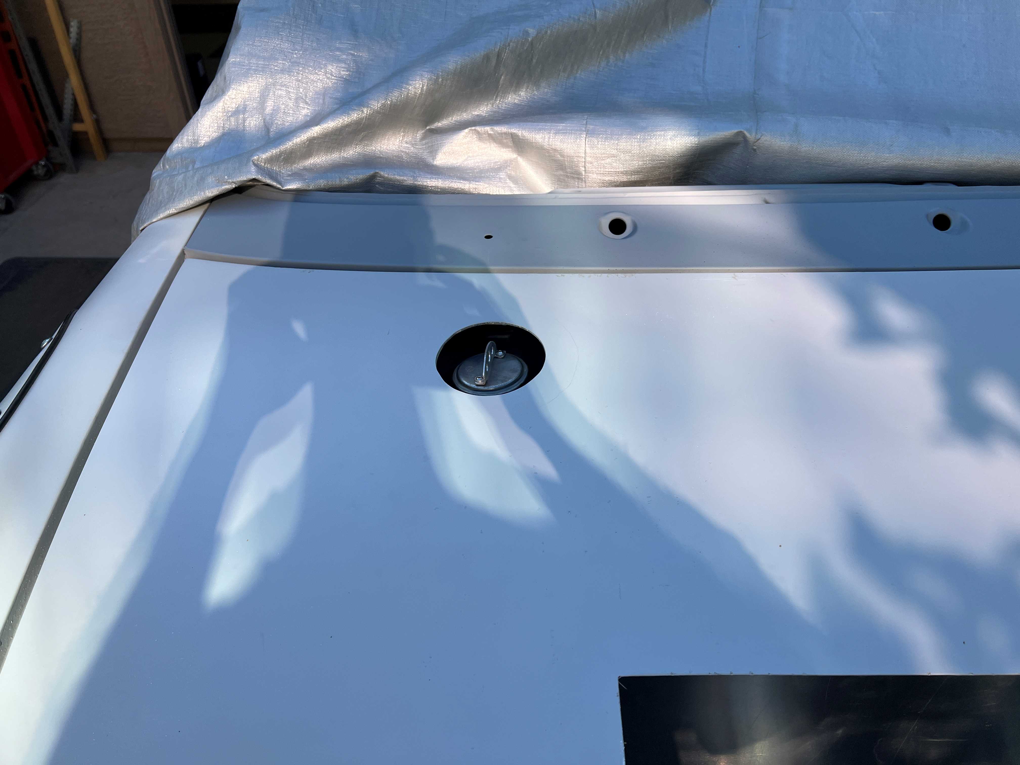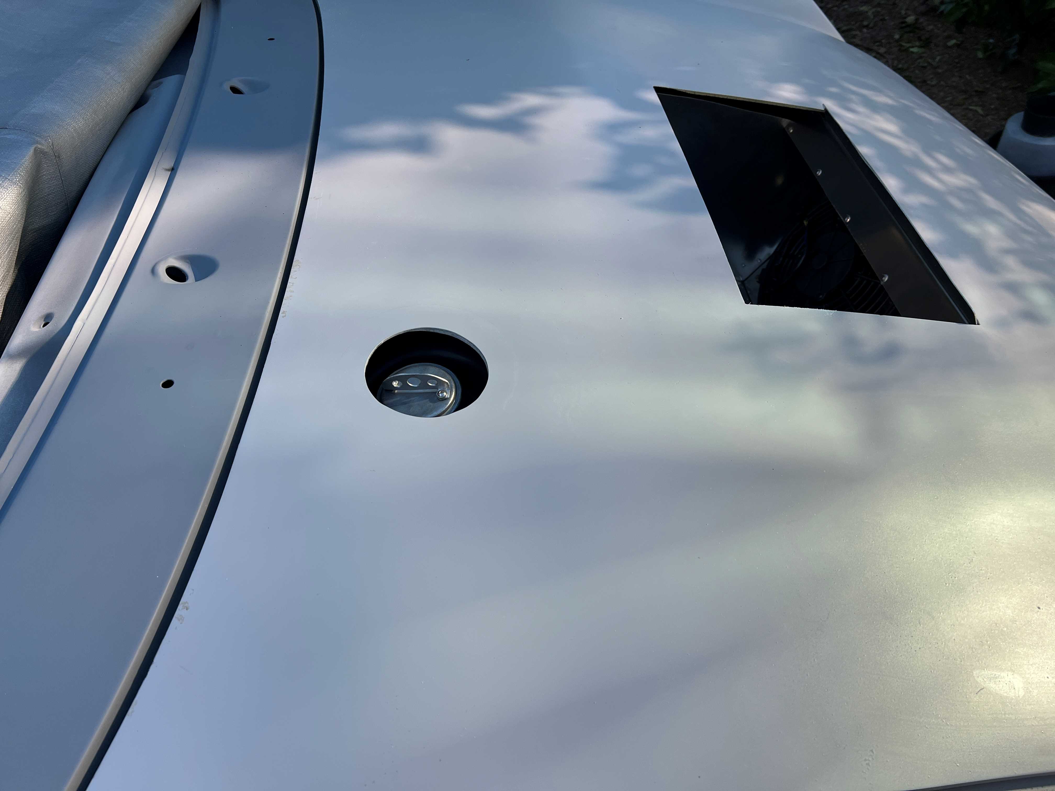 Waiting on fuel pump and various parts, connectors, etc. Printed out the PMS directions for the gas cap opening in the hood. Double-checked several times and got it as close as I could without cutting into the hood support structure on the bottom of the hood. Not perfect, but very little is perfect on my '14! (IMG:style_emoticons/default/wacko.gif)