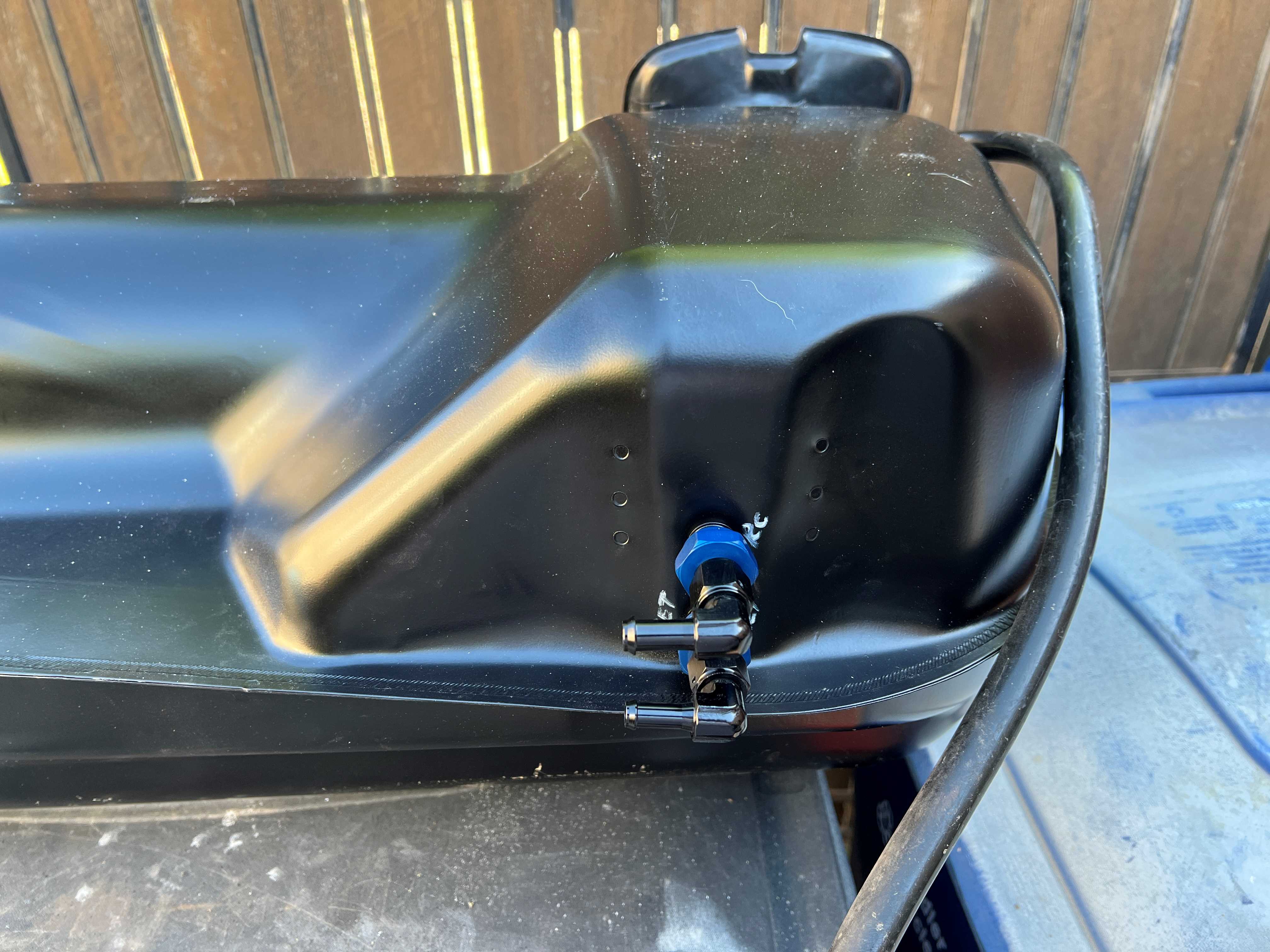 I still need to trim the driver's side down a bit to make enough room to get it all connected. Sadly, they didn't have the elbows in the size I needed. Kudos to the couple members here at 914World that pointed me to these VW-AN adapters for the outlets on the bottom of the fuel tank. Seems like they will make connecting/routing lines to fuel filter and pump much cleaner & easier (IMG:style_emoticons/default/aktion035.gif) |