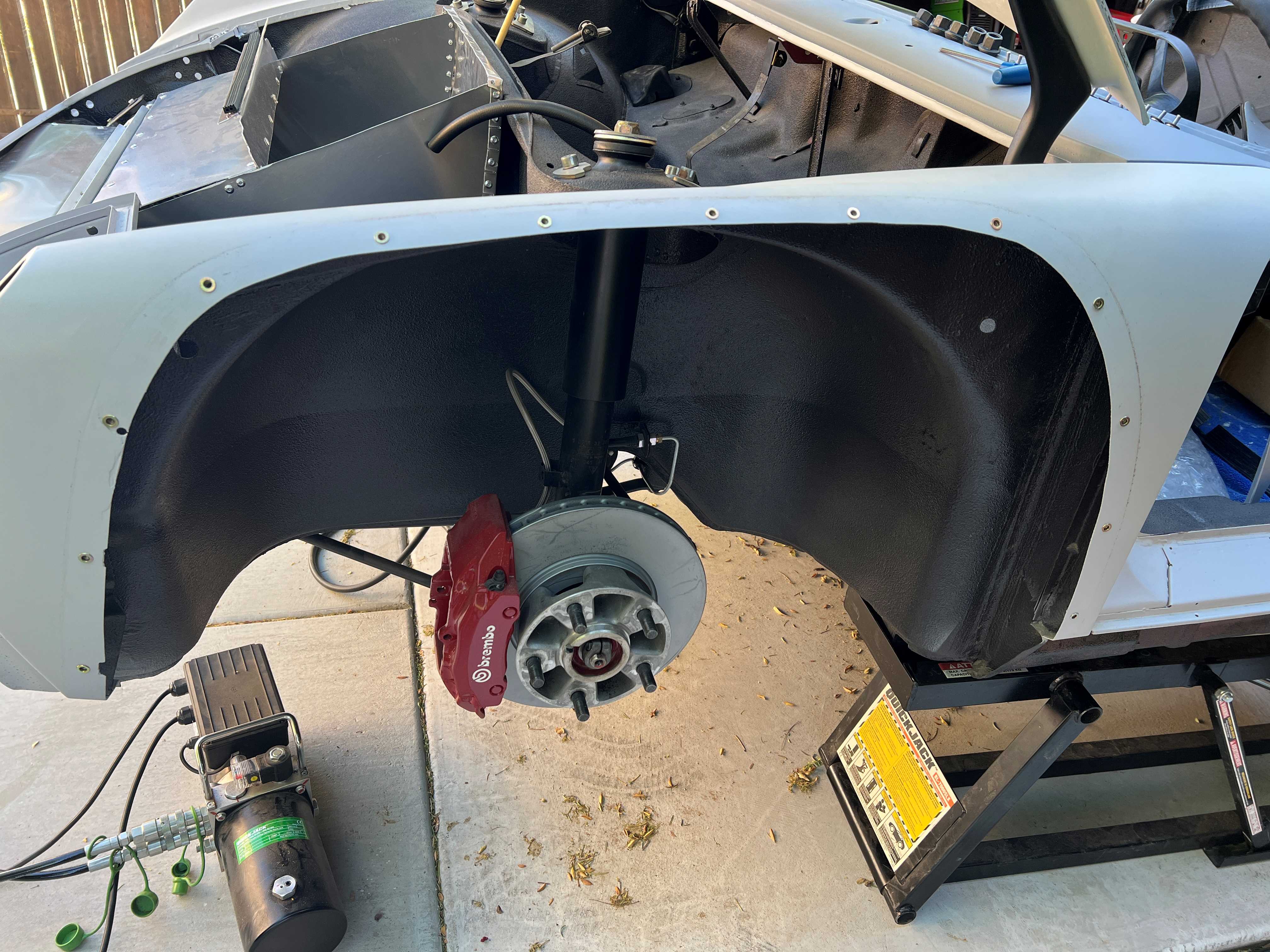 It is nice to be able to just unbolt the flares and remove them so you have plenty of room to work with the struts, brakes, etc. Not sure how getting to the strut to remove & get the part number off of the insert might have gone with permanently mounted flares! (IMG:style_emoticons/default/idea.gif)