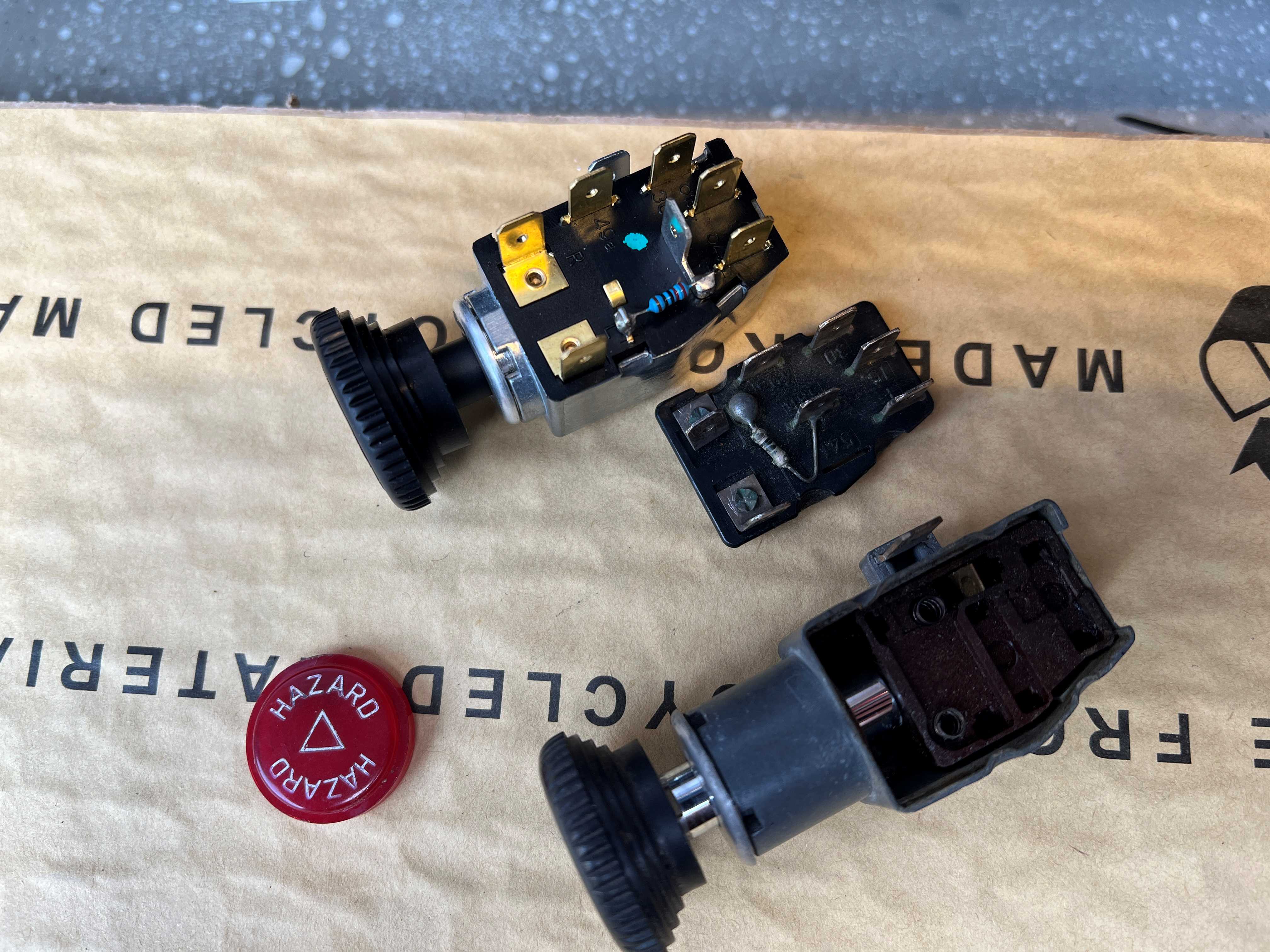 Here's the JBugs VW hazard switch compared to the original: Seems rather simple if you wanted to swap the original switch cover/label onto the replacement switch. Here's the wiring diagram they provide - seems to match up correctly with the original: ![]() |