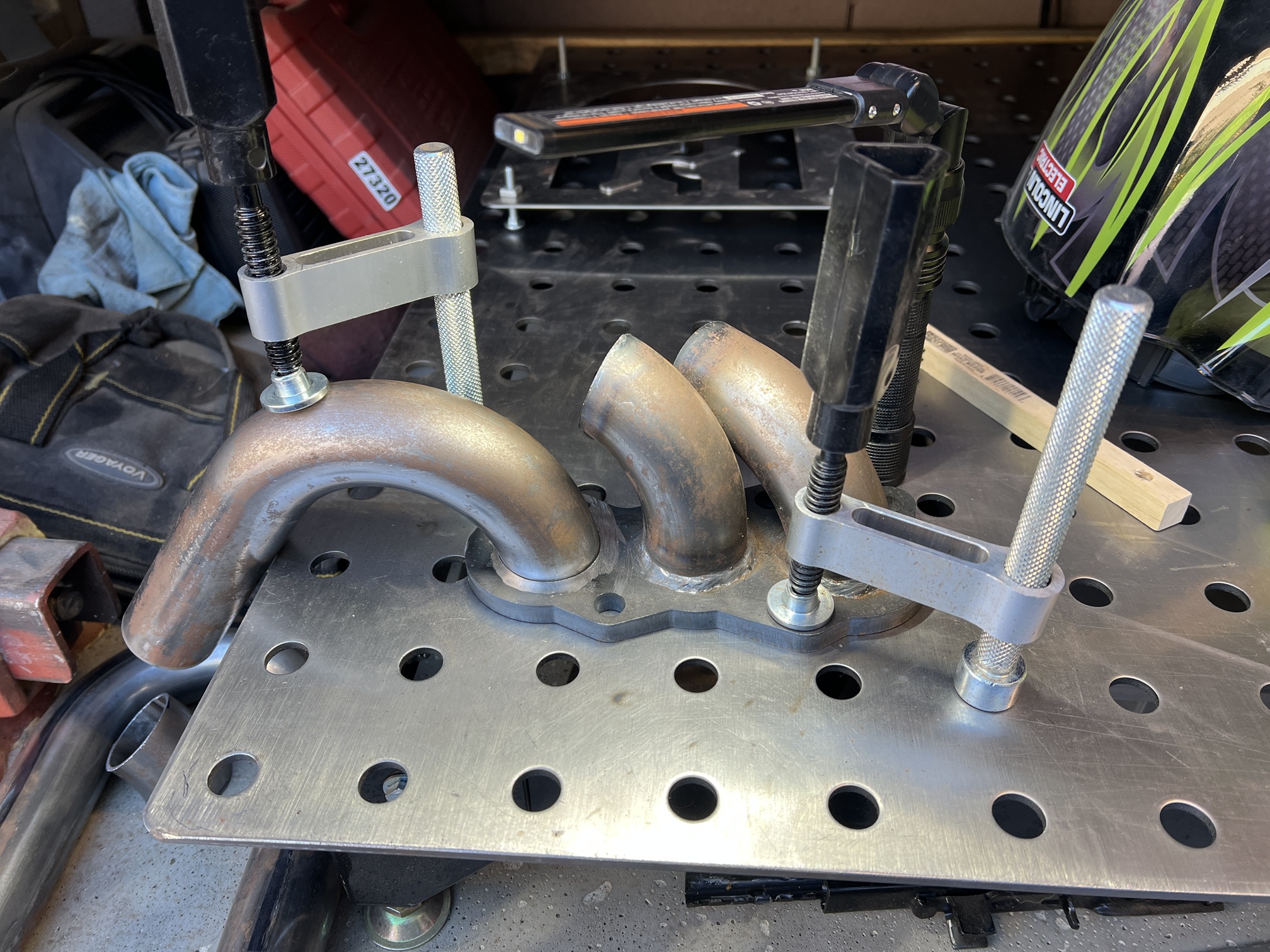 Yea, I got frustrated enough trying to hold tubes together I just ordered the clamps Chris showed in one of his Ferrari 914 videos. Not cheap, but they pivot to clamp bends too. (IMG:style_emoticons/default/beerchug.gif)