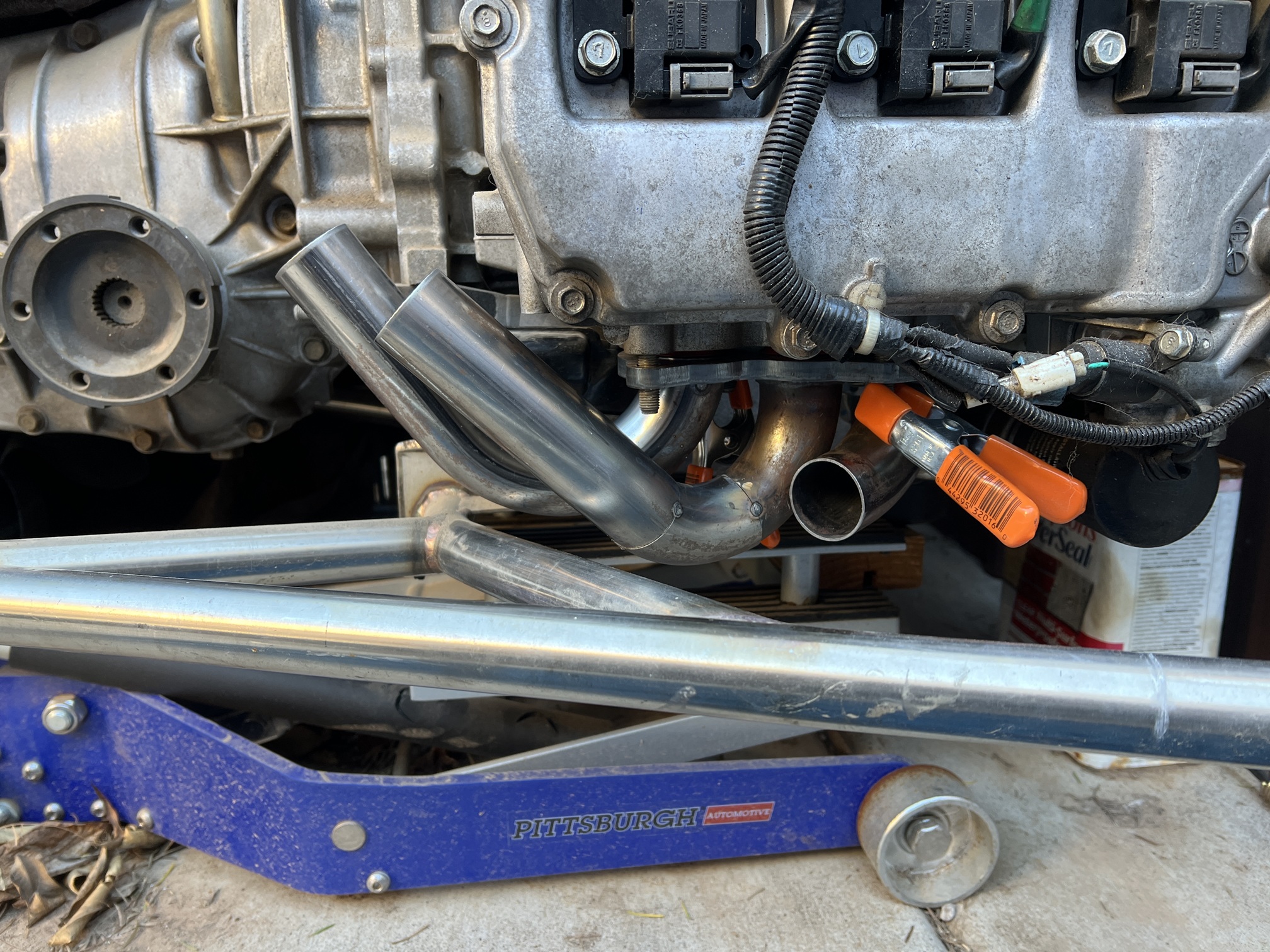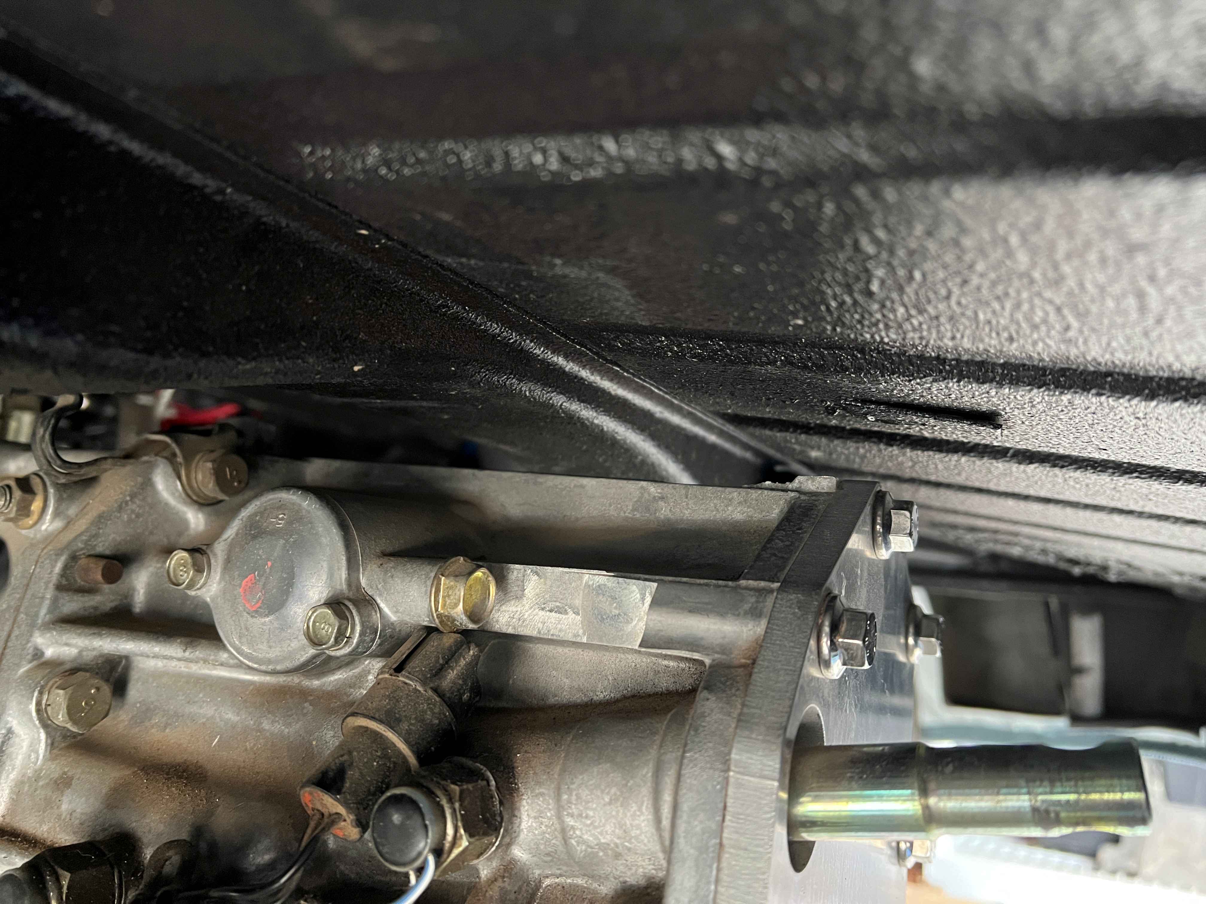 With those 3/4" spacers, here is the space I have left above the Subaru 5MT. I did upgrade from my little HF flux-core welder to an entry level AC/DC TIG welder. Now all I have to do is learn to TIG weld - no pressure at all! (IMG:style_emoticons/default/welder.gif) |