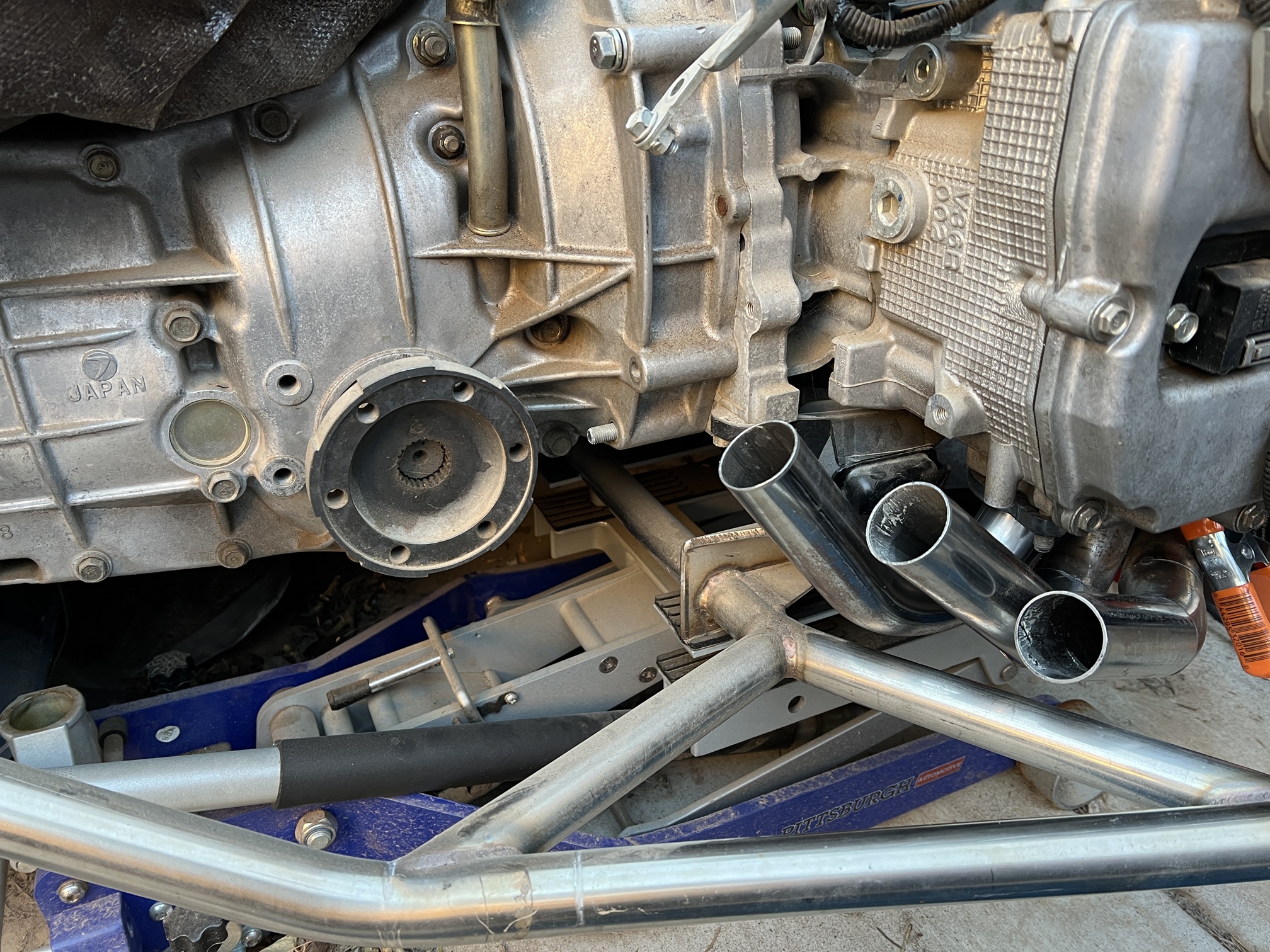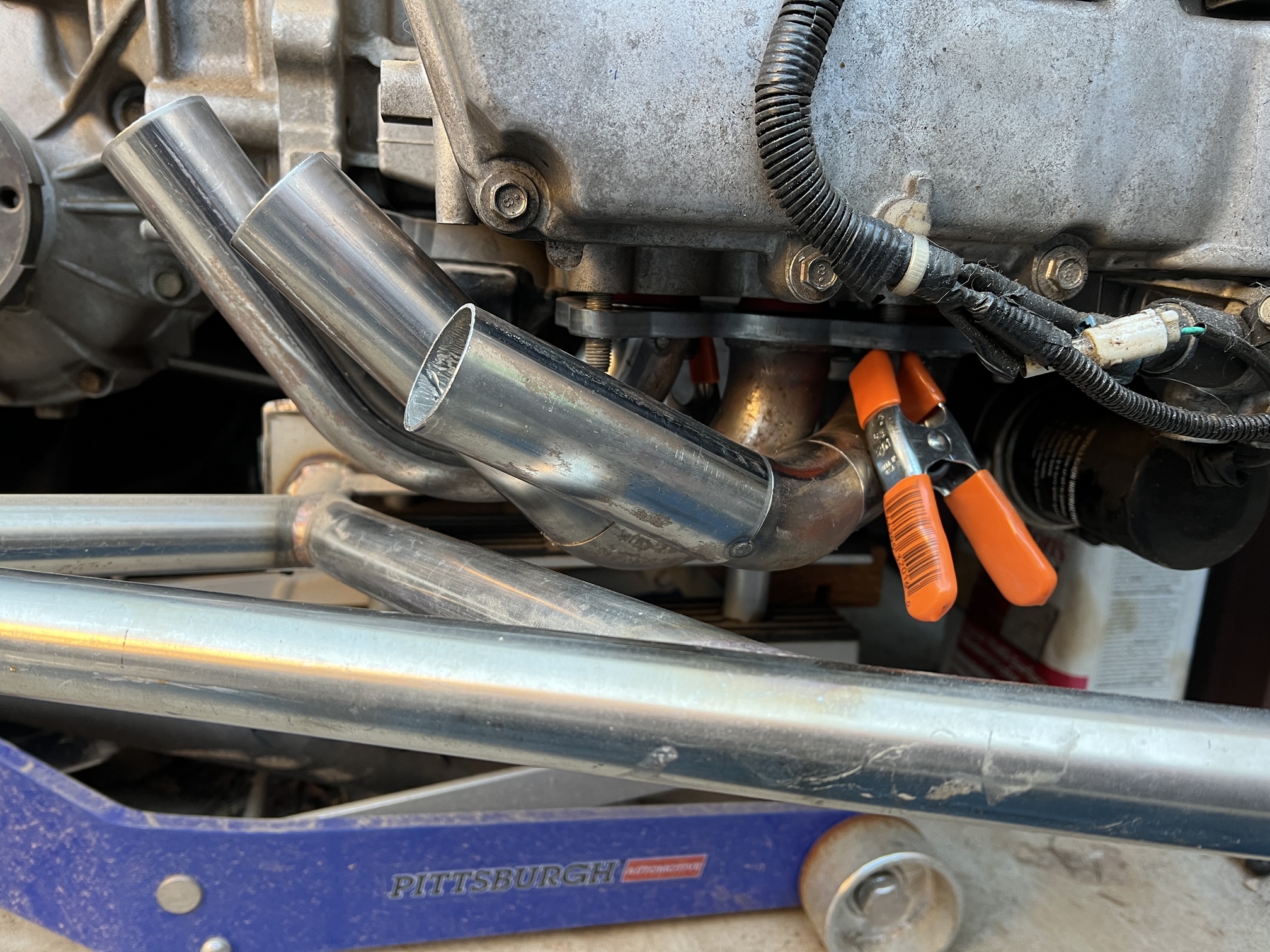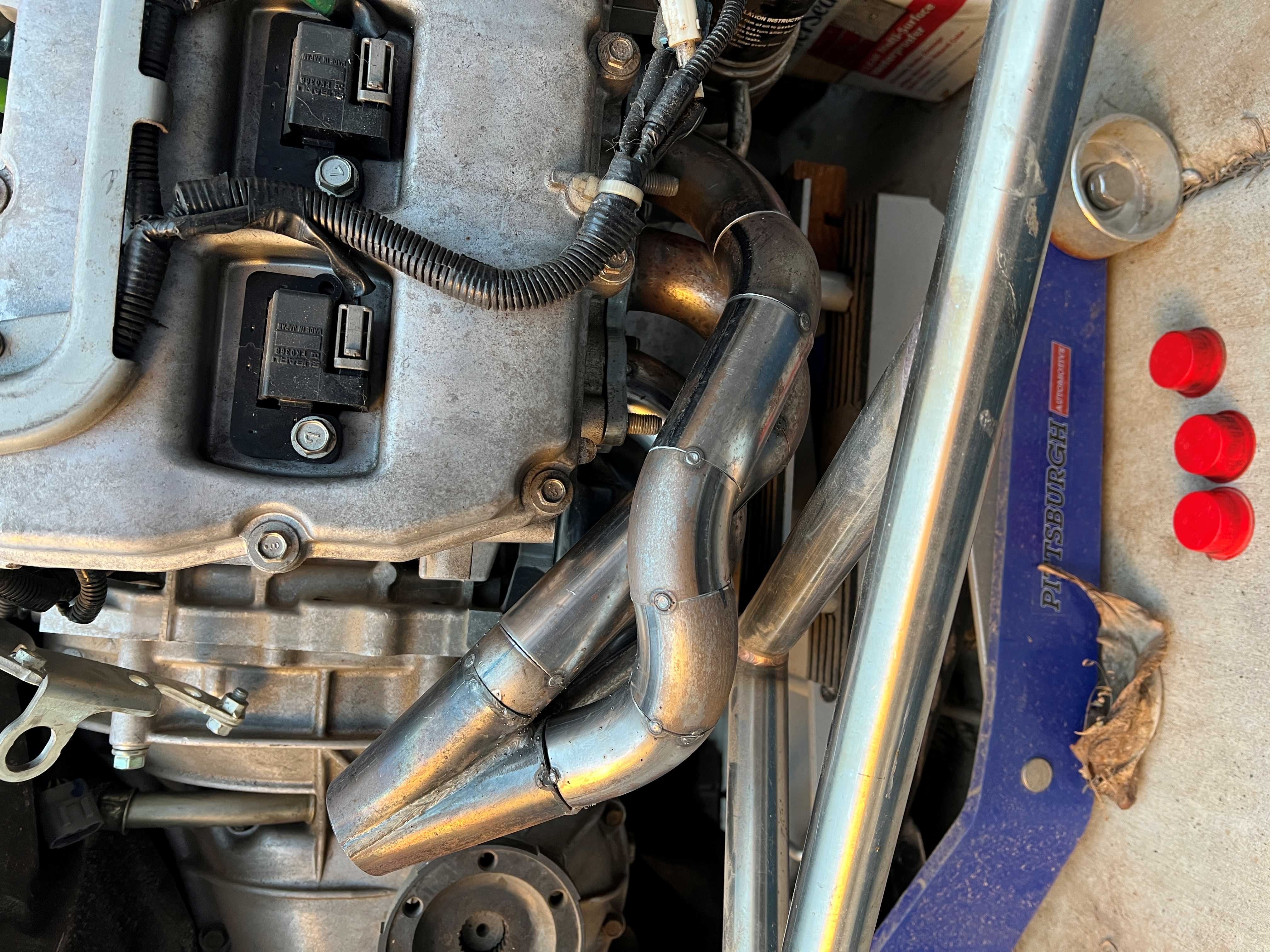 Seems to be quite a bit of room for the rest of an exhaust system. I just need to find some mufflers that will fit the space on each side. |