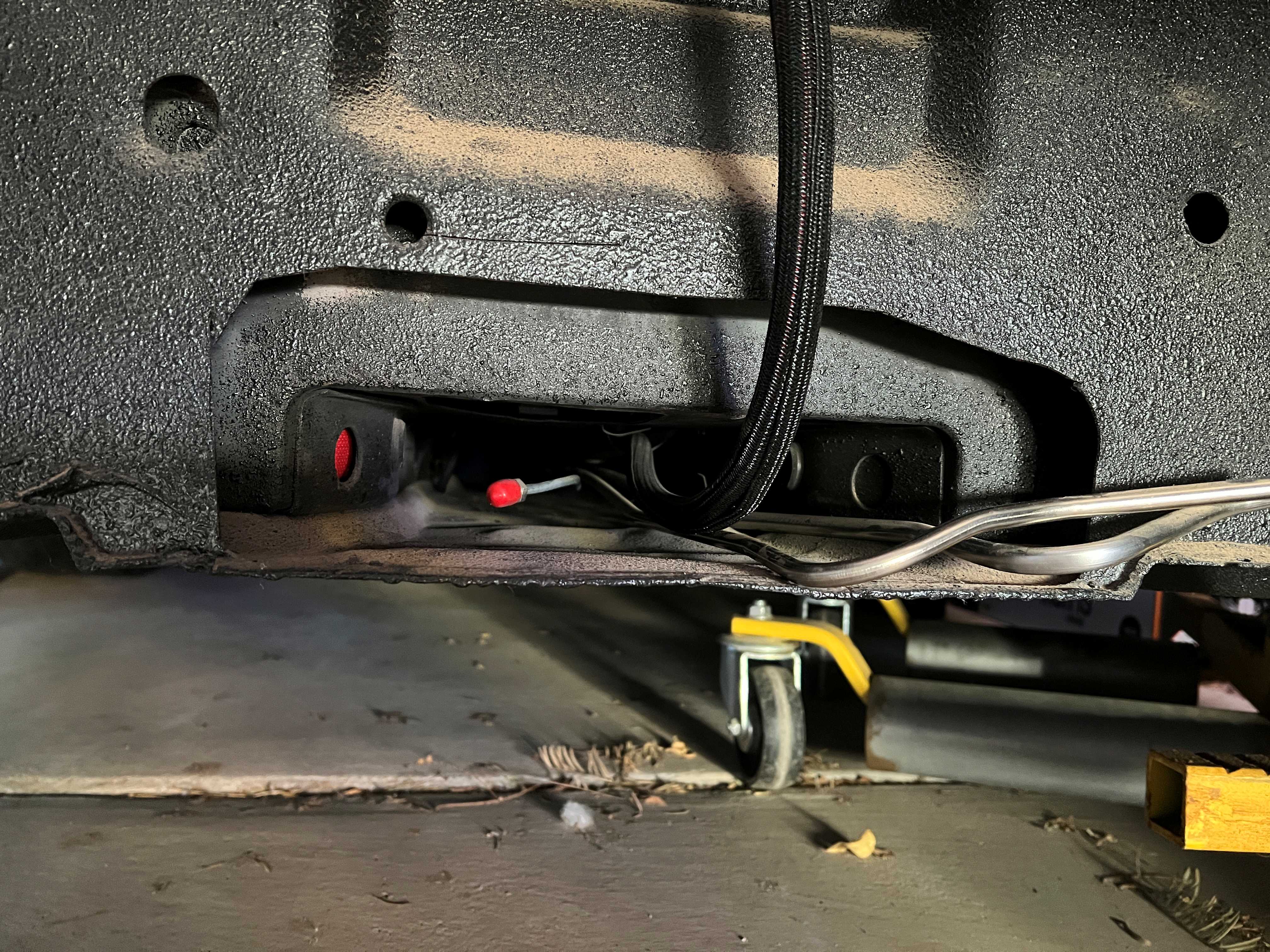 My neighbor walked over while the 914 was out front and we started discussing driveline angles. I cut a couple of lengths of PVC to mock up the axle angles and it sure looks like I should move the engine/trans as far to the rear as possible. It's currently pushed all the way forward. I have about 2" I can slide it back, but that means I will need to redo my trans mount!