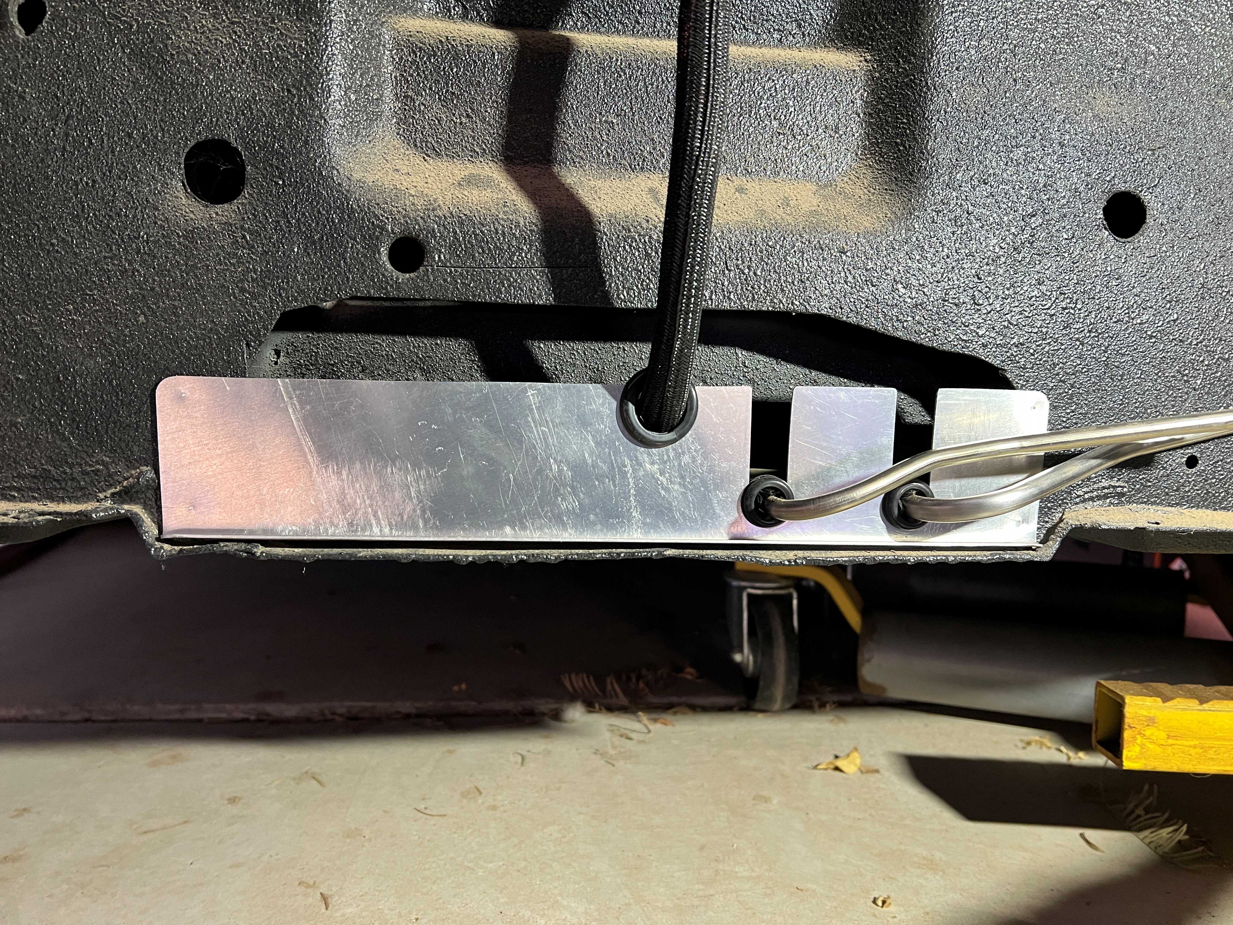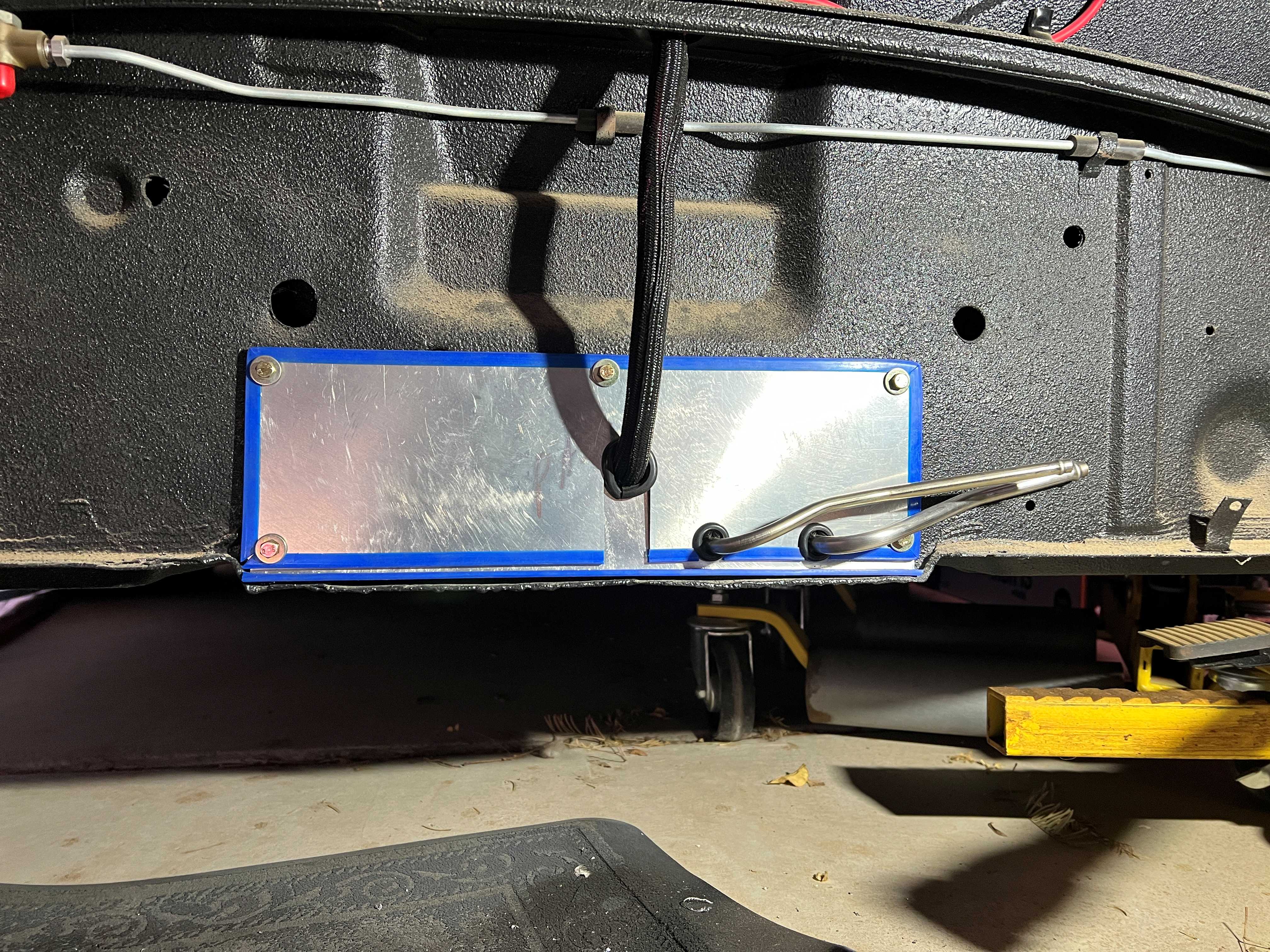 The blue stuff was just a cover that came on a bandsaw blade - thought I'd give it a quick try as a "seal" (IMG:style_emoticons/default/idea.gif) Split vacuum tube or something sure would look better! Figure I'll spray this black, or maybe even with Raptor liner so it hides it better. |