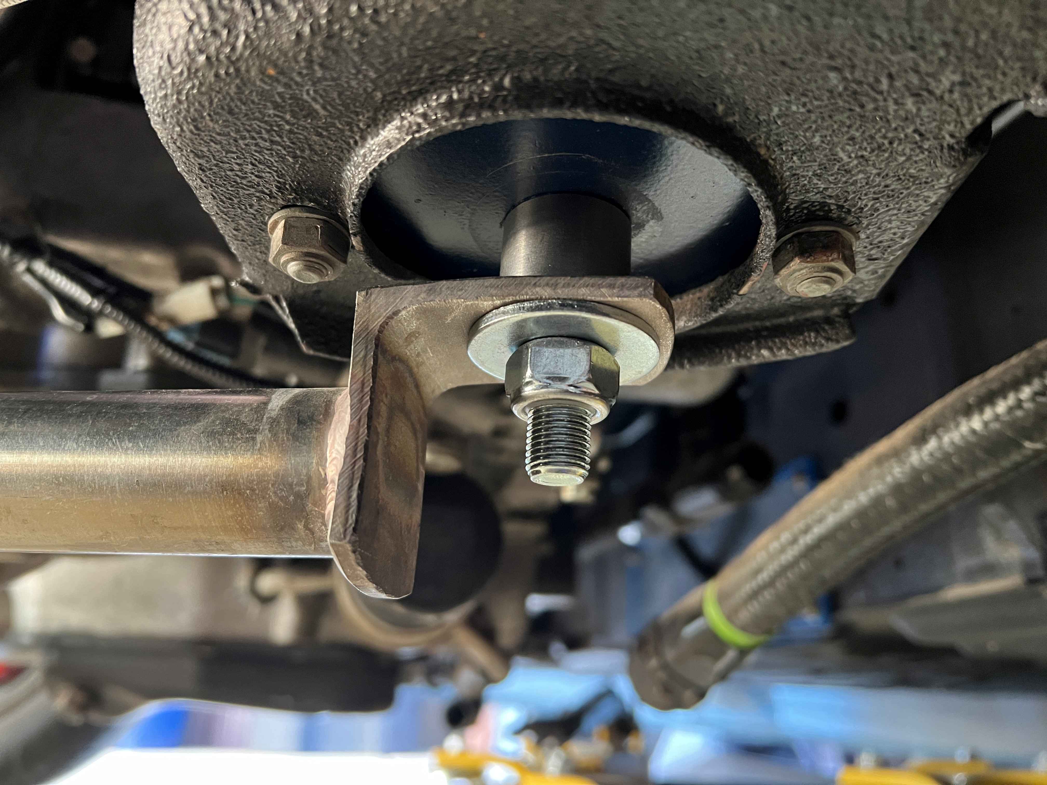 Here are the metal spacers I was able to find to replace the urethane bushings to create more of a "hard mount". Also went up from a M10 to M12 bolts for the mounts.