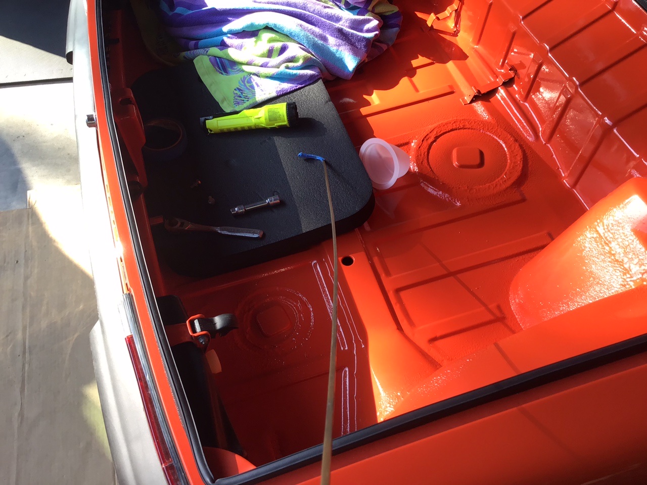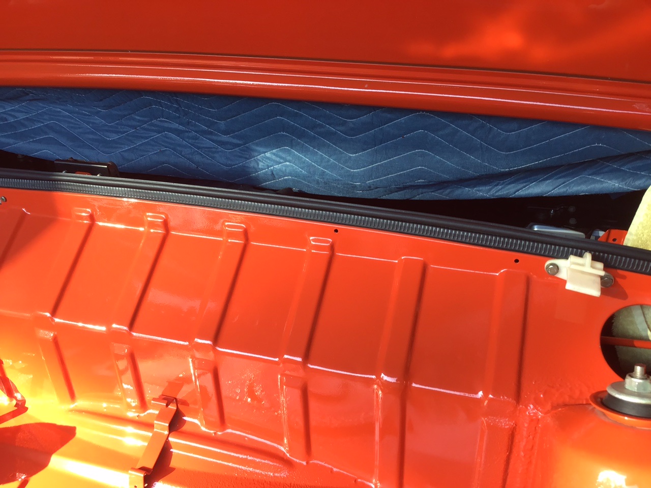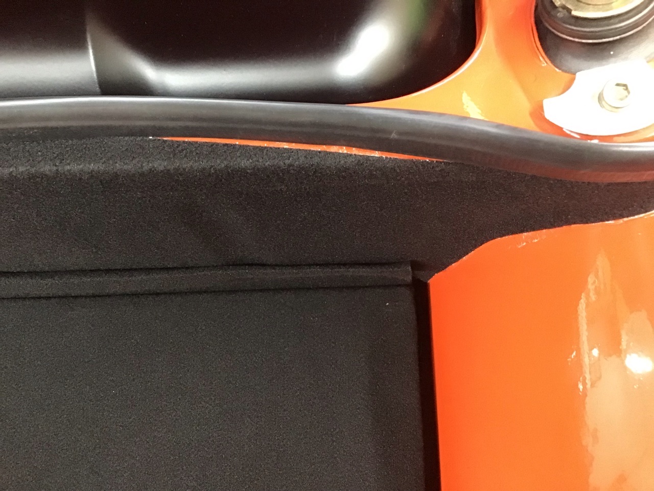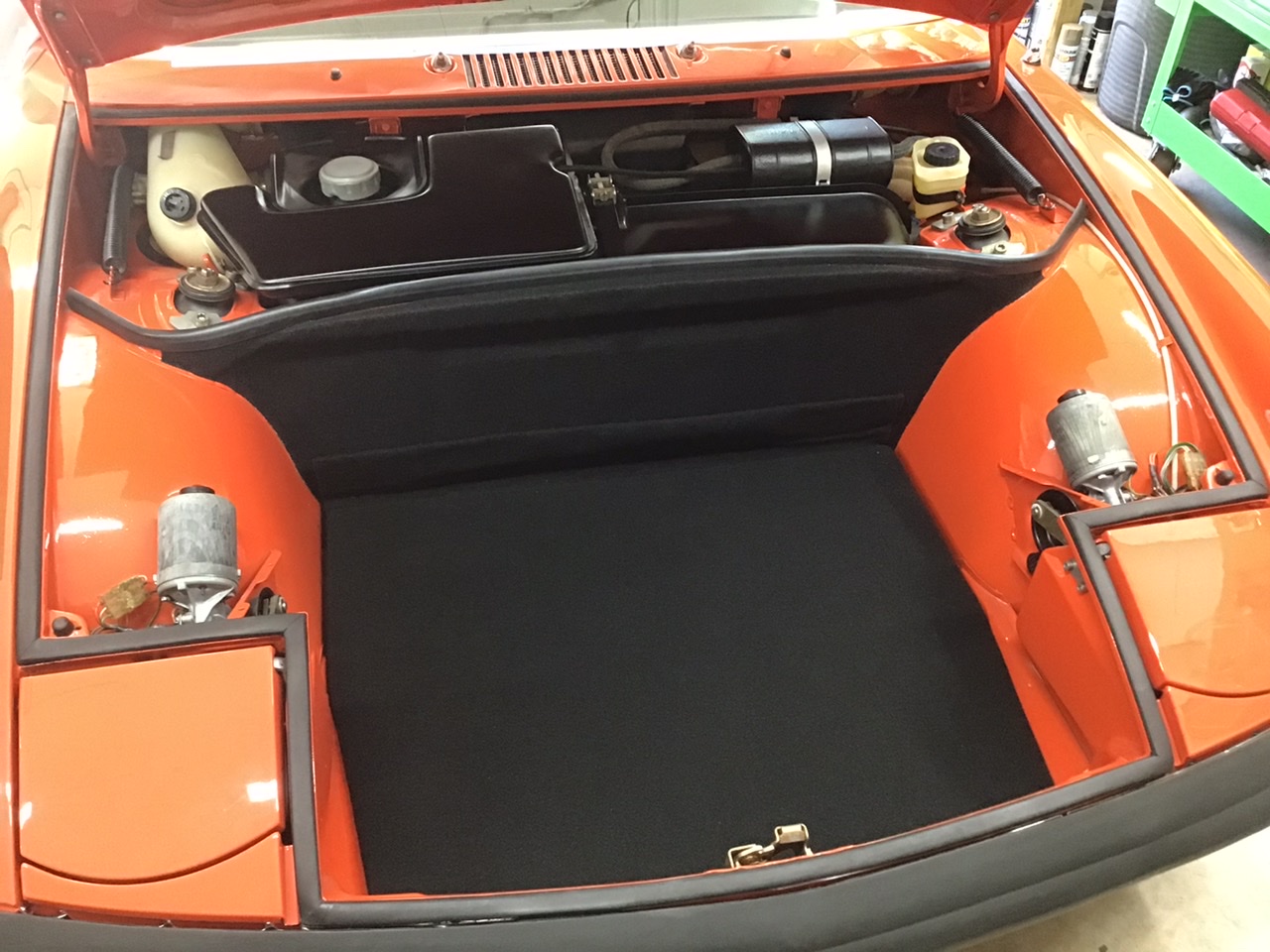 Got the felt glued on to the partition in the frunk. This was from 914 Rubber. I am mostly pleased with the results. It’s a bit tricky trying to get the felt to lay down on the top ridge. There are a couple of spots that didn’t get covered by the felt and you can see the orange paint on top, so I might try to paint these areas black.