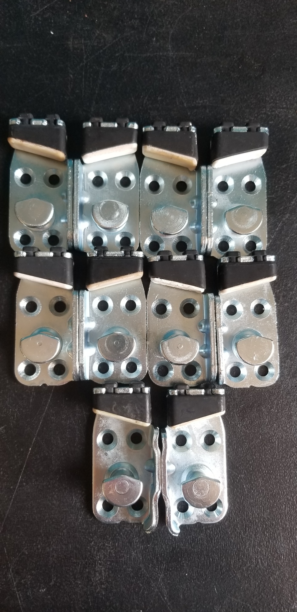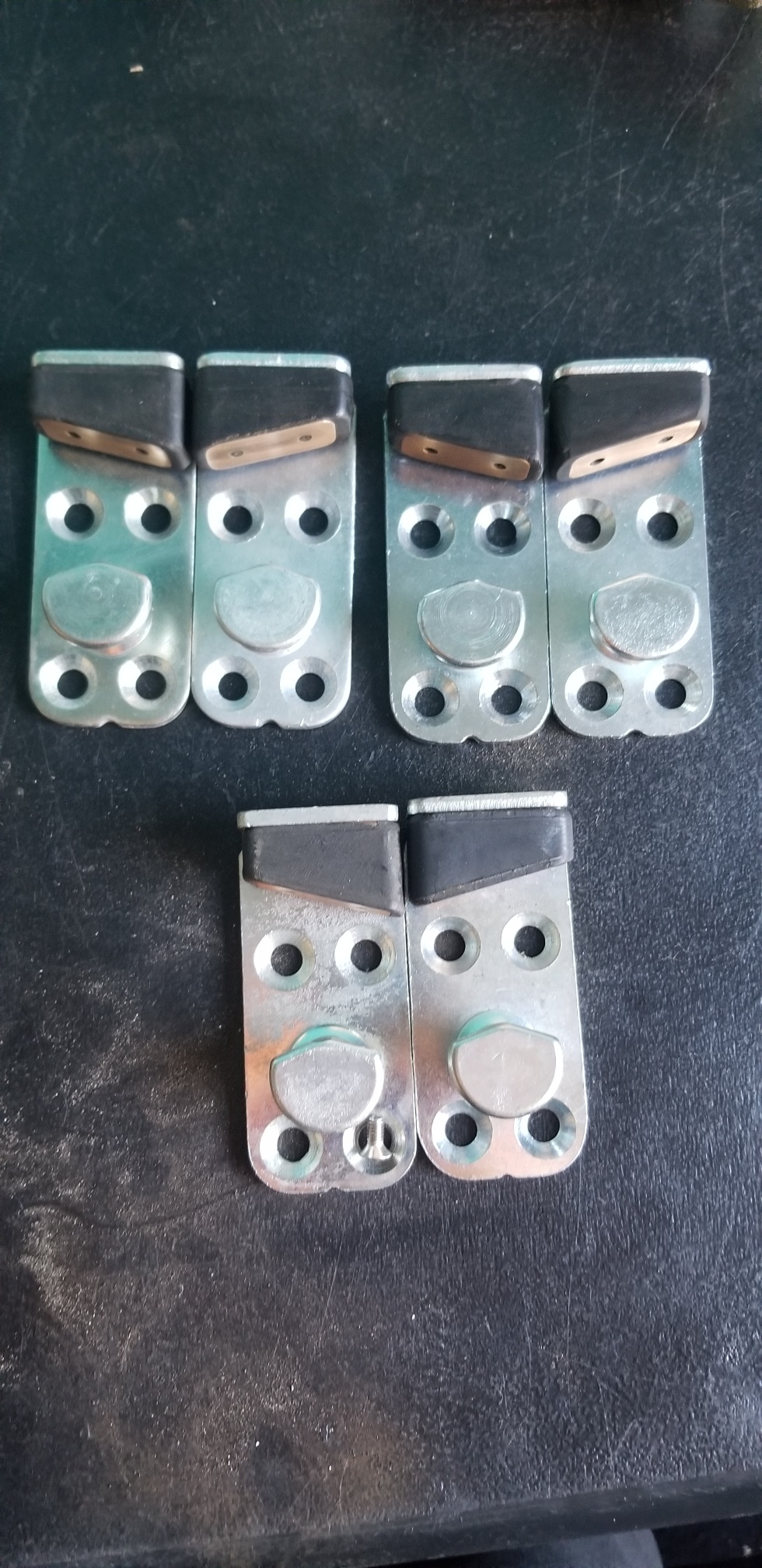 The late have a stopper with two nubs at the top which insert into slots in the plate New SS screws are included. Pictured are 5 sets of late which are ready to go. I will post pics of the early type later. Attached thumbnail(s) |