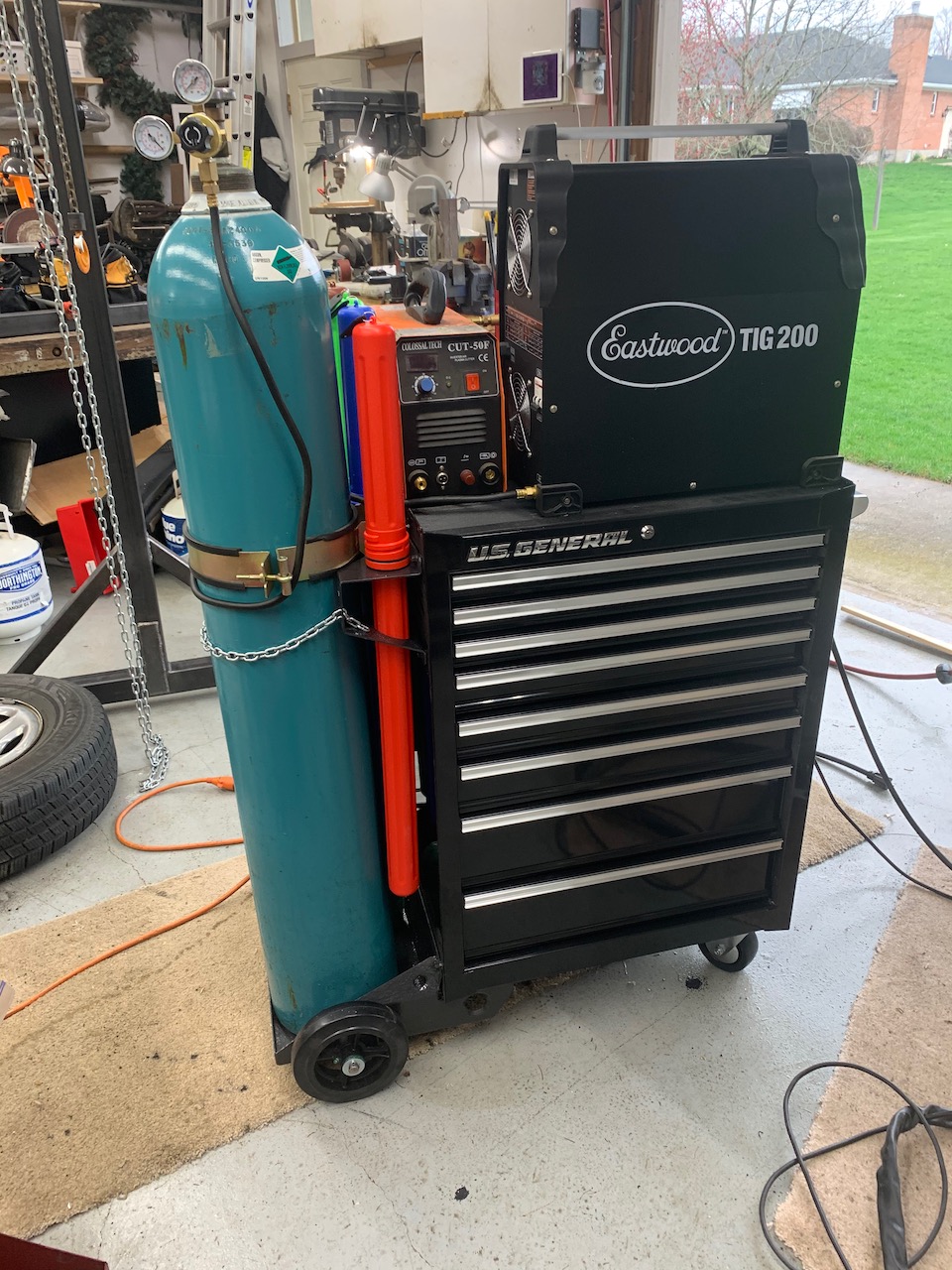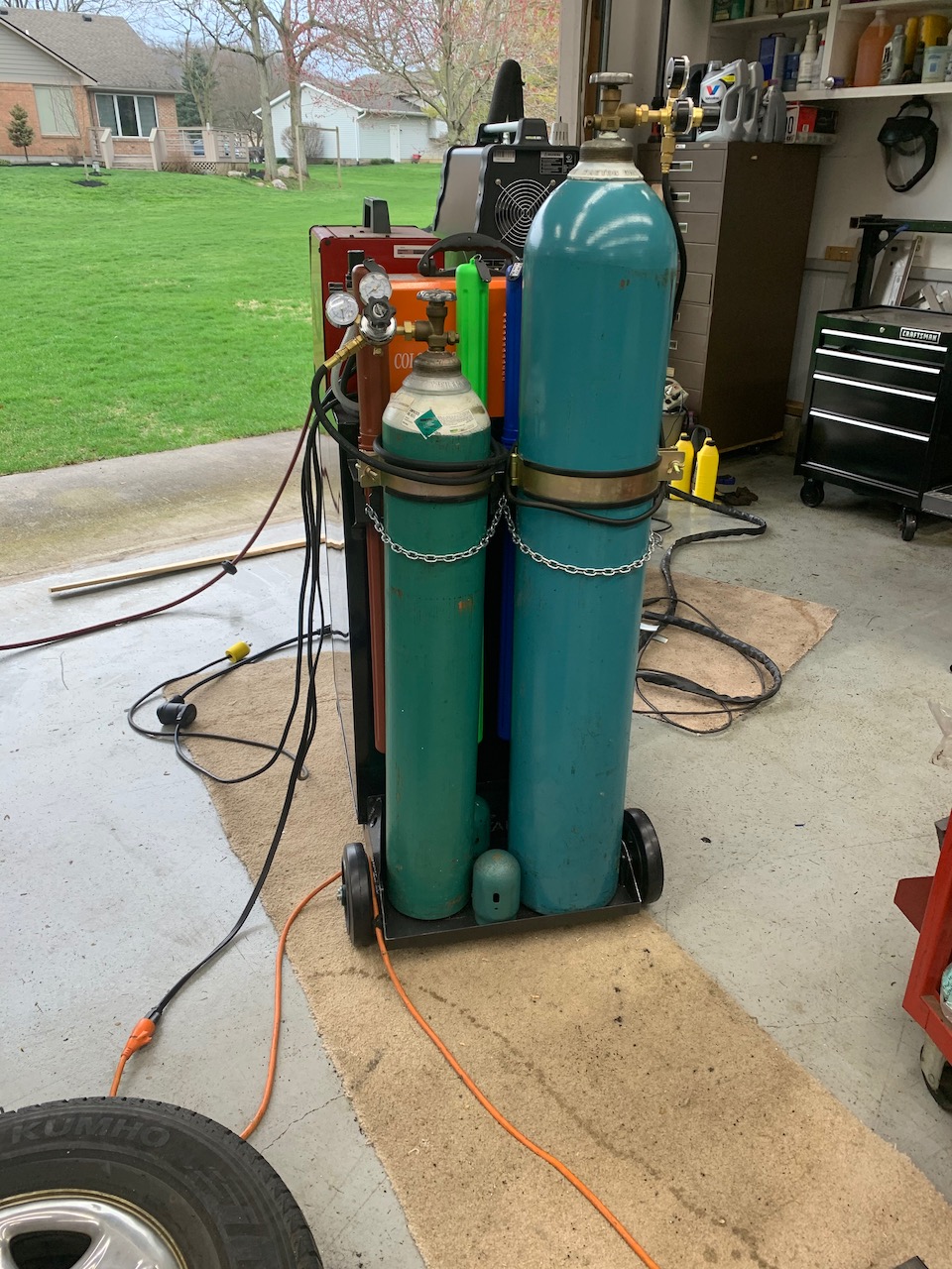 Some welding, so out came the TIG and MIG, and we started to weld, and weld, and weld some more. First thing I did was weld up a gantry crane, we had one at the farm shop for years I forgot how handy they are for everyday tasks. IT is still not ready for prime time pictures but I pressed it into service today, lifting some gas cylinders, righting a tool box I had on its side wot weld up a ZTFab welding cart. Of course I could not leave well enough alone, and decided to change the mounts for the axles so they have a bit more meat to hold them true. And then I don't like safe chains as my main way of keeping a bootle on the cart, so I took some bottle wall mounts, and fabricated a mount so they work on the cart. I got them from my welding supplier they were 17, and 22 respectfully, less than the cost for me to fabricate them. Bottles going no where. Everything loaded up on the US General tool cabinet. I used to have all of this on two craftsmen boxes. They will be repurposed for a bench I am building. Next I picked up a quick jack right before our governor tossed us into lock down. Paid $500 for the 7000 lbs version. Issue is it is not easy to move. So I saw an idea on the internet, and I decided it was to complicated. I had these from an outfield stand, and well they never out feed correctly, and two I am using them to support long picks of tube and steel so I can fixture on the welding bench. So I had a bunch of them. Mounted them to the lift arms, so that when it comes down the weight of the lift is a fulcrum and the wheels will lift the bottom of the lift up about 1/4" Now it is easy to move around the shop. Thats all for today, hopefully get back out tomorrow go through stuff and cleanup a bit. Need to get lawn equipment in for service, and winter tires off the 7 series. (IMG:style_emoticons/default/piratenanner.gif) Means I can (IMG:style_emoticons/default/driving.gif) like I like to. Attached thumbnail(s) |