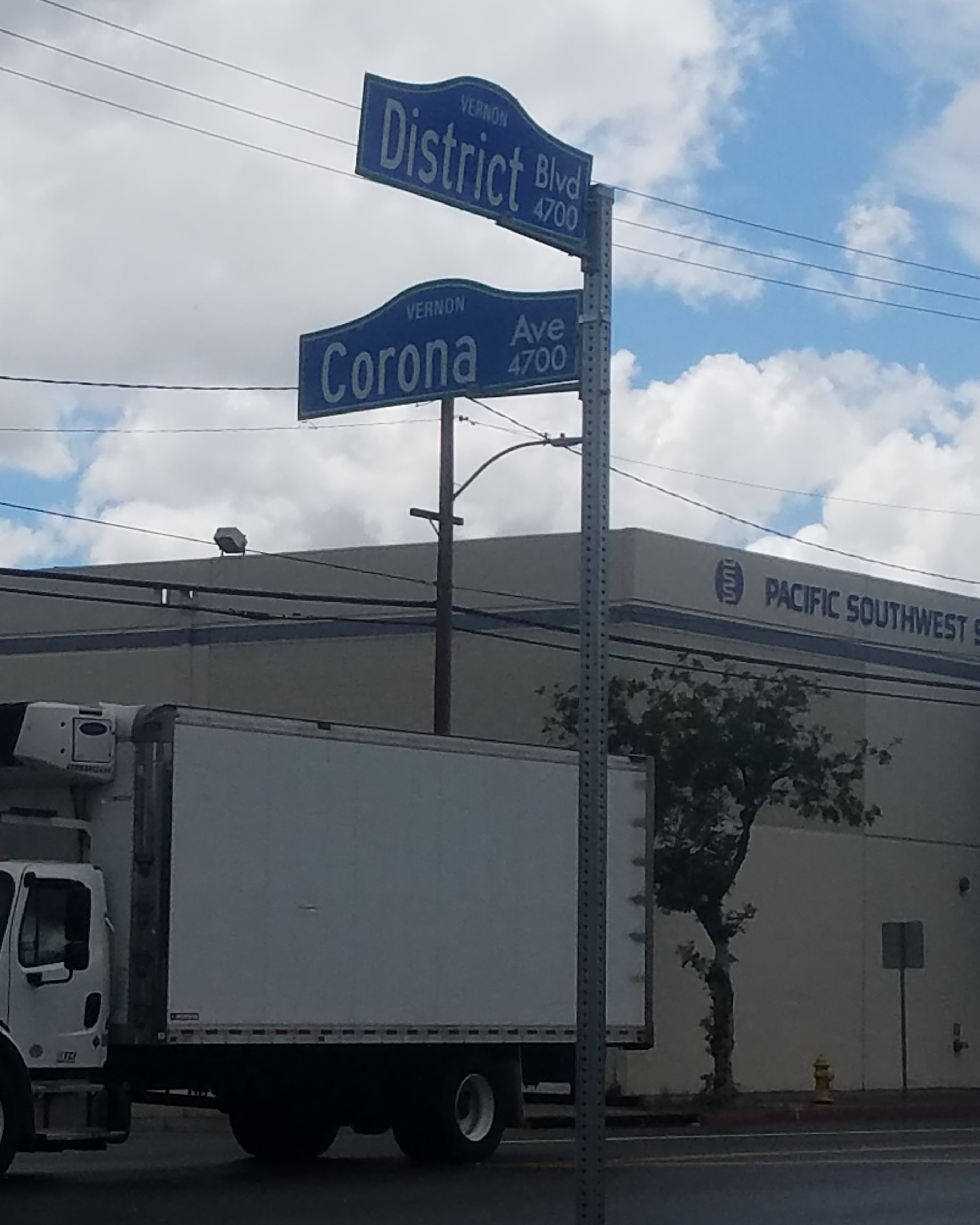 On the way to picking up some Essential hardware for bldg. maint , just outside DTLA area. Novel street intersection for these times I'd say (IMG:style_emoticons/default/mad.gif) Odd that the #s appearing on both street names (running 2 diff directions) appear identical ¡