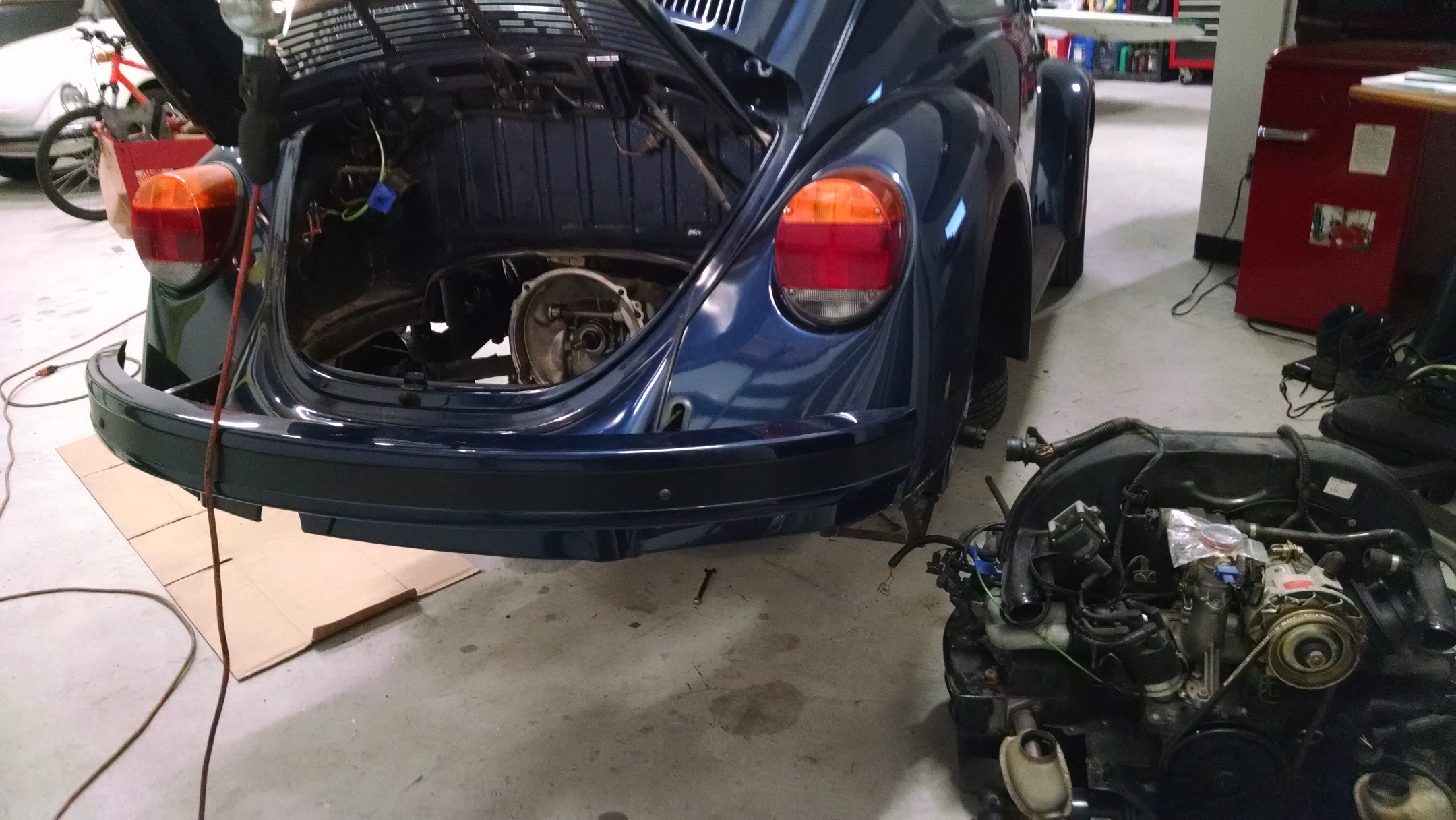 With the 914 gone, I've decided to use the time to swap out the tranny on my Bug. Putting in one of the 4:12 Freeway Flyers from Strictly Foreign. It's been more than a few years since I pulled a Bug engine.