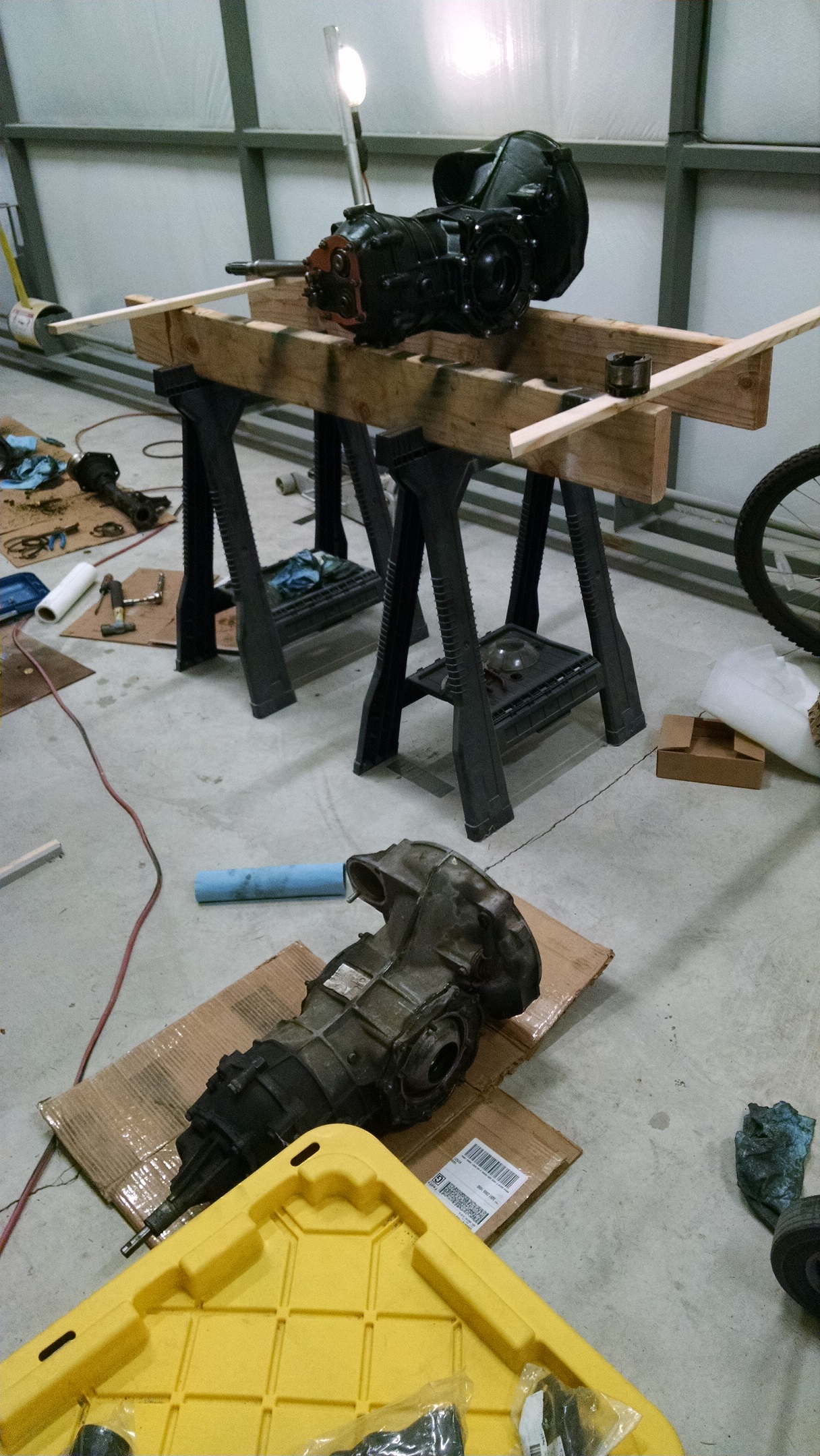 Engine/trans back in, left the axels off since I'm flat towing to the Paint guy this weekend! Finally!