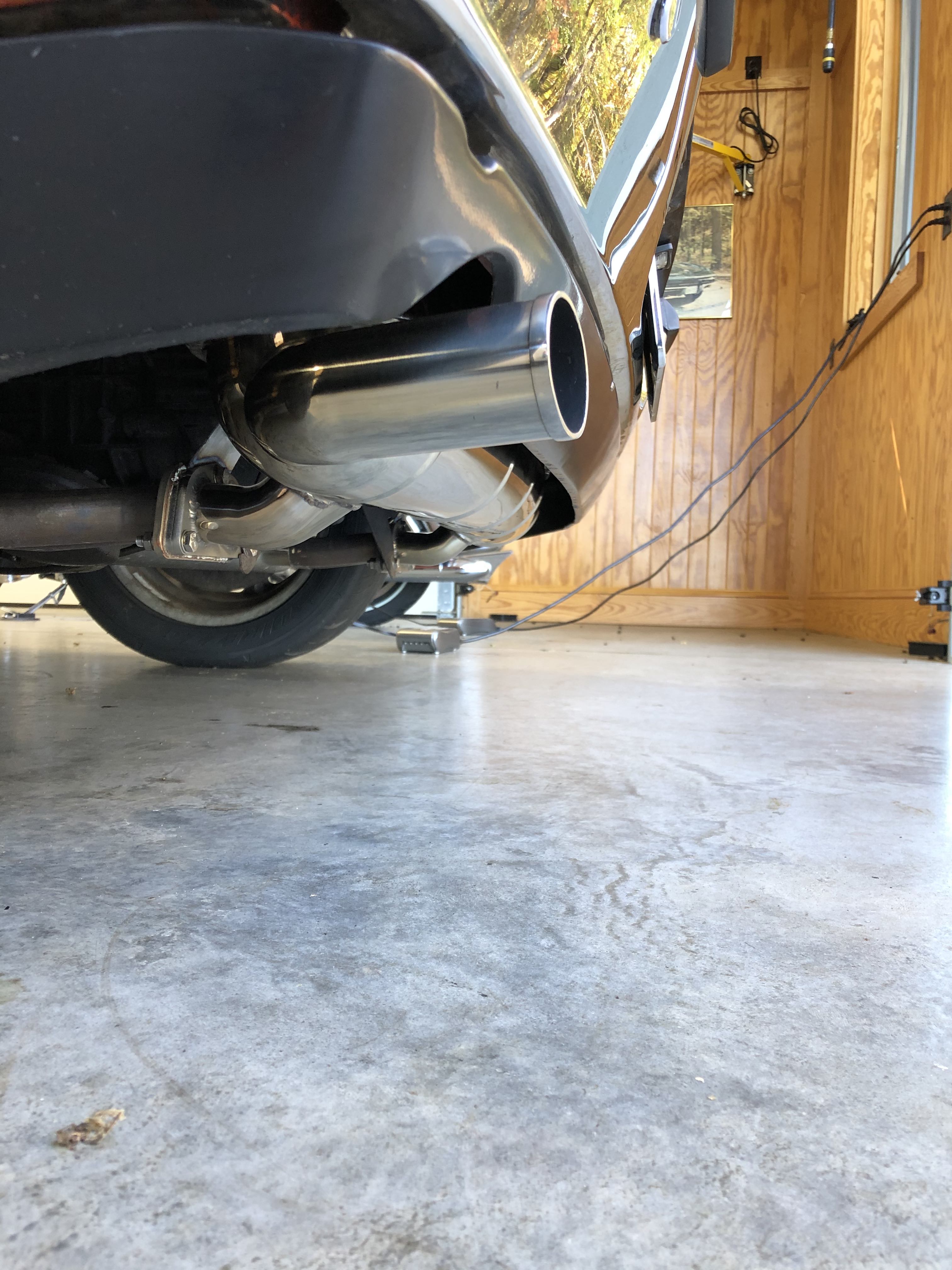 That looks very nice and would look even better if you cut and orient the tip to come out the stock location. I don't believe there is a better exhaust product made for our cars than what Ben was producing. I have his 6 cylinder 2/1 quiet muffler boxed and in storage while I run his little bit louder muffler on my car. It sounds terrific.